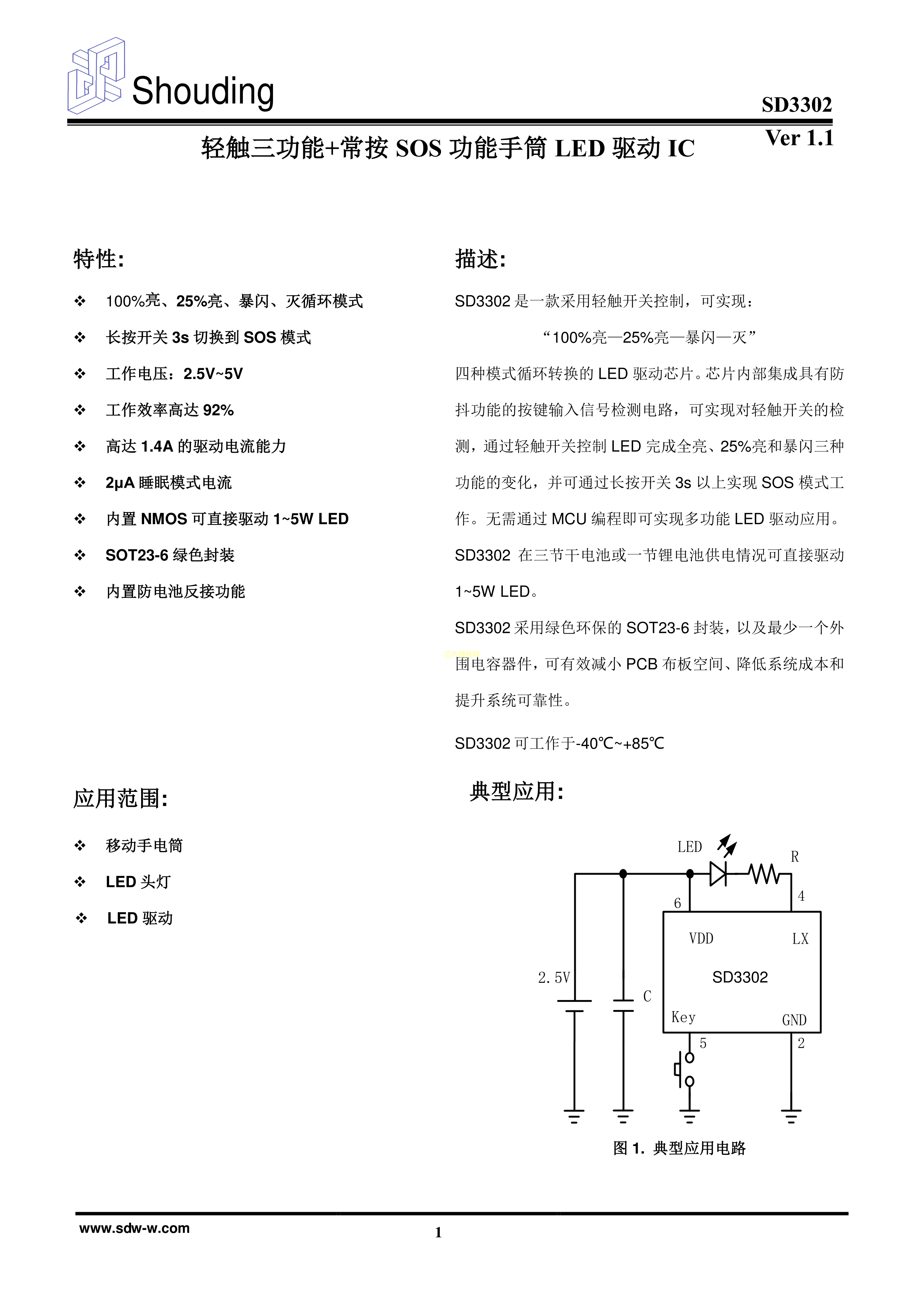 SD3302数据手册SOT-23-6封装SHOUDING(首鼎半导体)PDF规格书,中英文下载