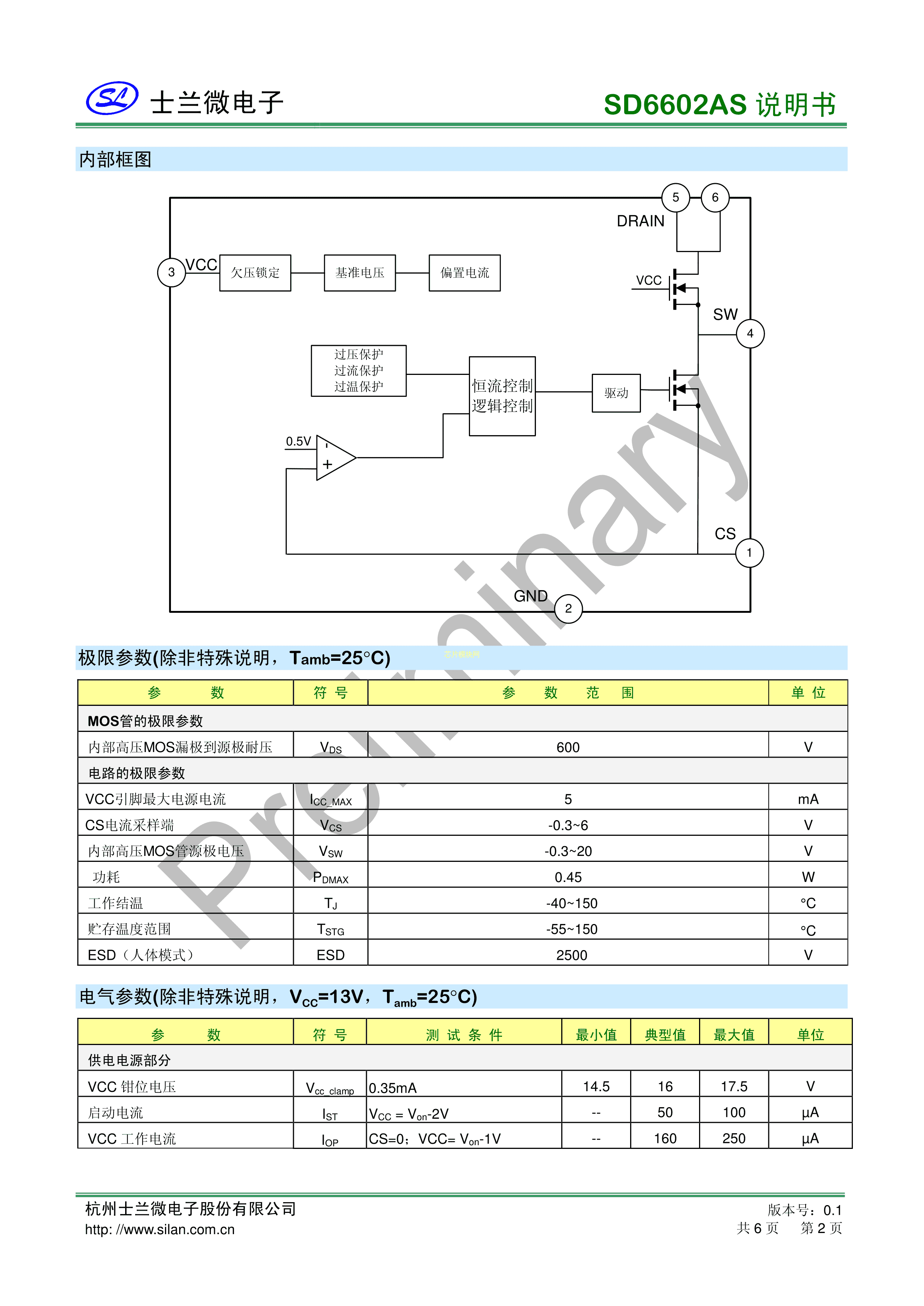 SD6602AS数据手册SOP-7封装SILAN(士兰微)PDF规格书,中英文下载