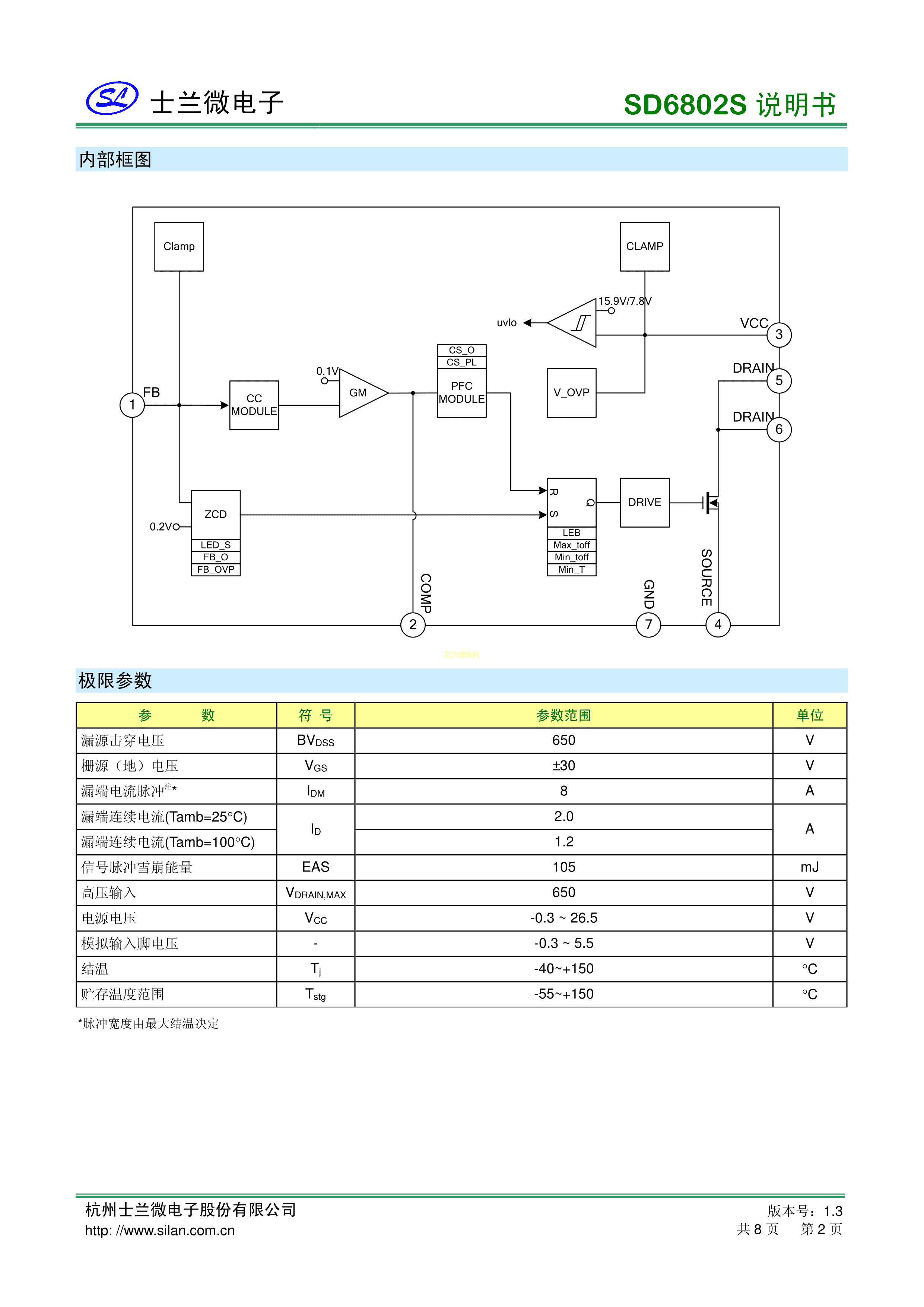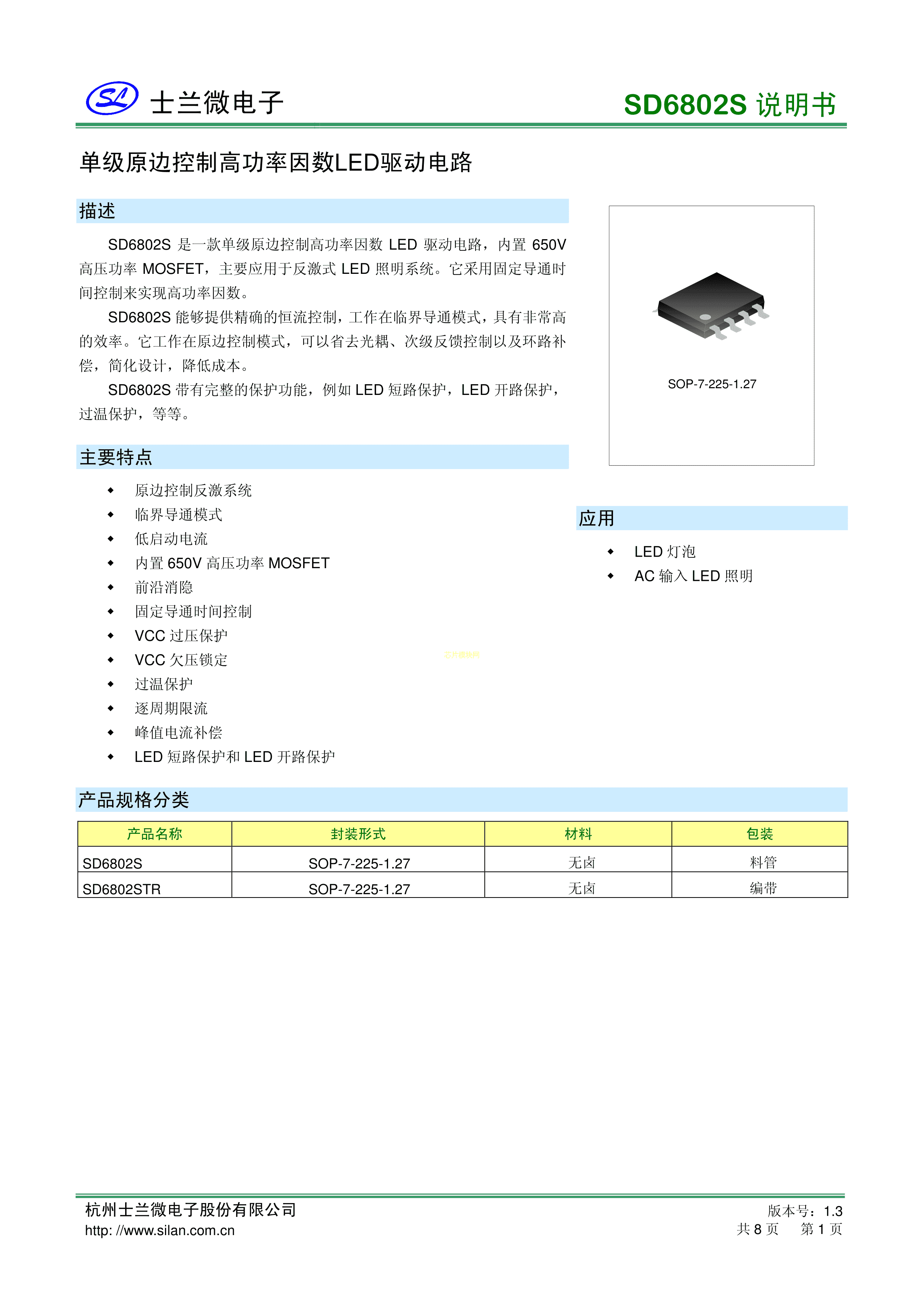 SD6802STR数据手册SOP-7封装SILAN(士兰微)PDF规格书,中英文下载