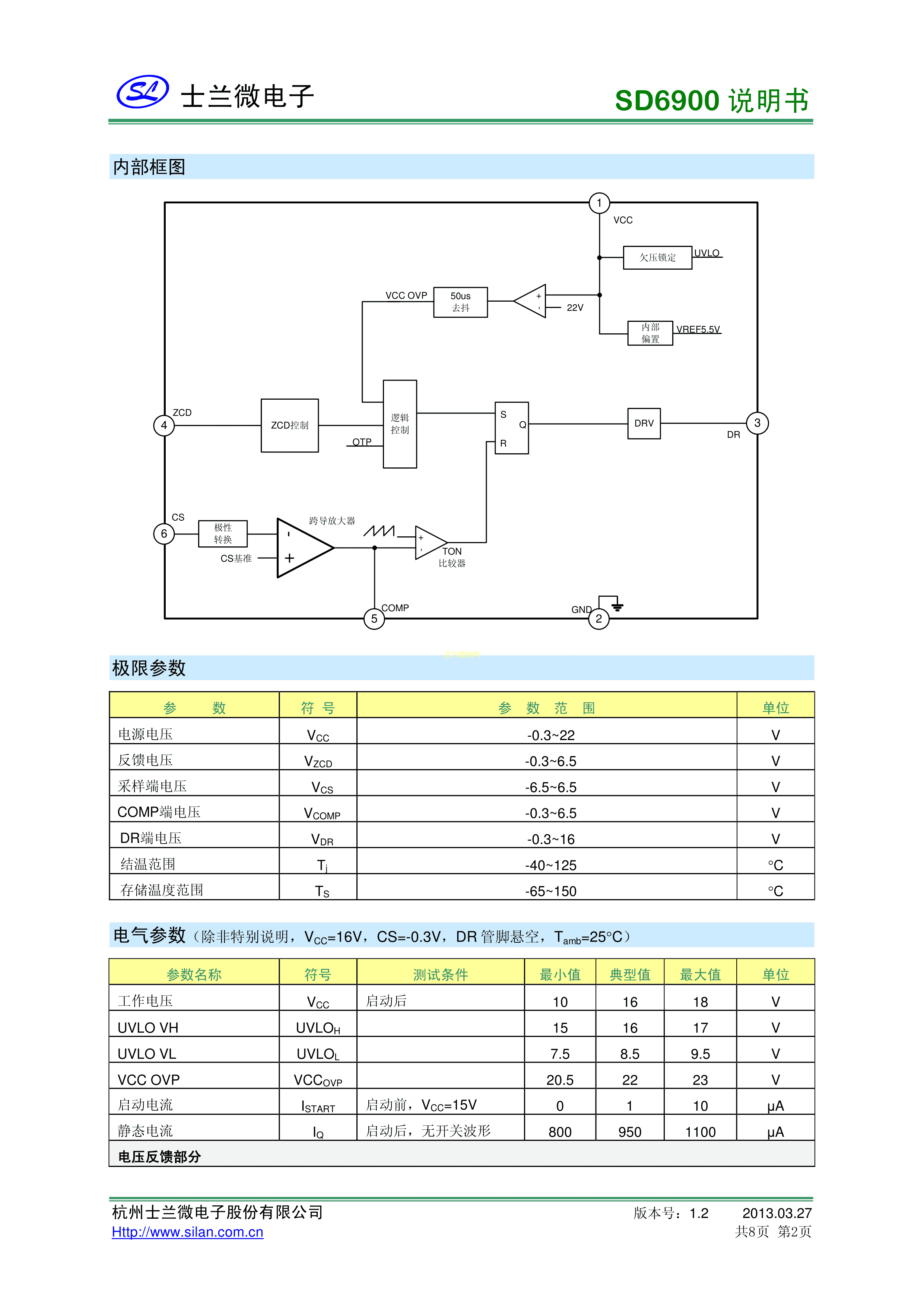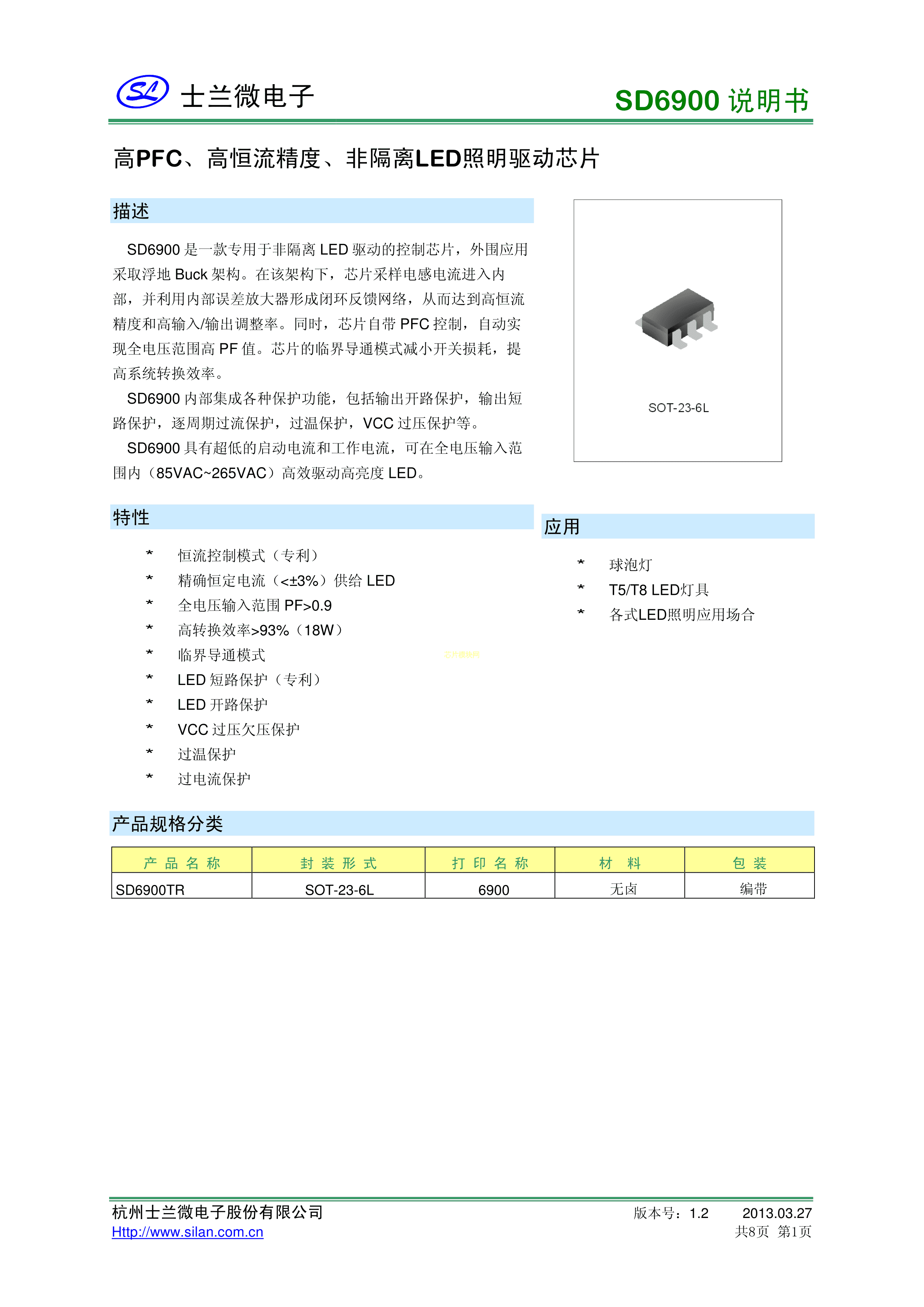 SD6900TR数据手册SOT-23-6封装SILAN(士兰微)PDF规格书,中英文下载