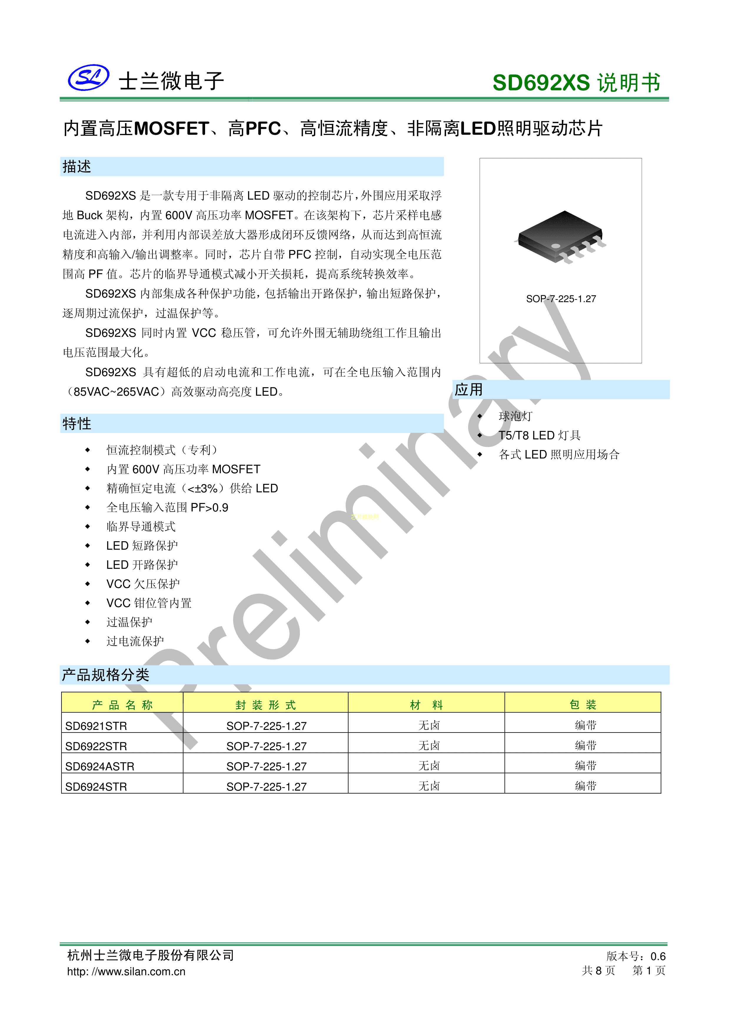 SD6924STR数据手册SOP-7封装SILAN(士兰微)PDF规格书,中英文下载
