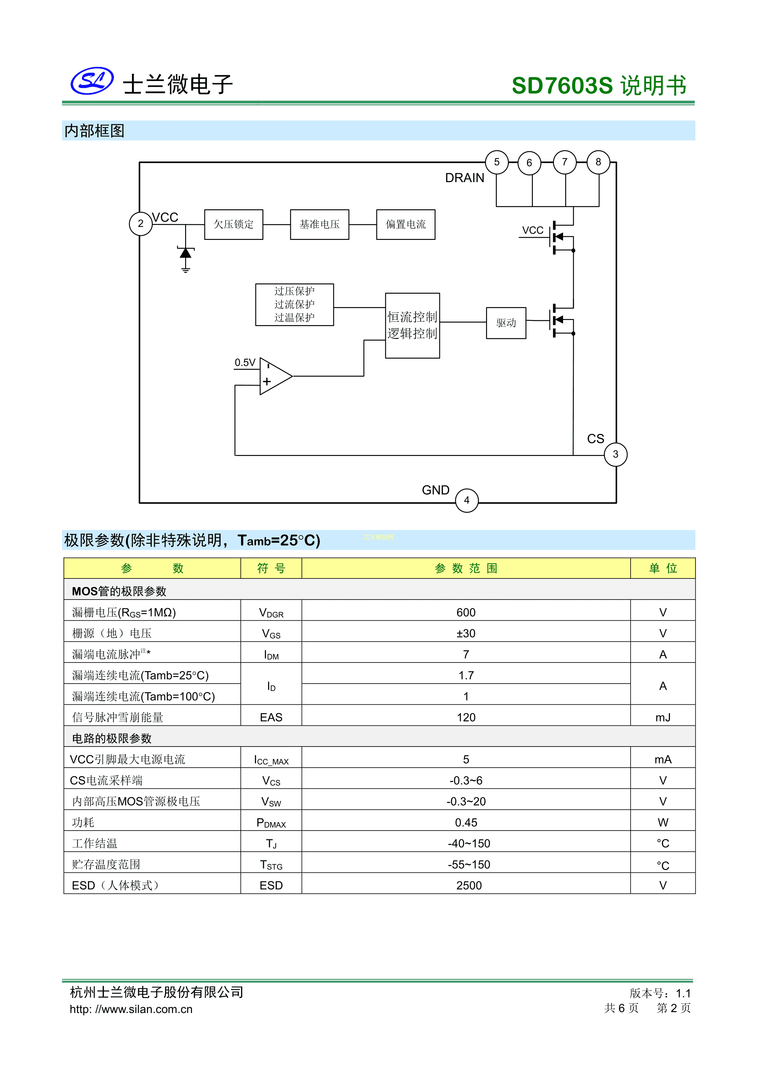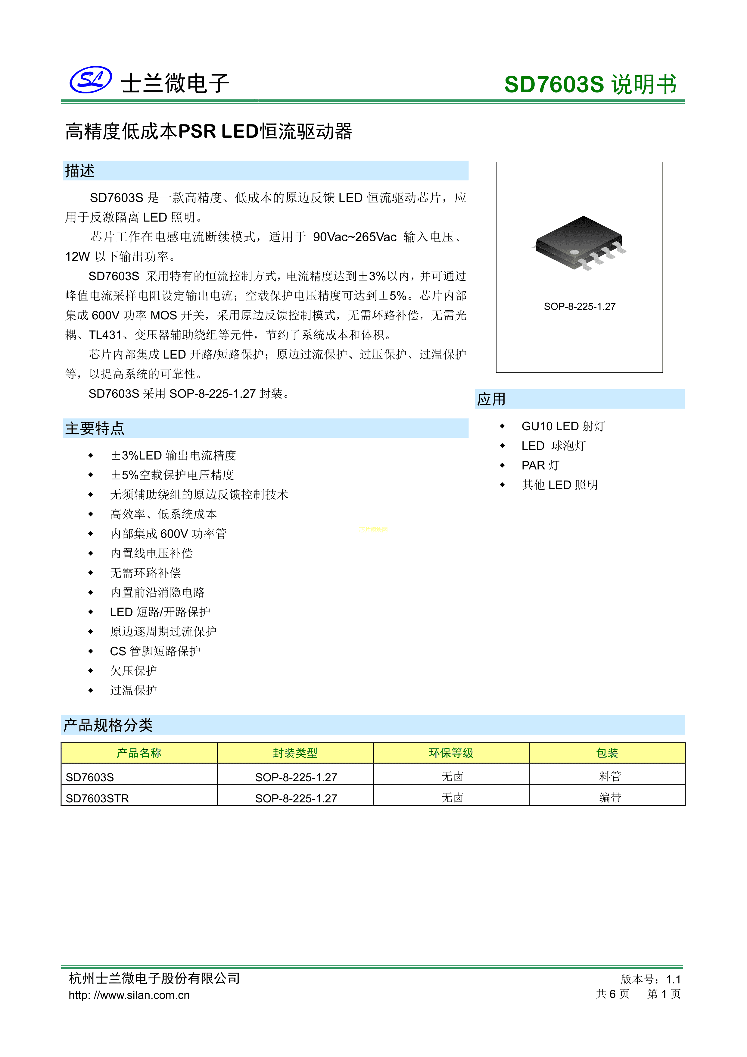 SD7603STR数据手册SOP-7封装SILAN(士兰微)PDF规格书,中英文下载