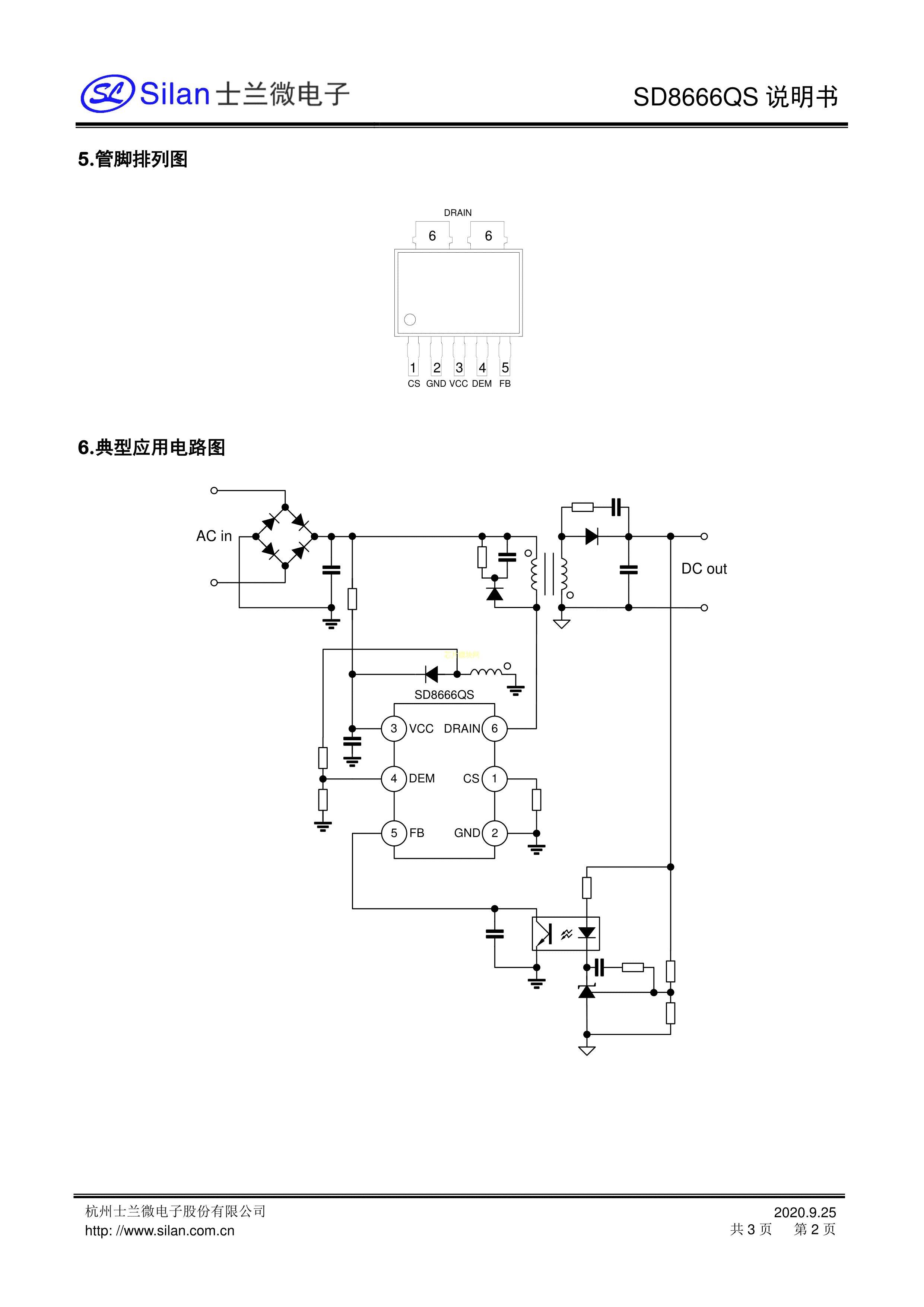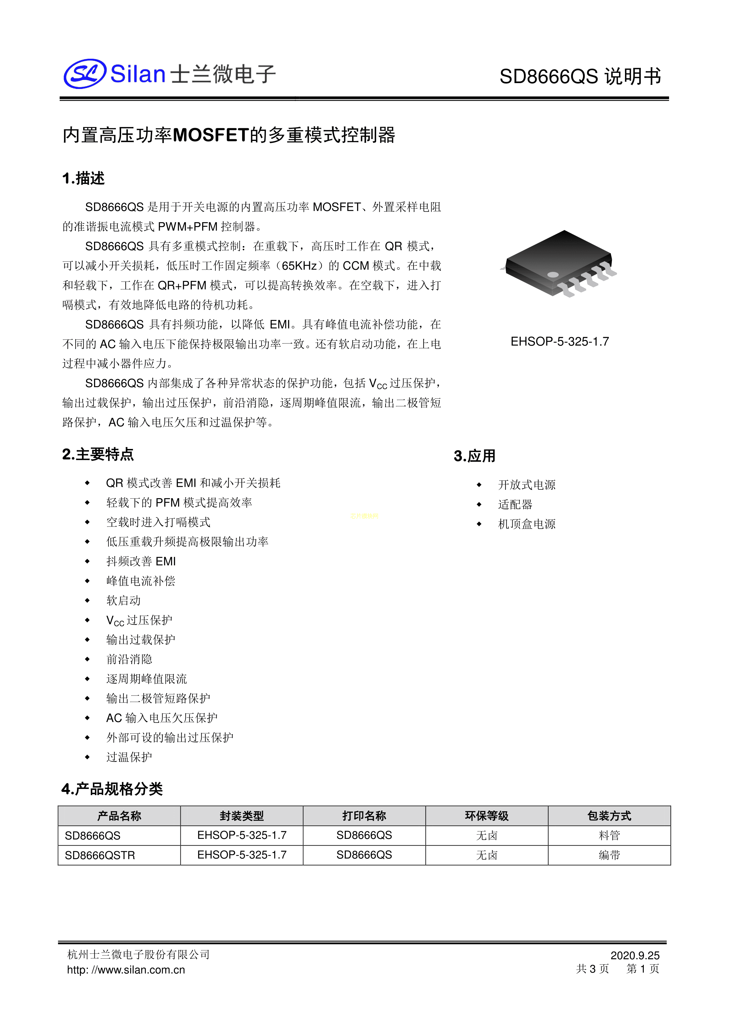 SD8666QS数据手册EHSOP-5封装SILAN(士兰微)PDF规格书,中英文下载
