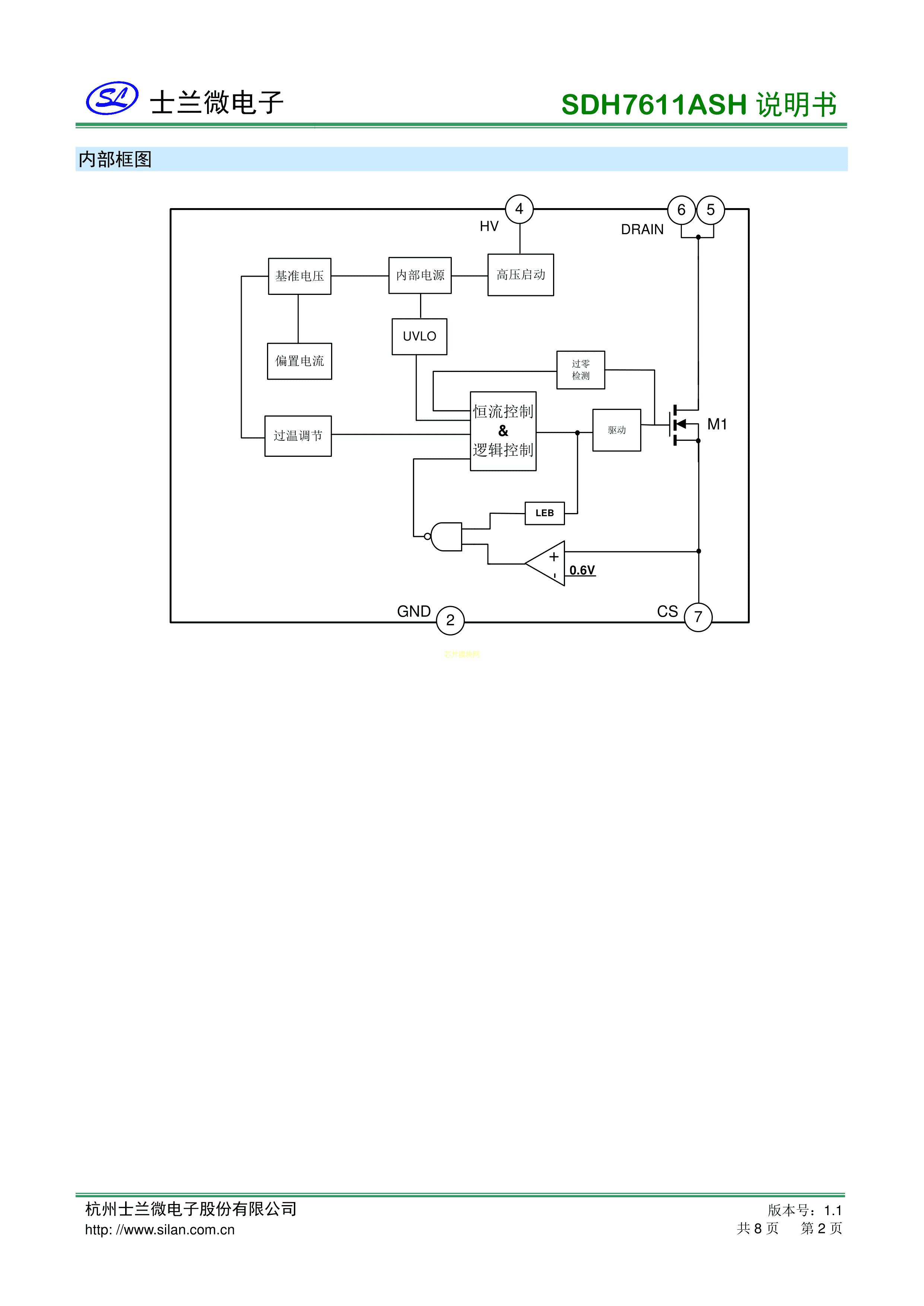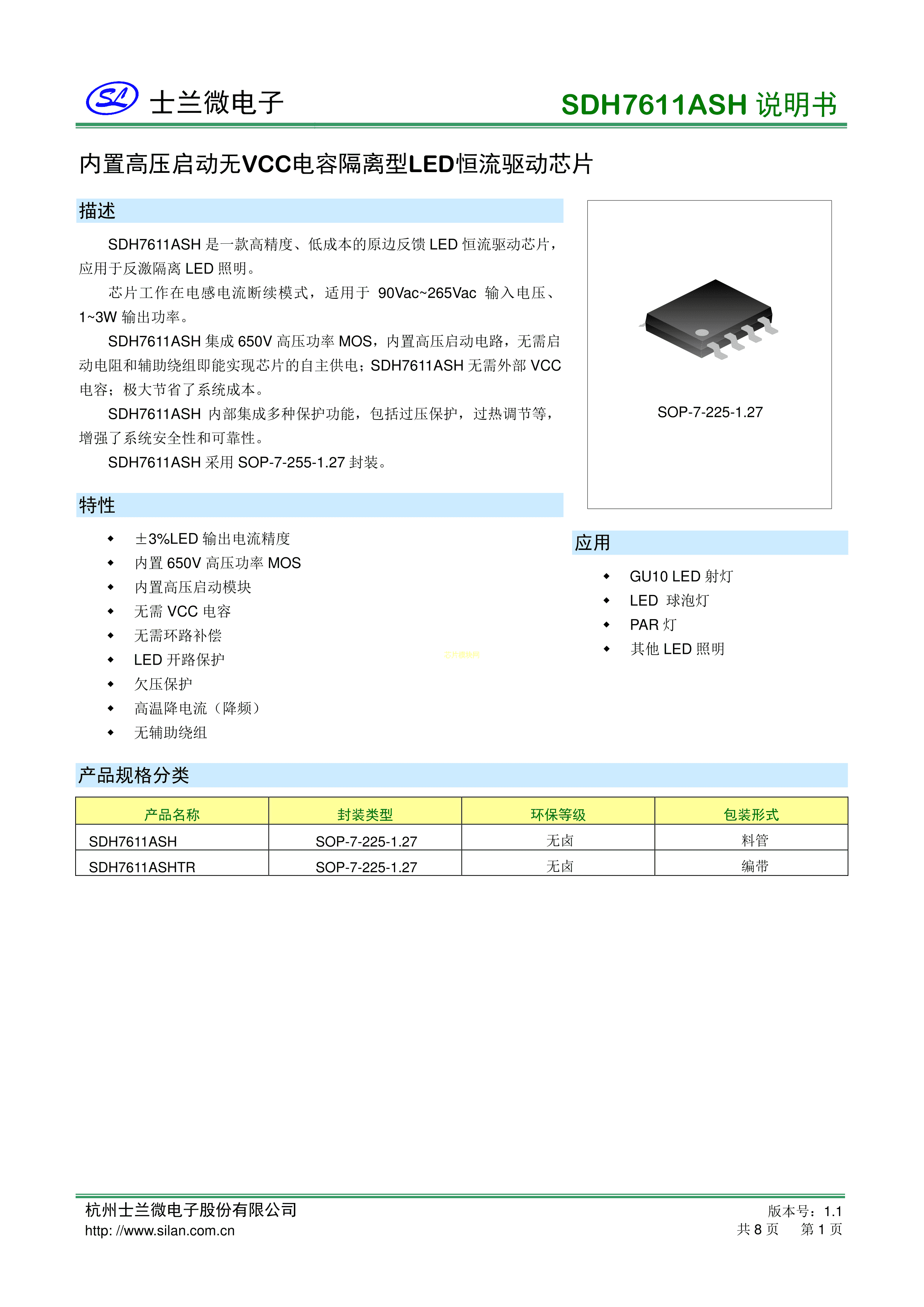 SDH7611ASHTR数据手册SOP-8封装SILAN(士兰微)PDF规格书,中英文下载