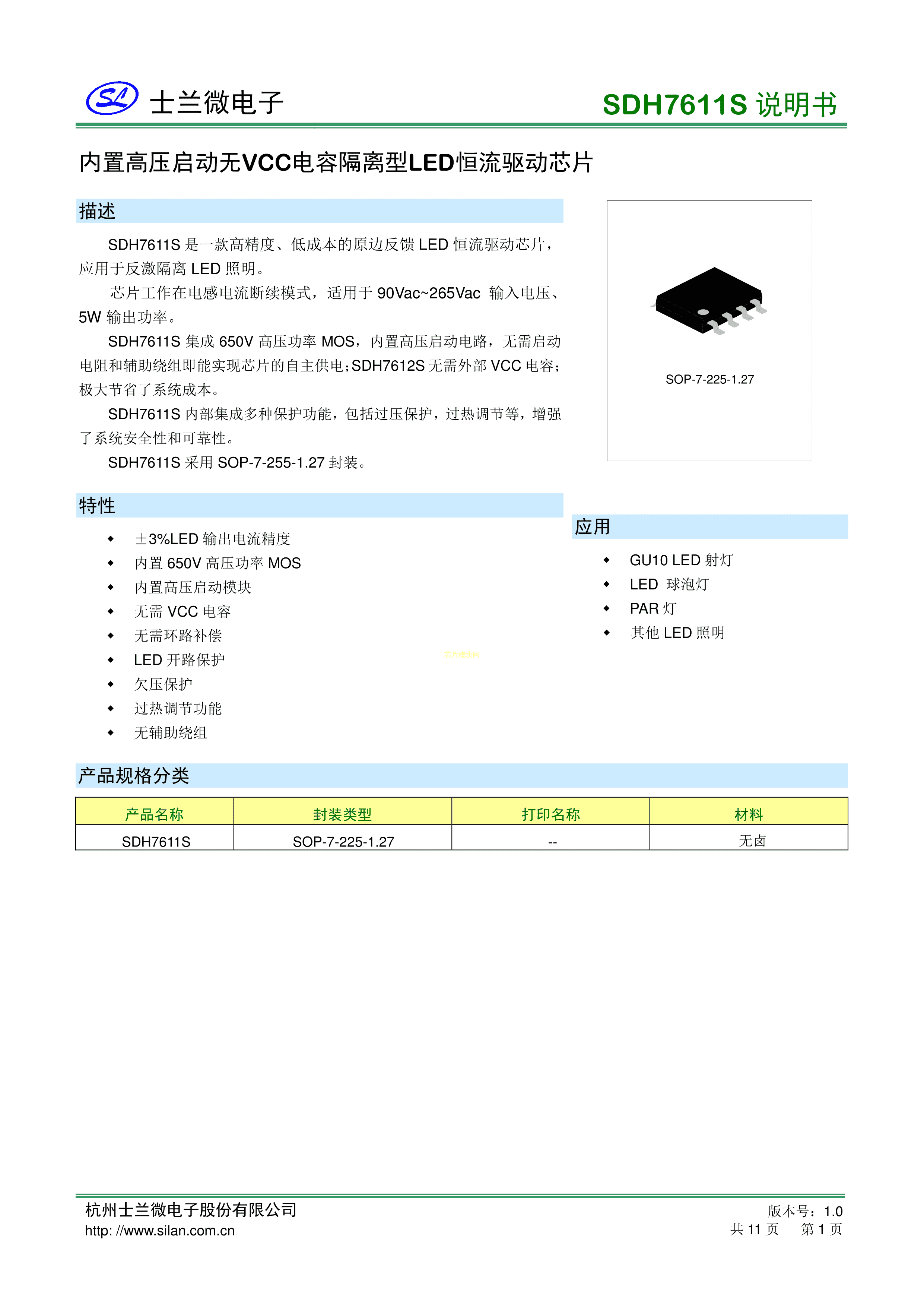 SDH7611STR数据手册SOP-8封装SILAN(士兰微)PDF规格书,中英文下载