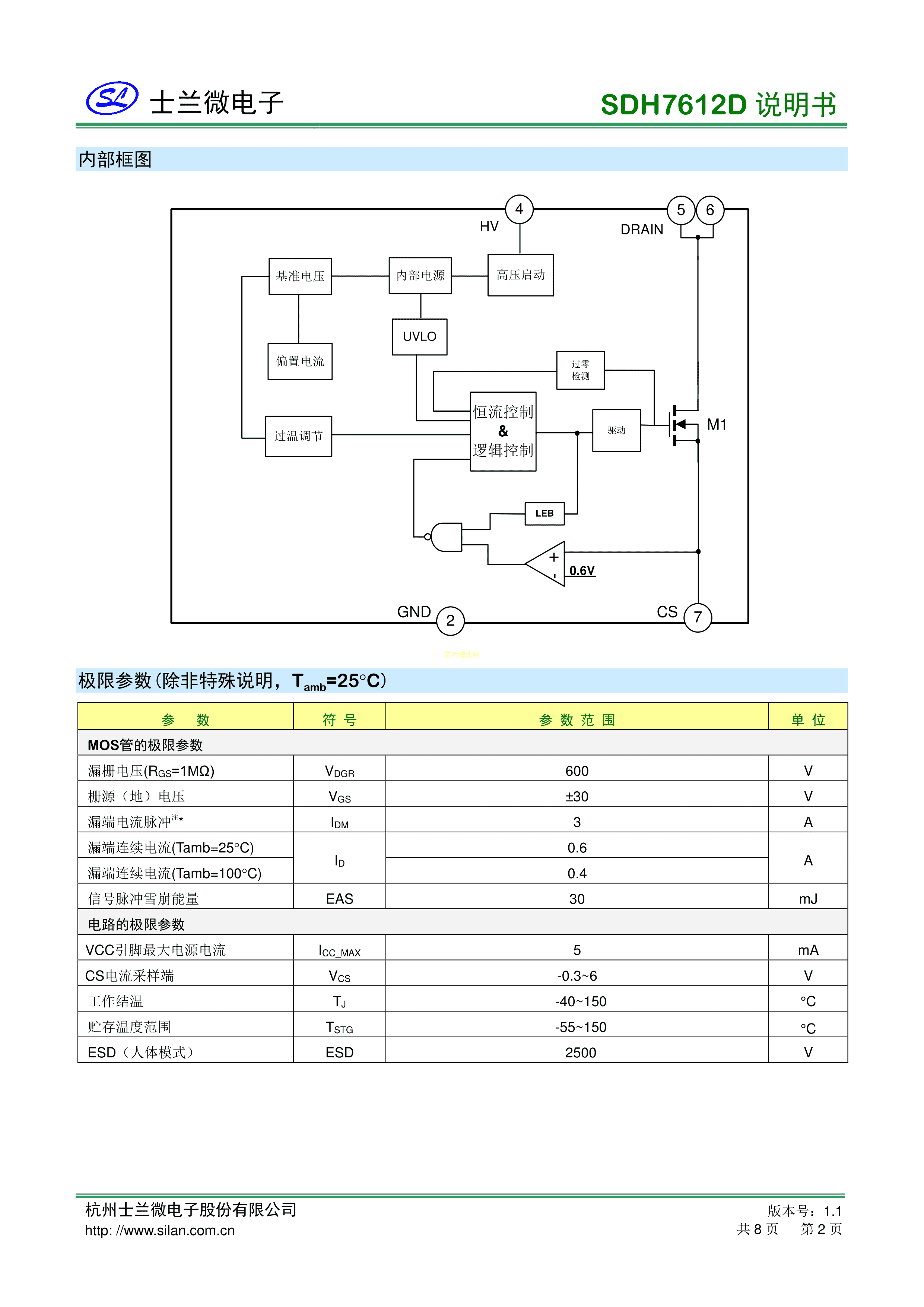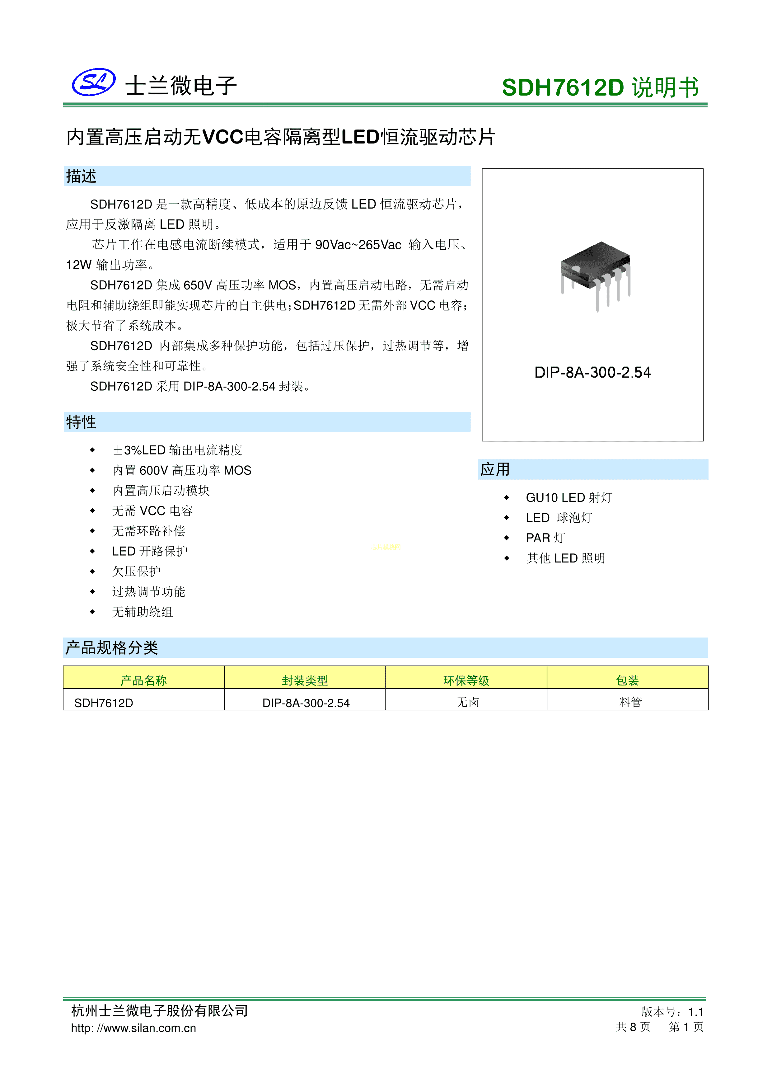 SDH7612D数据手册DIP-7封装SILAN(士兰微)PDF规格书,中英文下载