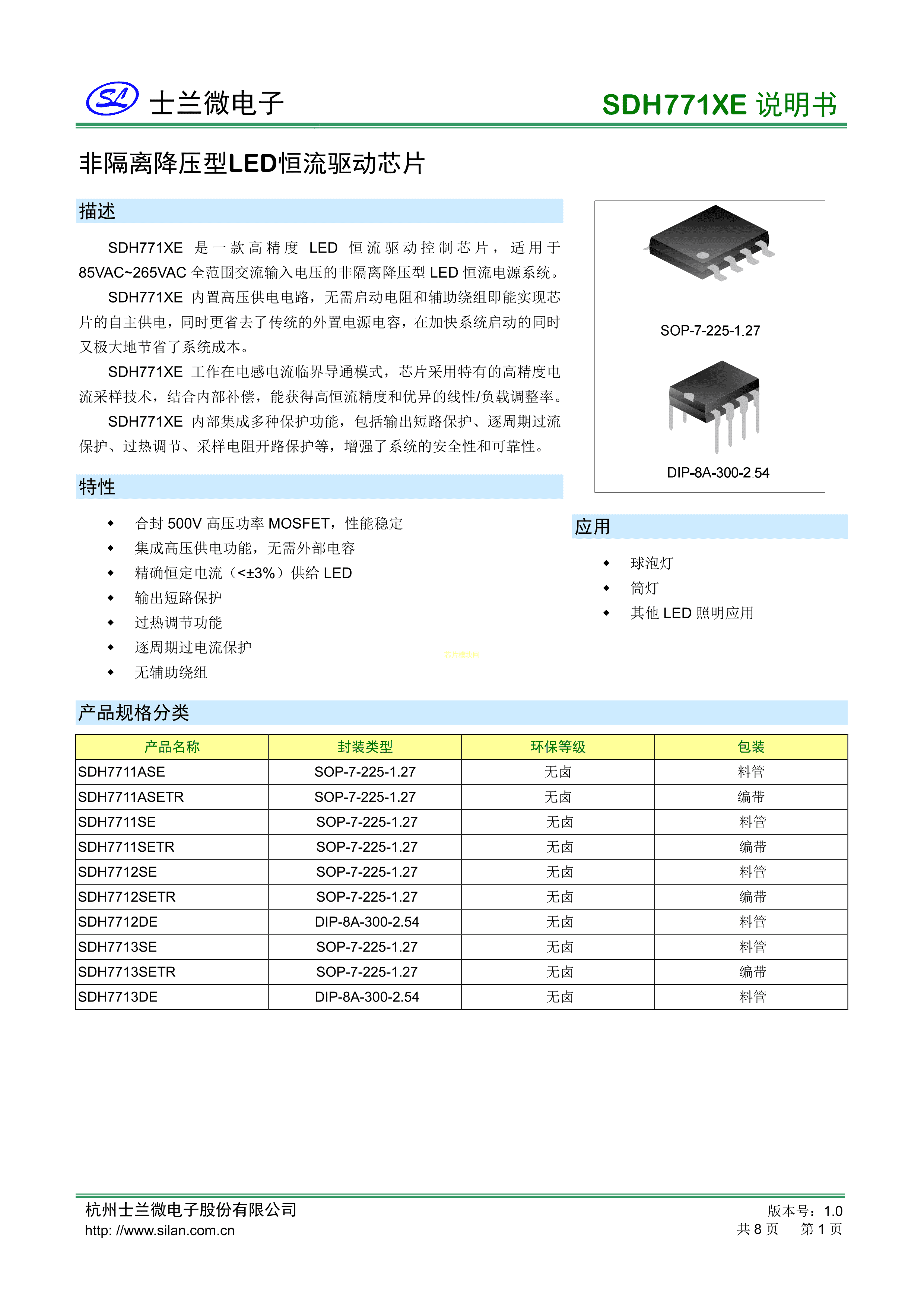 SDH7711SETR数据手册SOP-7封装SILAN(士兰微)PDF规格书,中英文下载