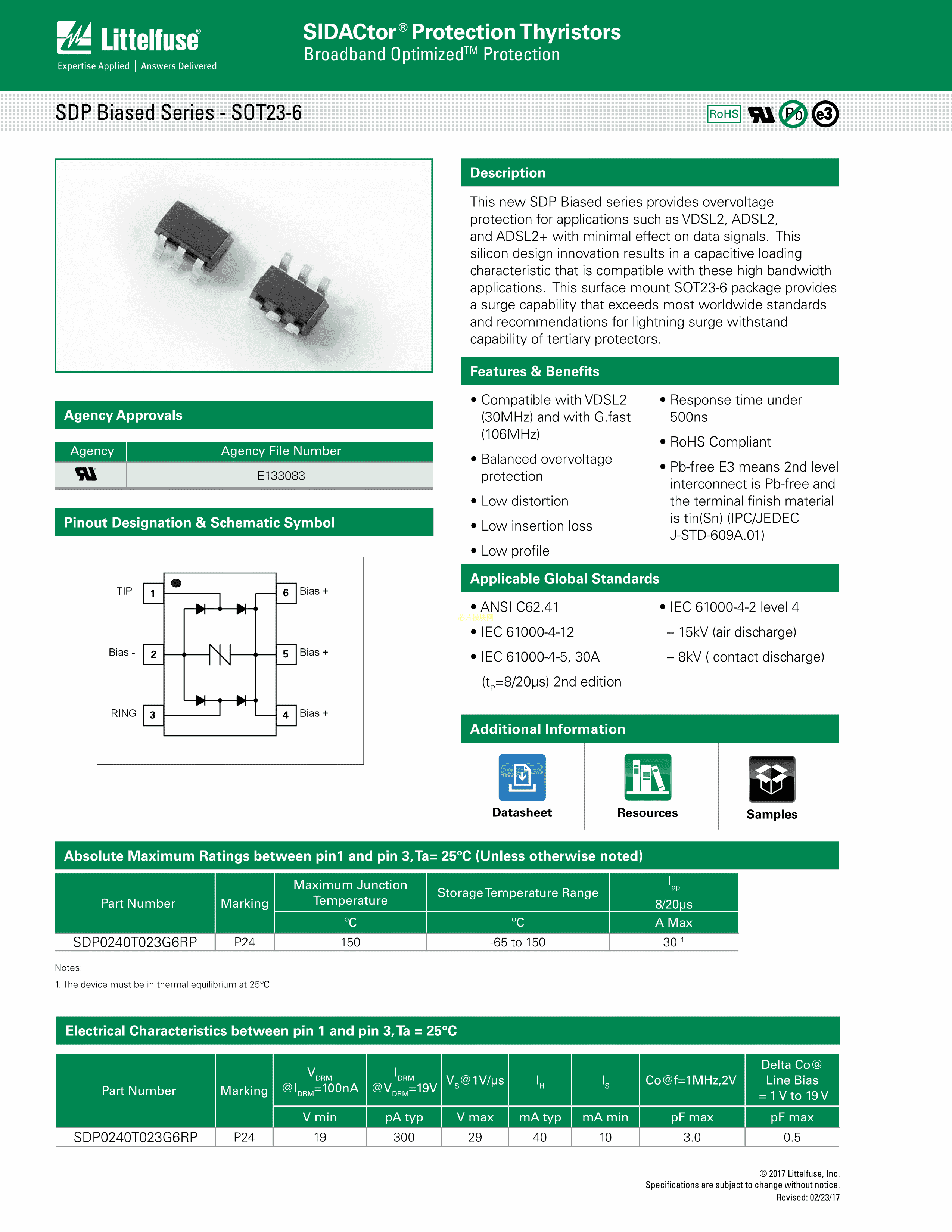 SDP0240T023G6RP数据手册SOT-23-6封装Littelfuse(美国力特)PDF规格书,中英文下载