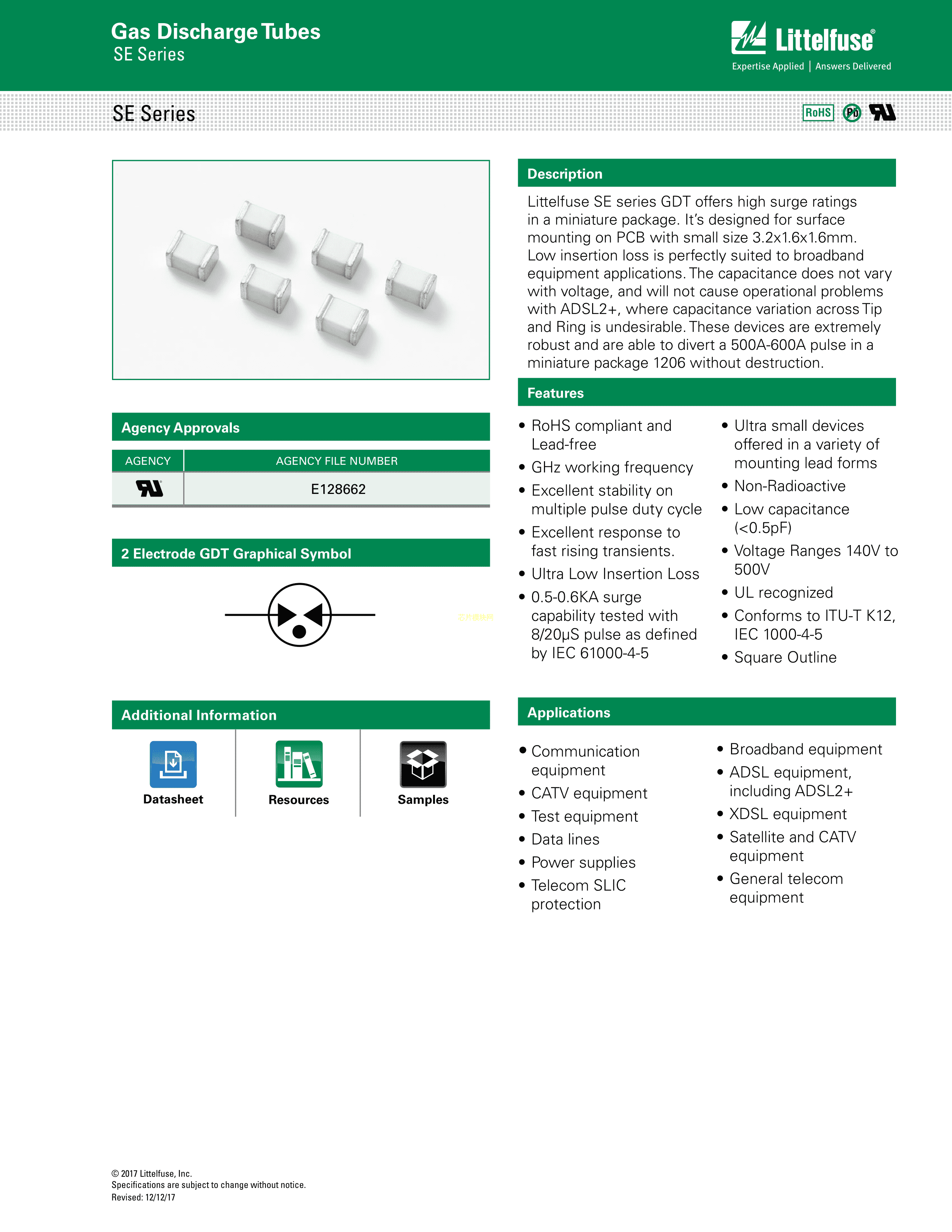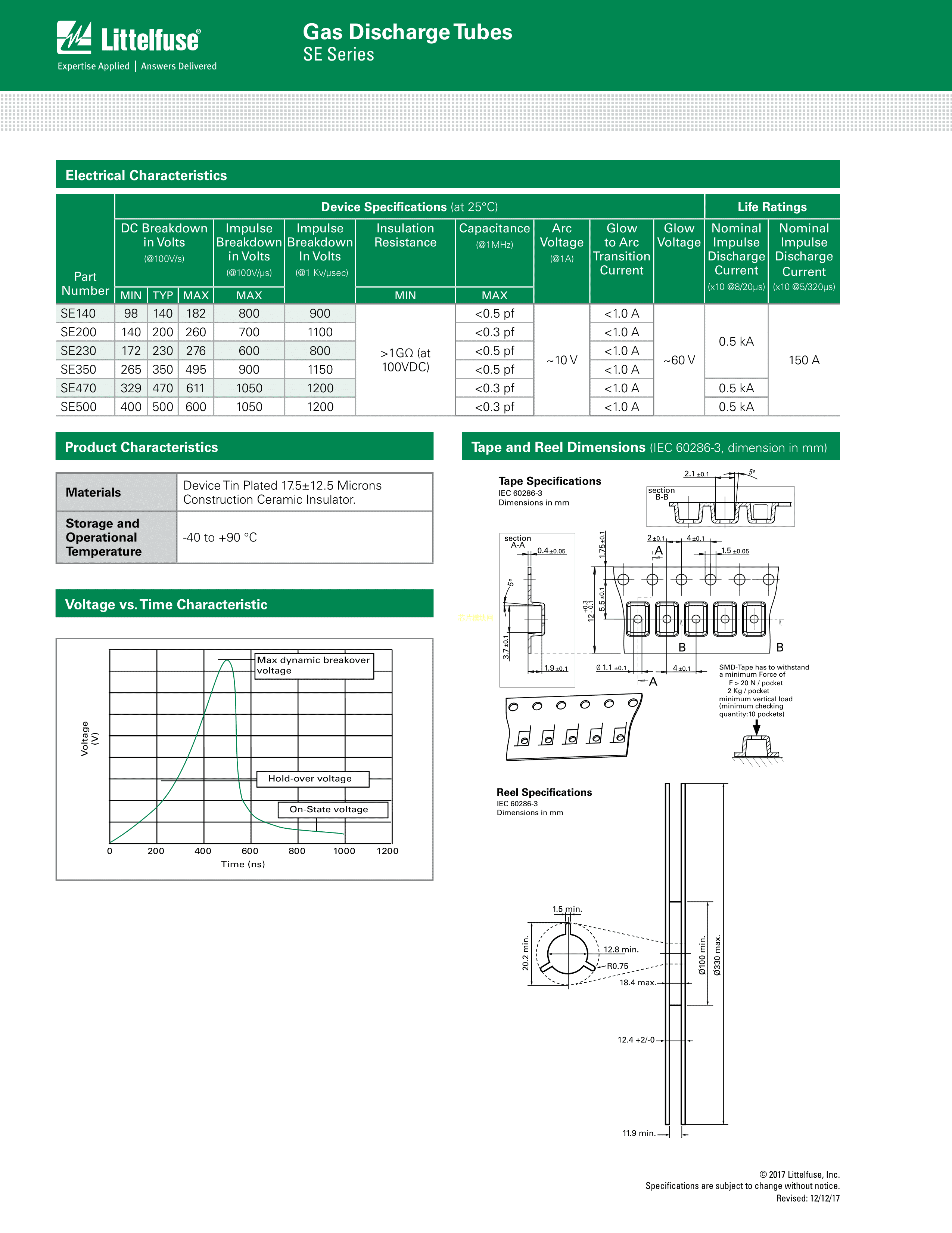 SE140数据手册1206封装Littelfuse(美国力特)PDF规格书,中英文下载