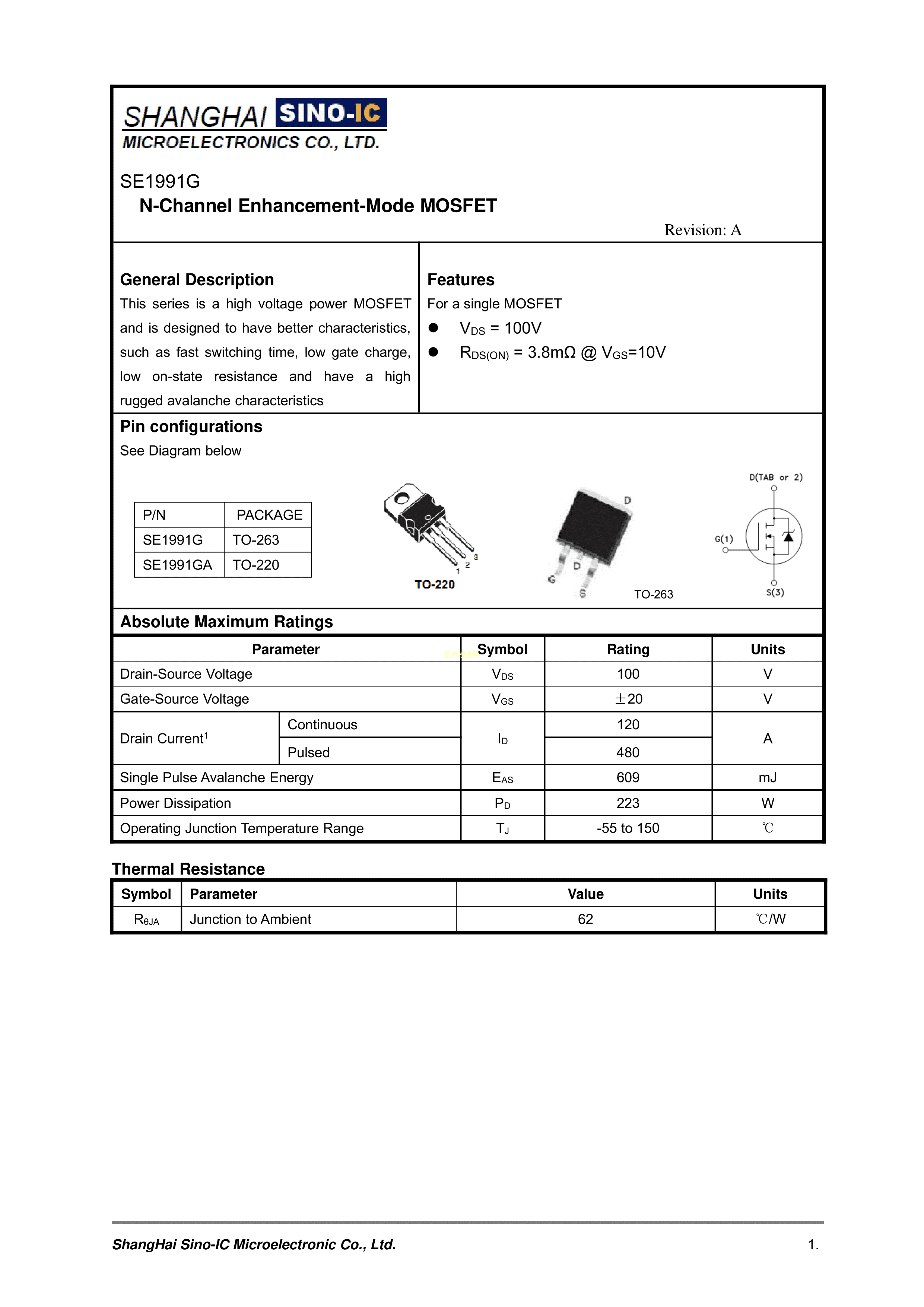 SE1991G数据手册TO-263-2封装SINO-IC(光宇睿芯)PDF规格书,中英文下载