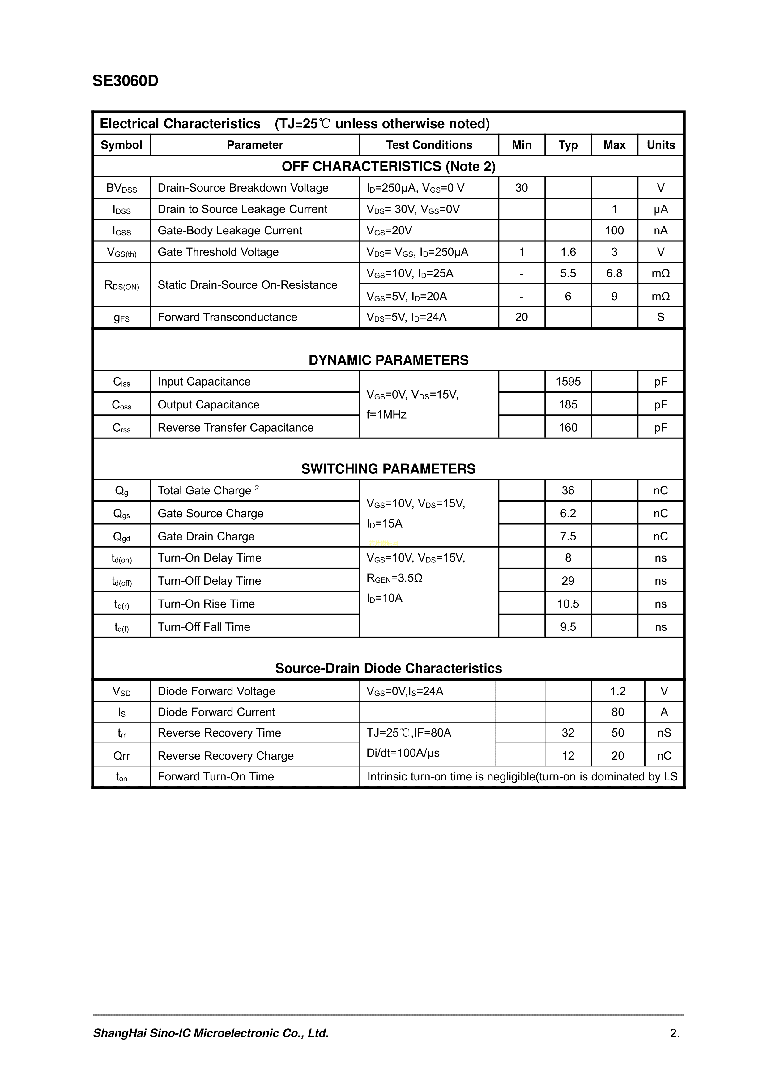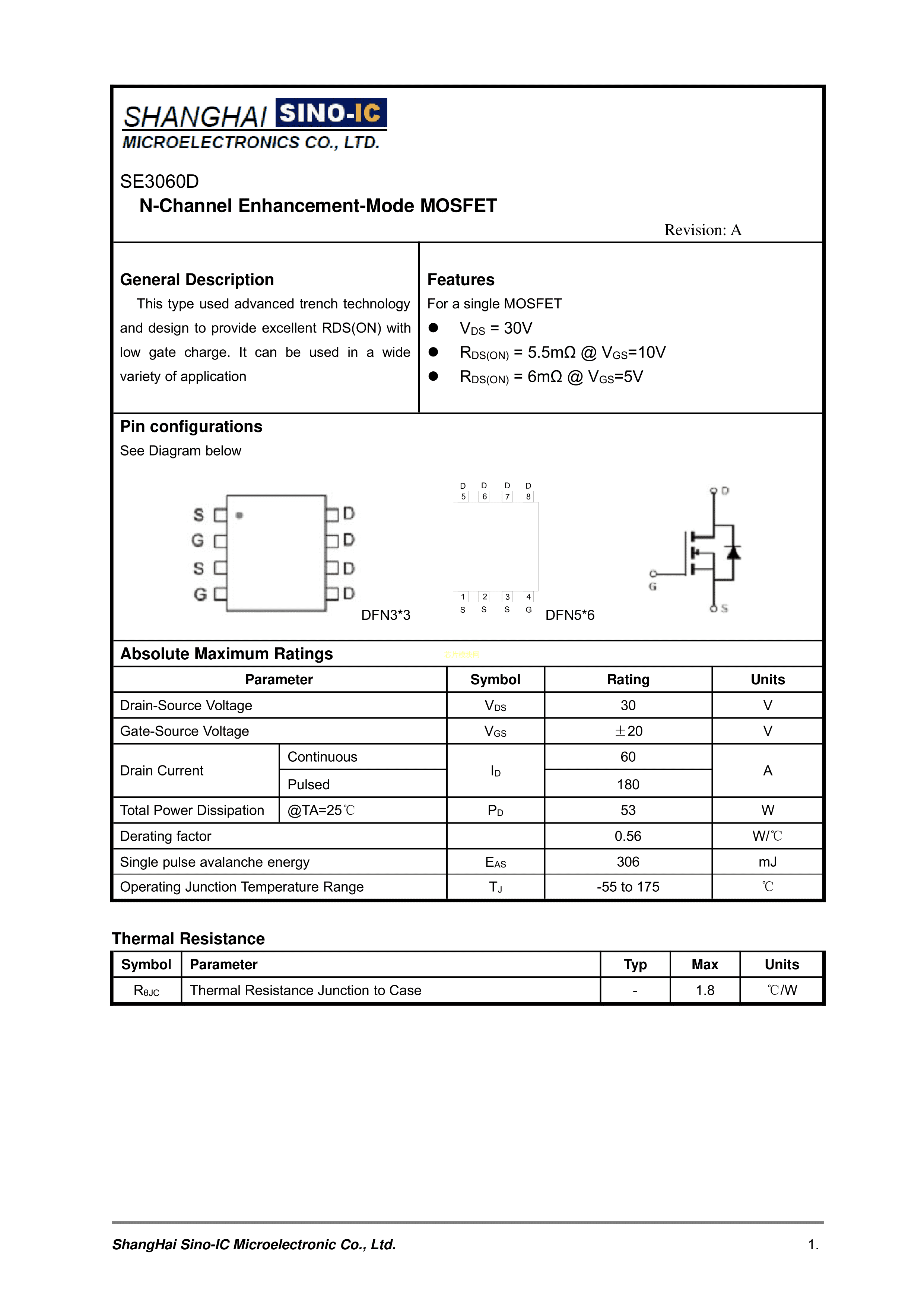 SE3060D数据手册DFN-8封装SINO-IC(光宇睿芯)PDF规格书,中英文下载
