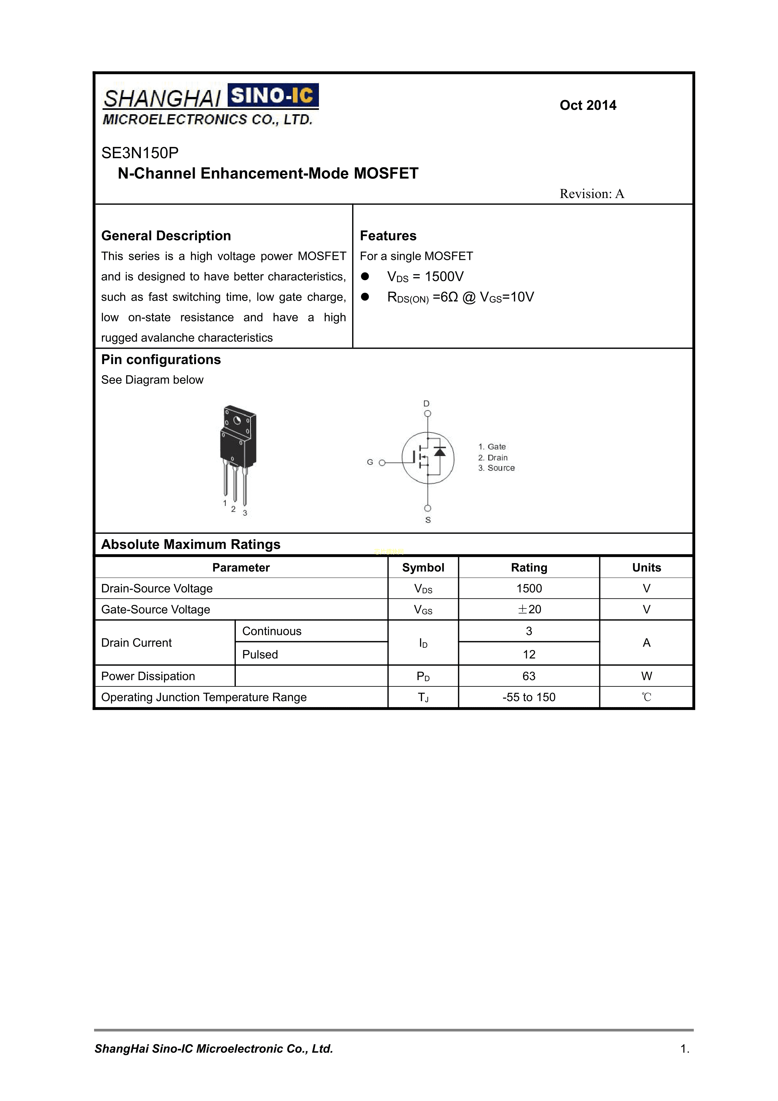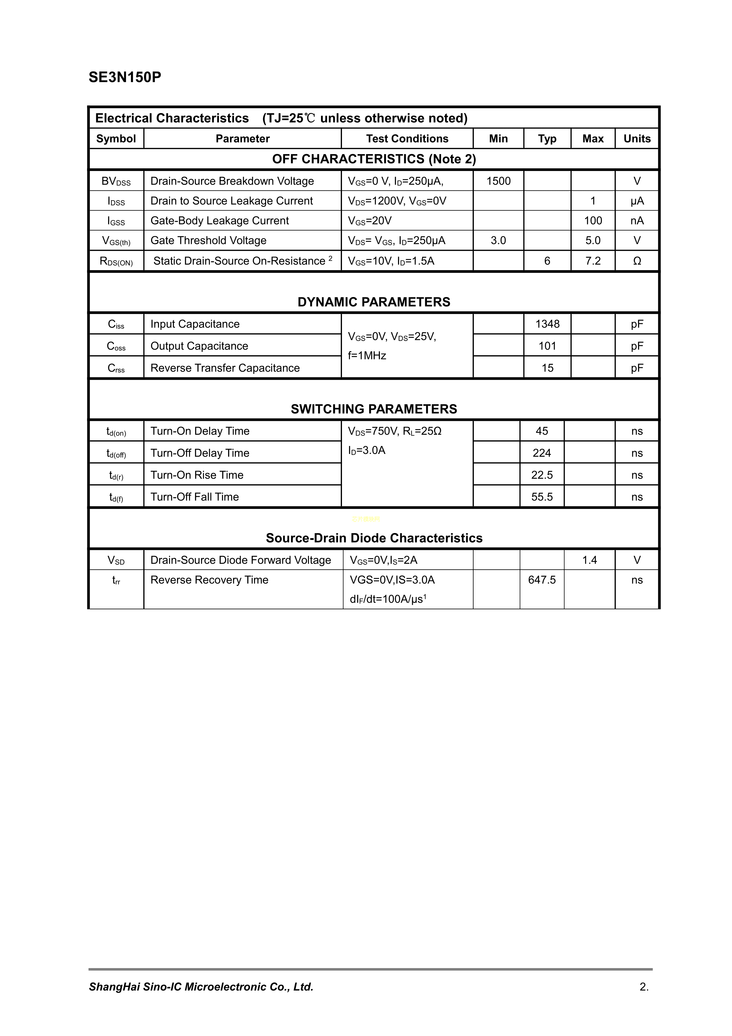 SE3N150P数据手册TO-3P封装SINO-IC(光宇睿芯)PDF规格书,中英文下载