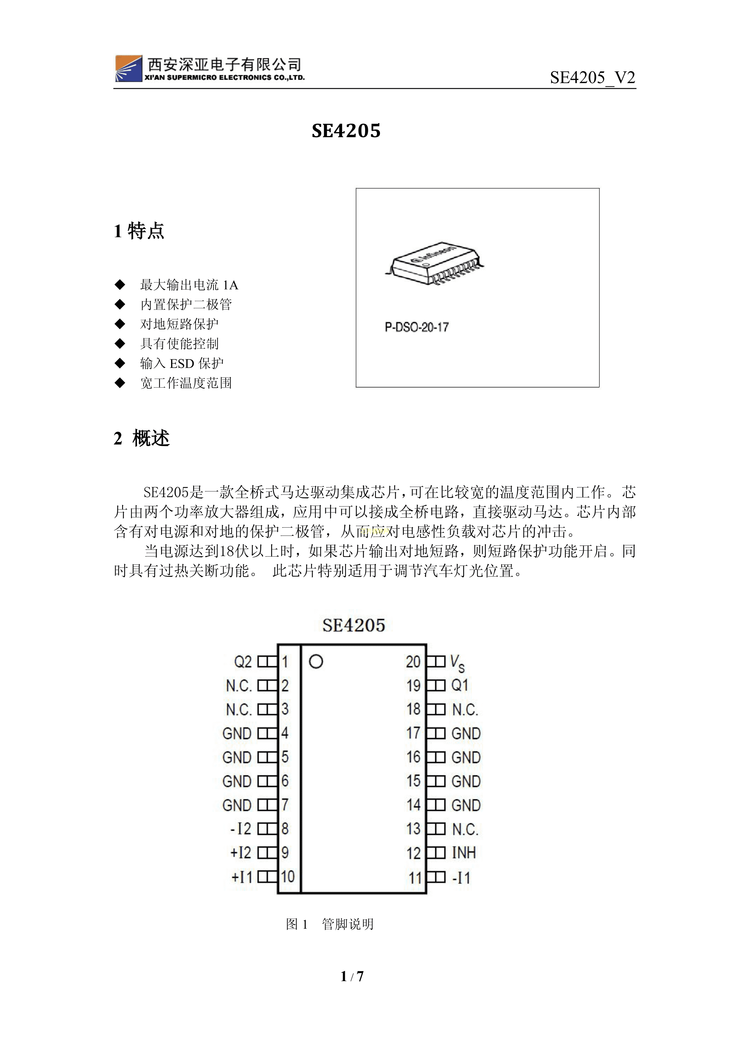 SE4205数据手册SOP-20封装XSEC(深亚电子)PDF规格书,中英文下载