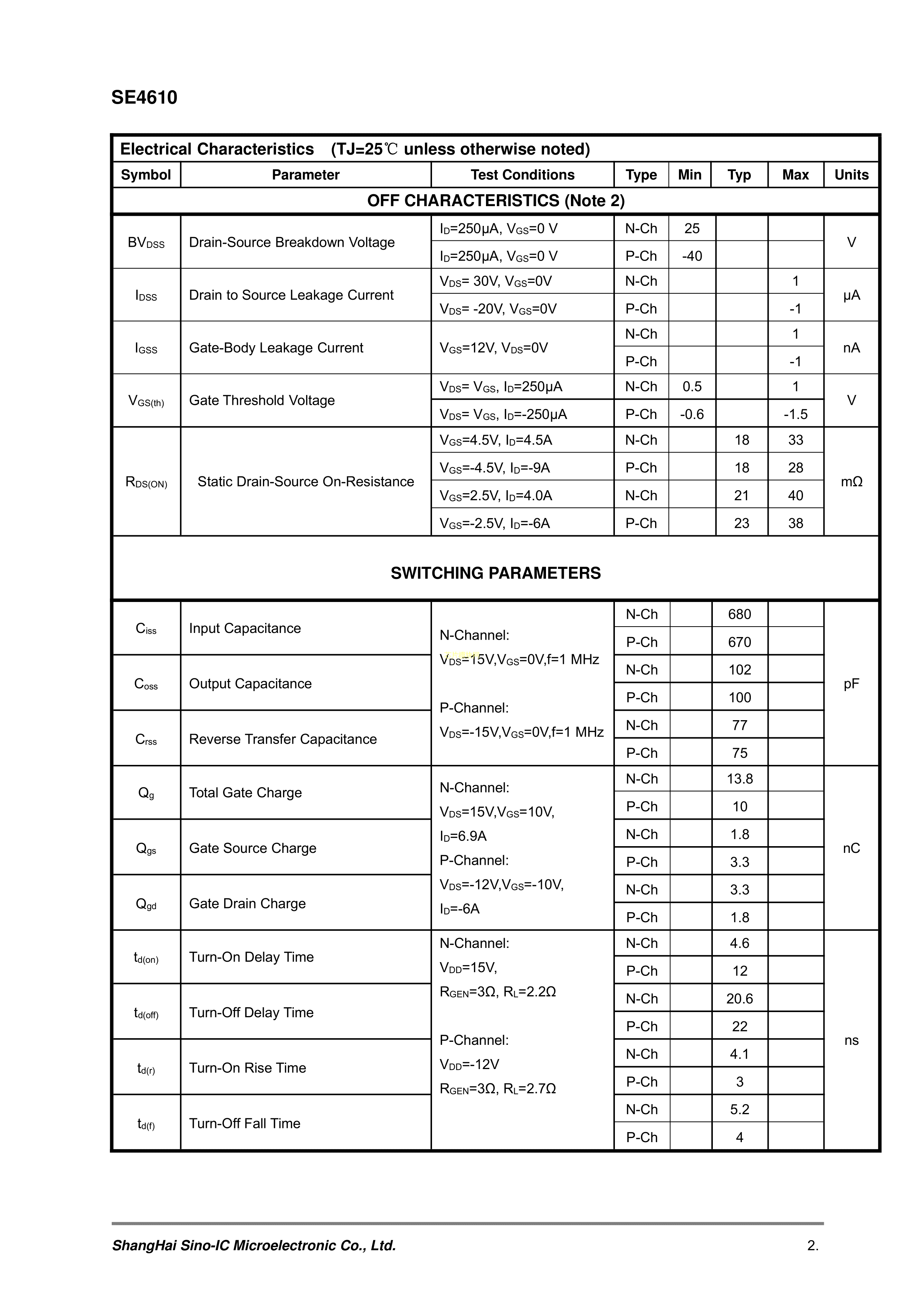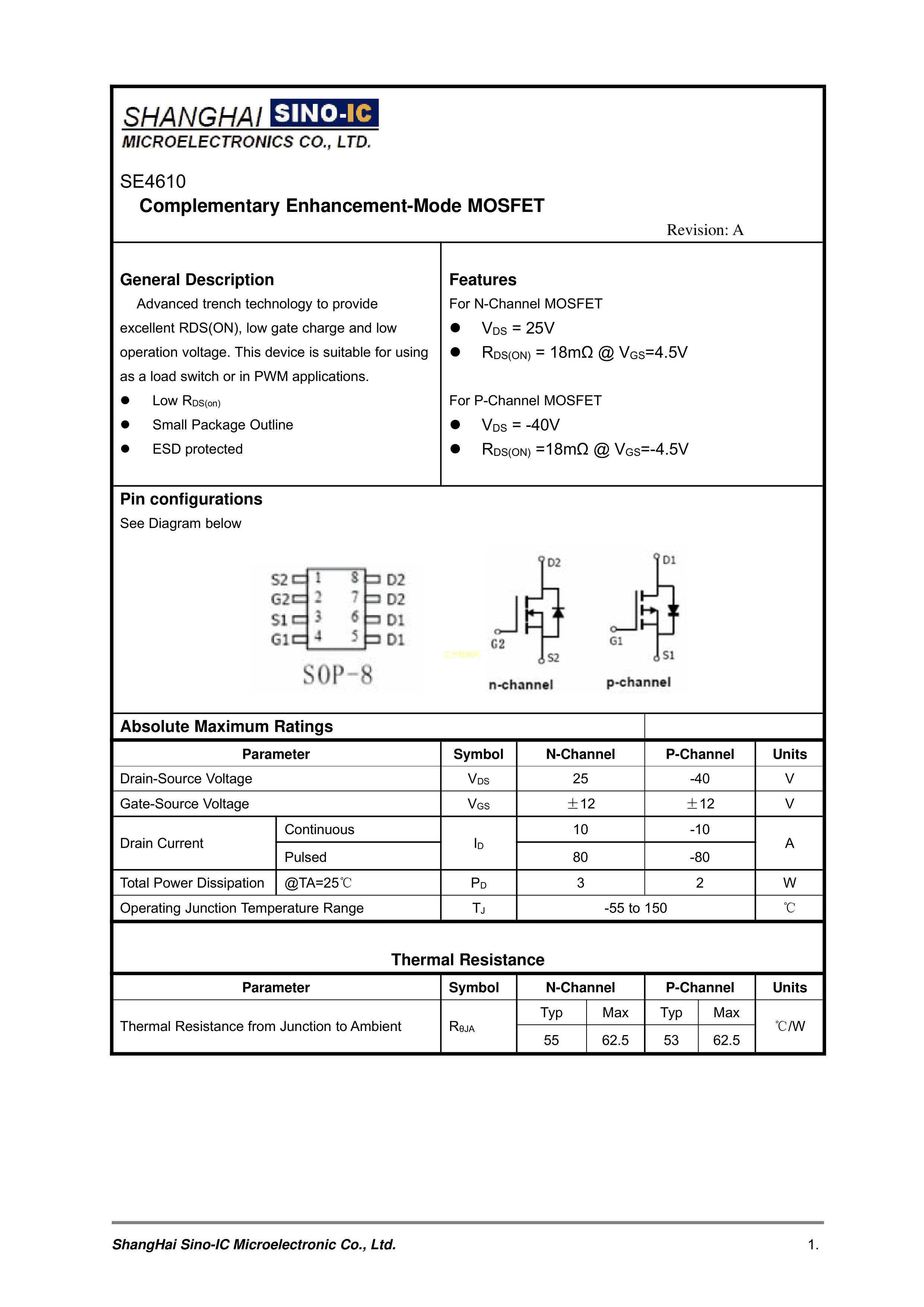 SE4610数据手册SOIC-8_150mil封装SINO-IC(光宇睿芯)PDF规格书,中英文下载