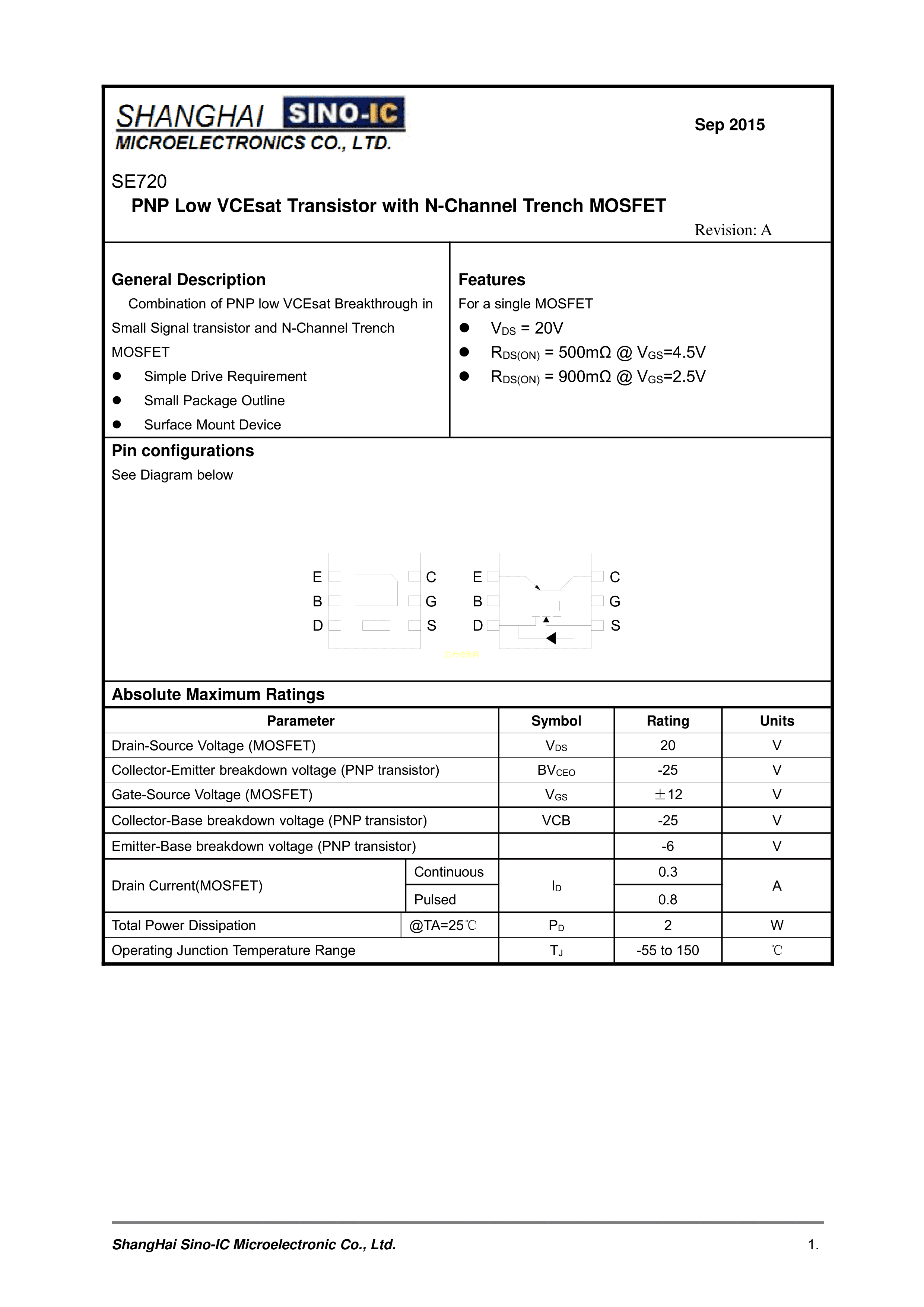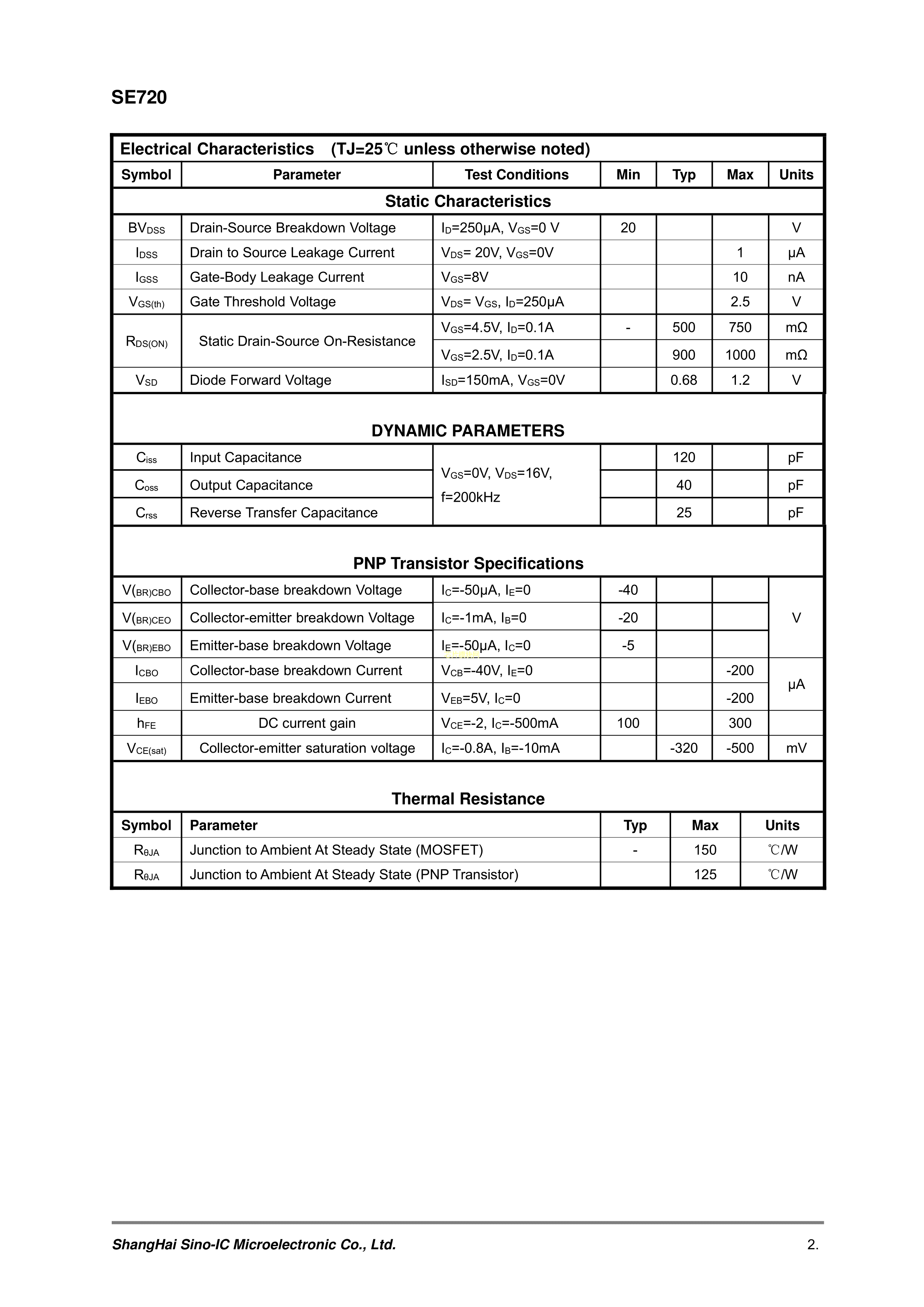 SE720数据手册DFN(2x2x0.75)封装SINO-IC(光宇睿芯)PDF规格书,中英文下载