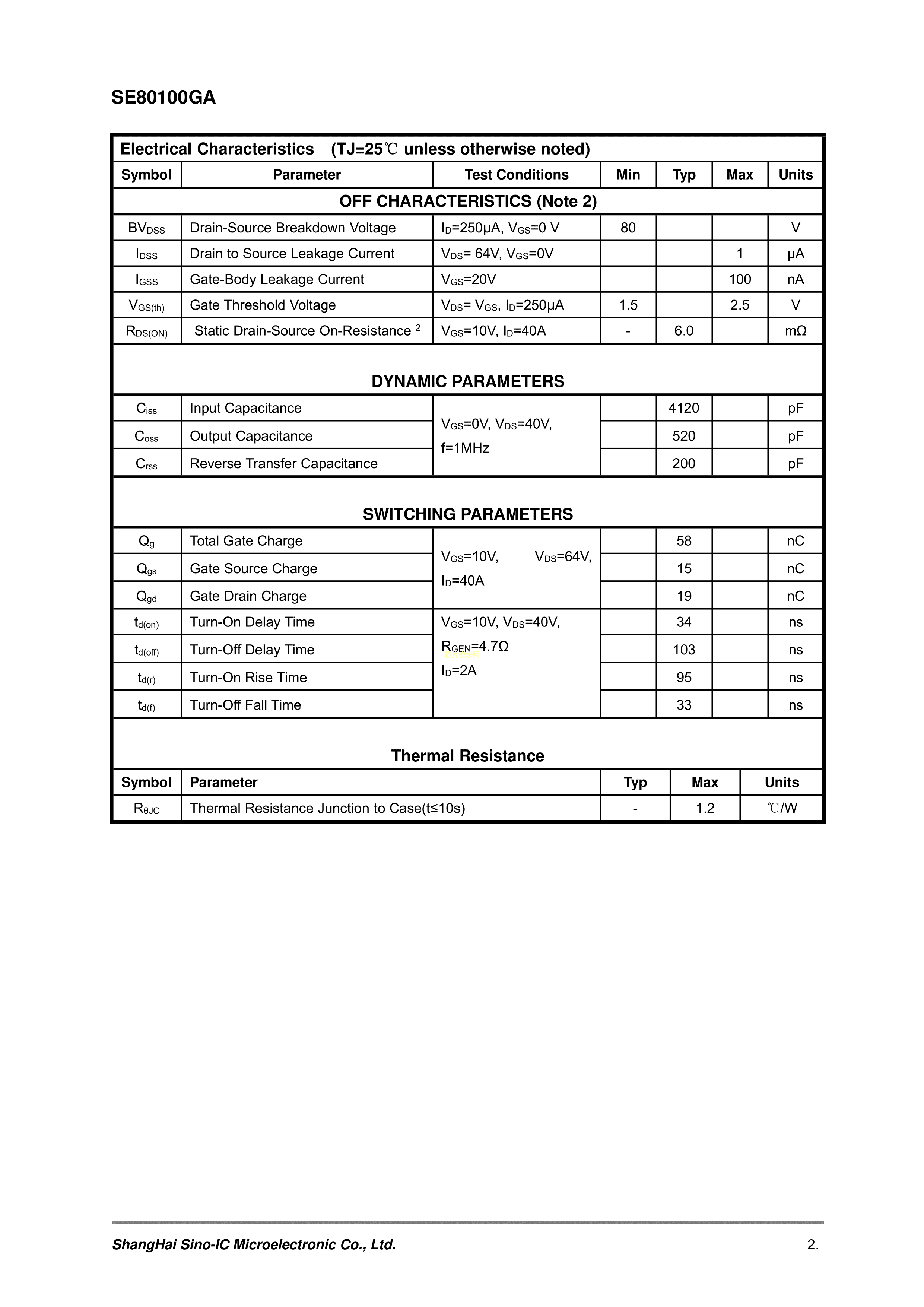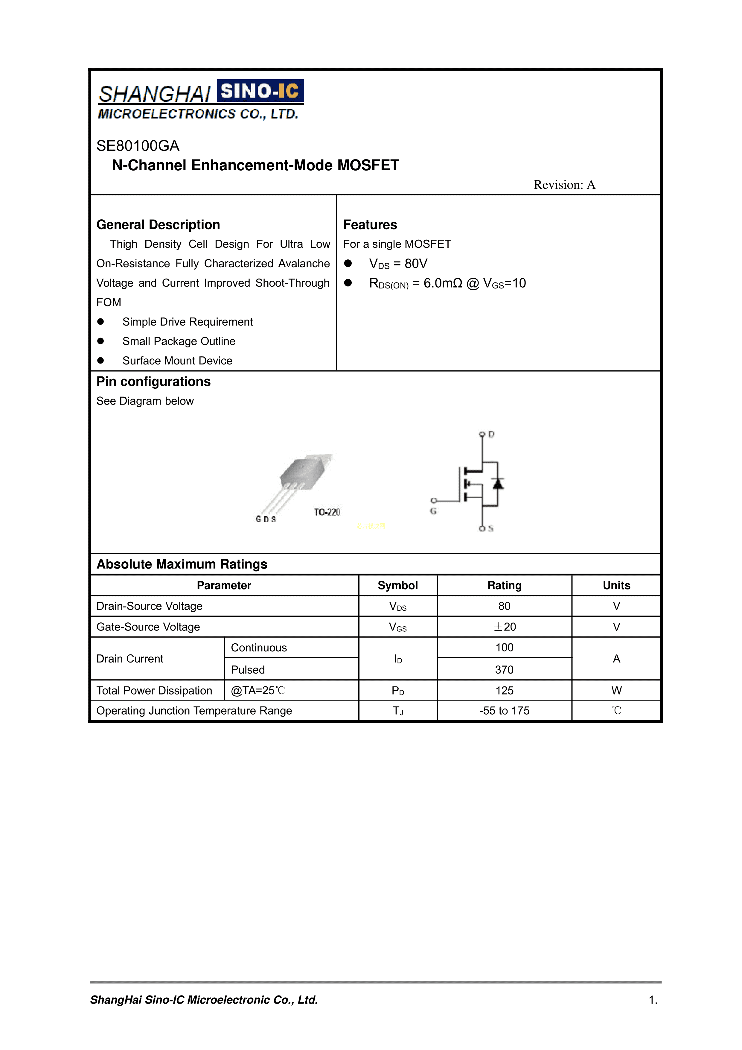 SE80100GA数据手册TO-220(TO-220-3)封装SINO-IC(光宇睿芯)PDF规格书