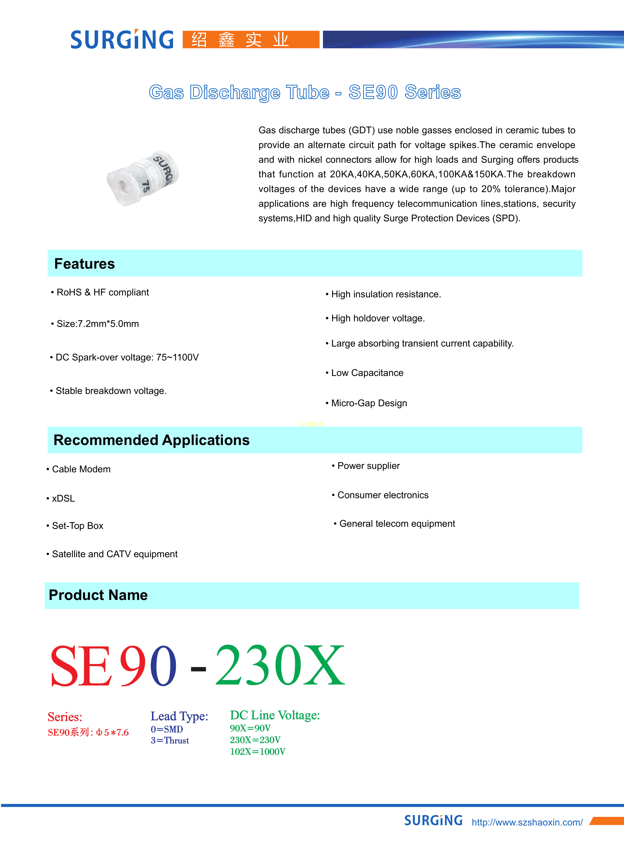 SE90-470X数据手册SMD5x7.6mm封装SURGING(绍鑫)PDF规格书,中英文下载