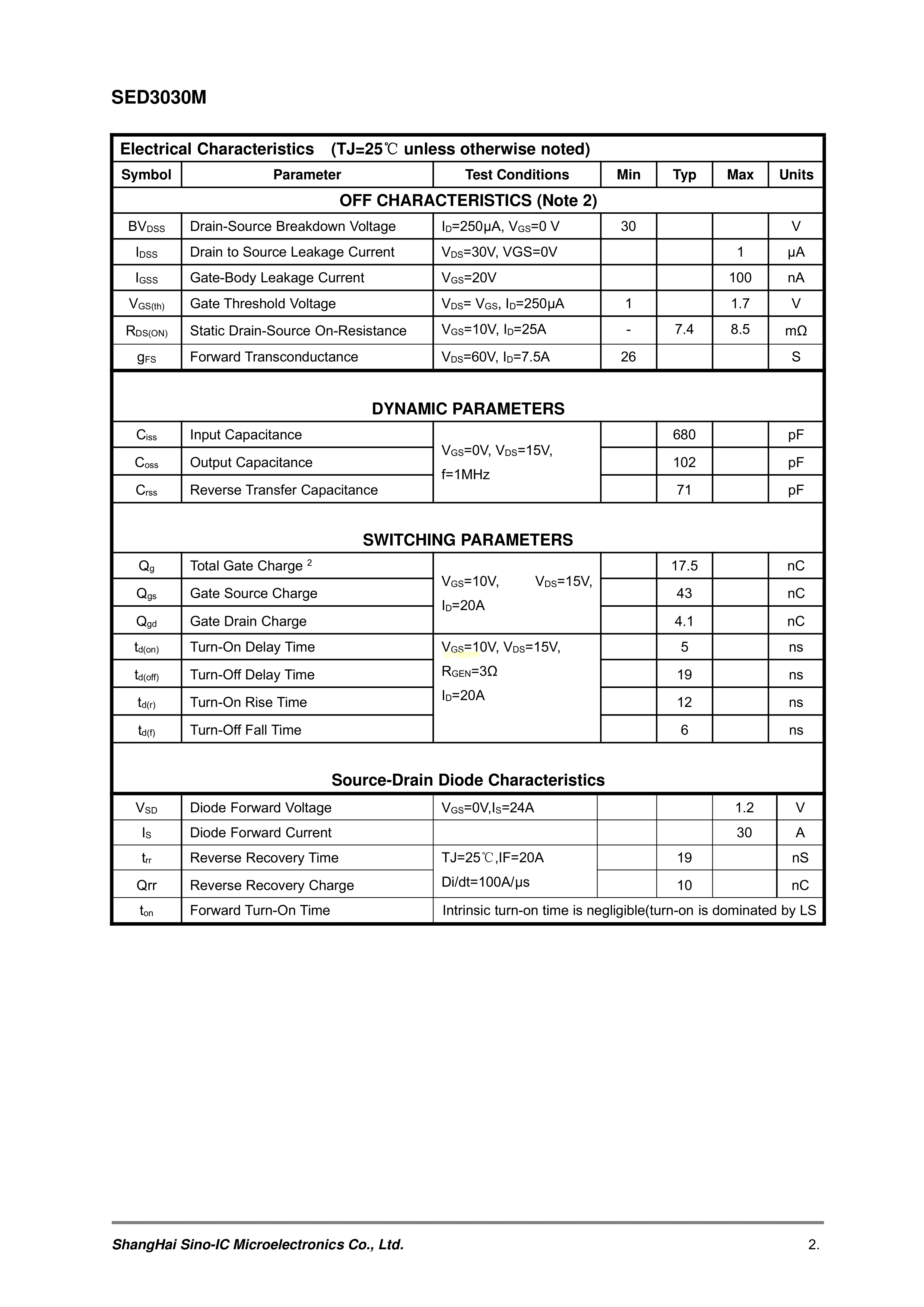 SED3030M数据手册DFN 3x3封装SINO-IC(光宇睿芯)PDF规格书,中英文下载