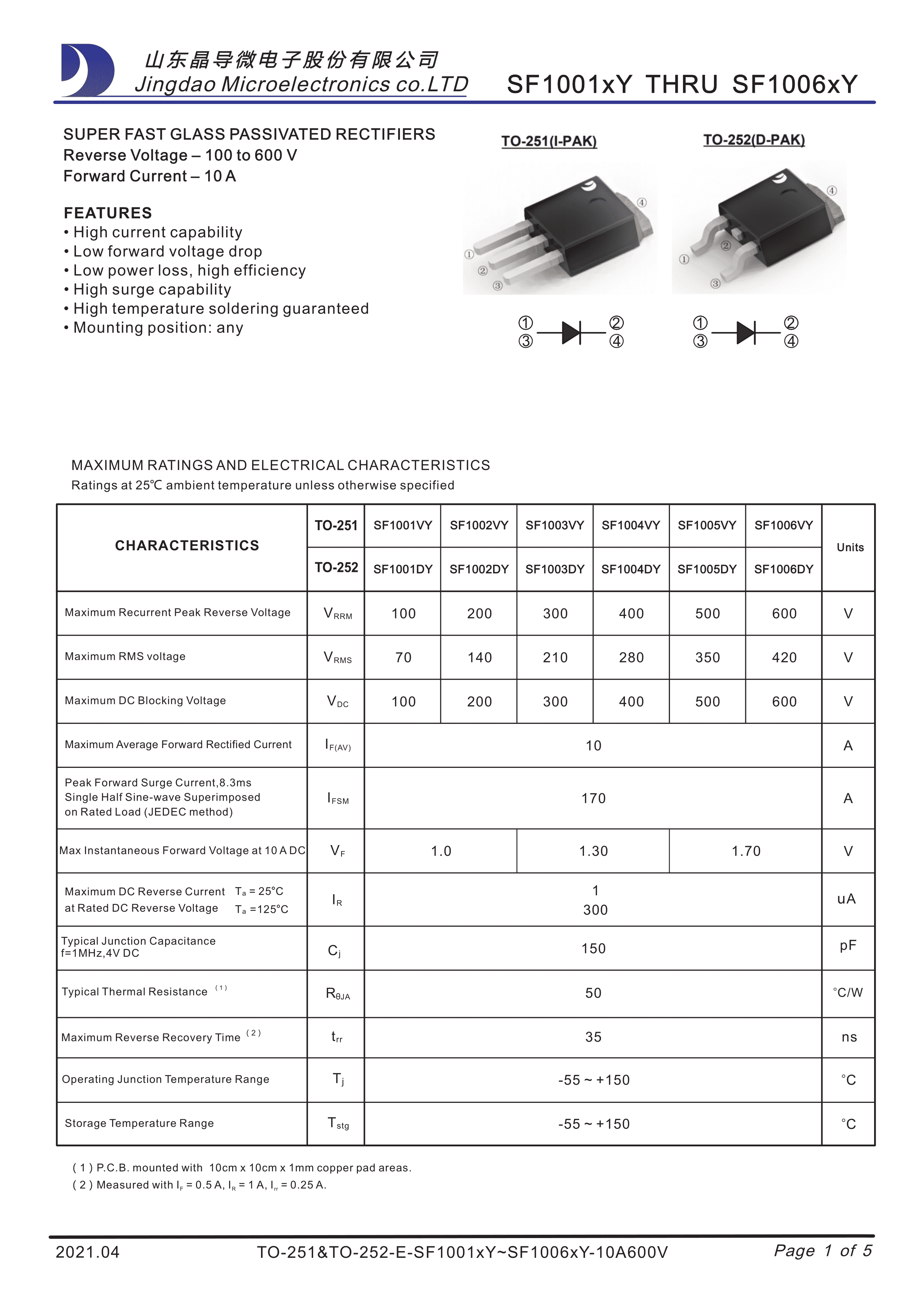 SF1006DY数据手册TO-252封装晶导微电子PDF规格书,中英文下载