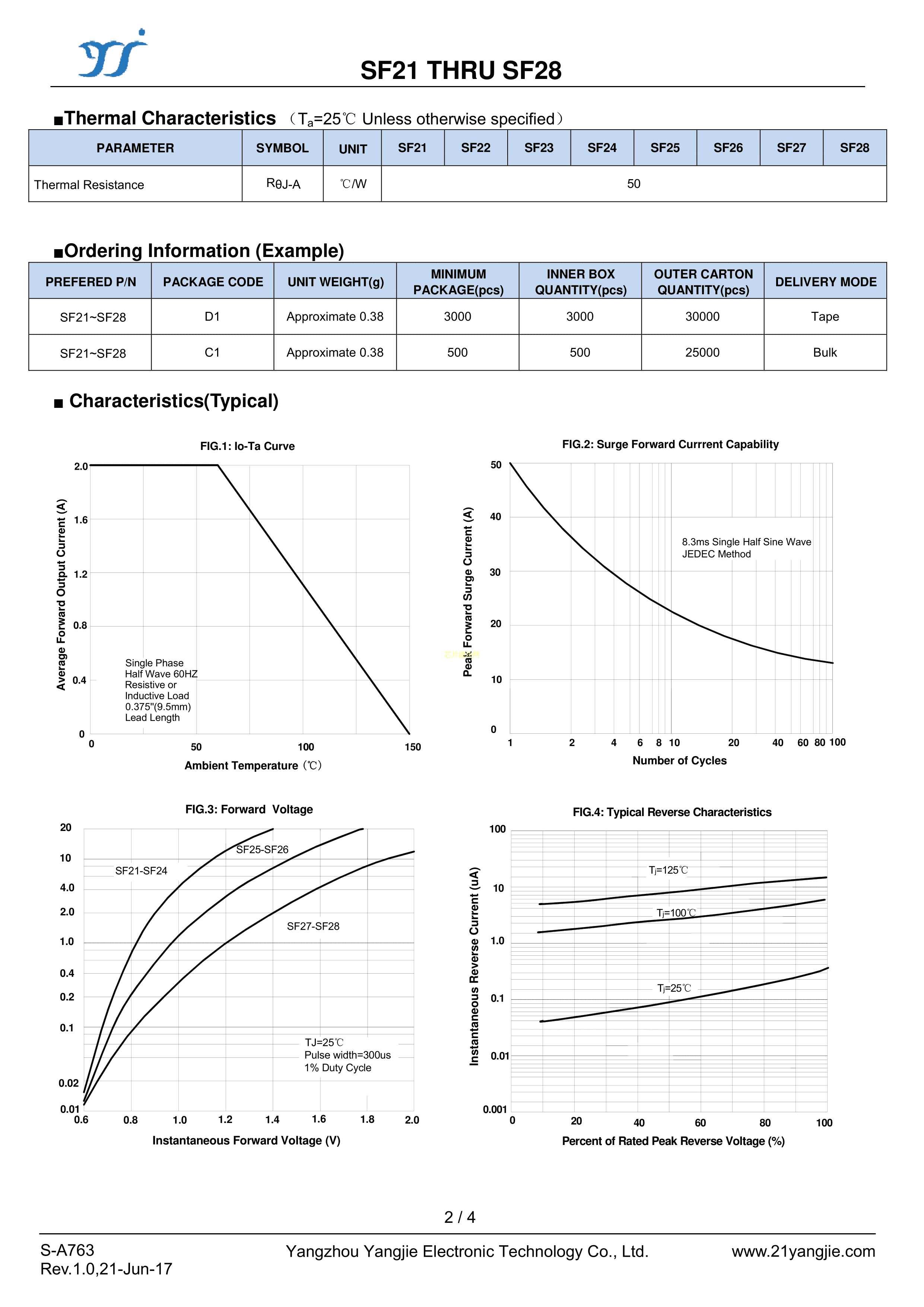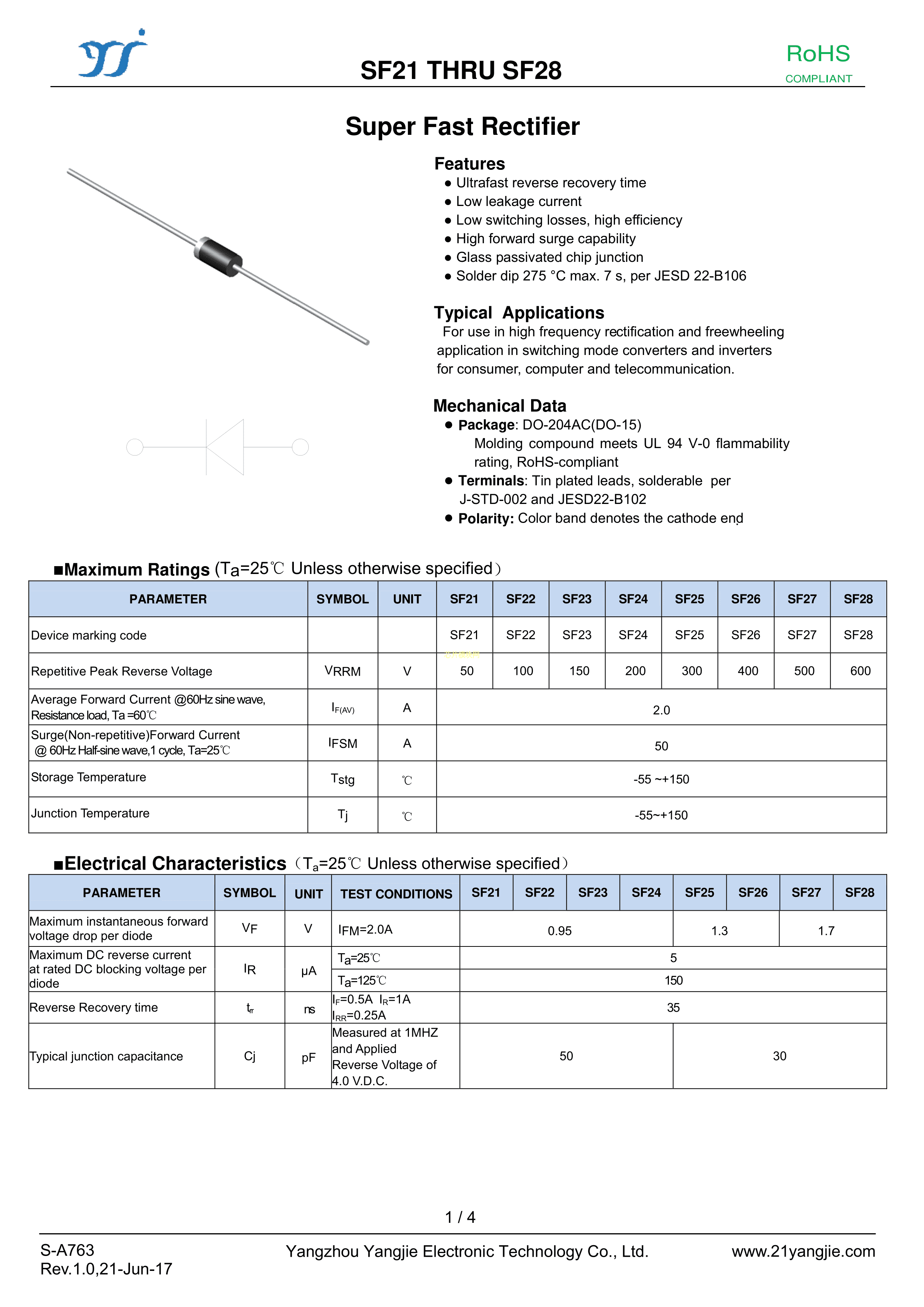 SF24数据手册DO-15封装YANGJIE(扬杰)PDF规格书,中英文下载