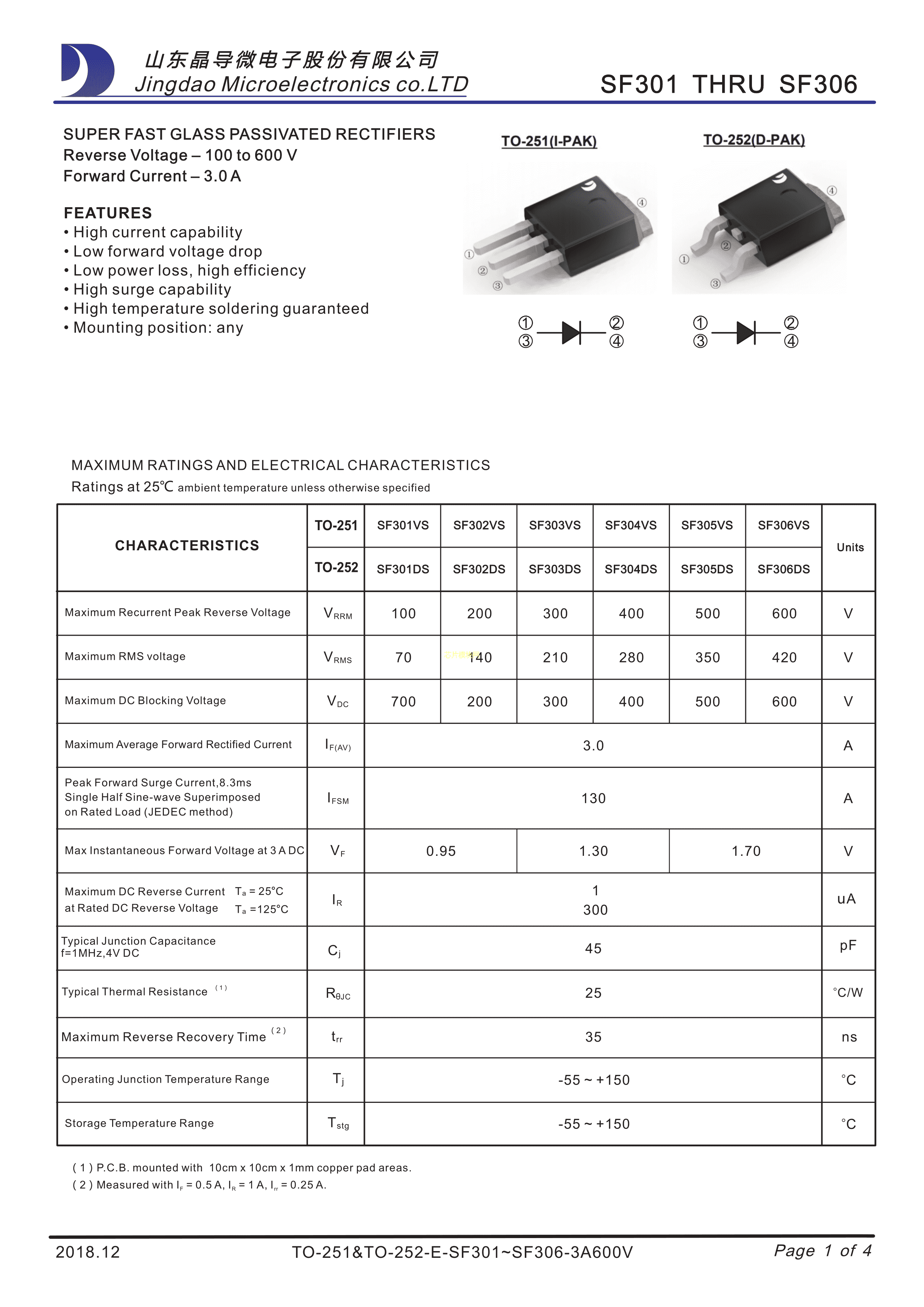 SF302DS数据手册TO-252封装晶导微电子PDF规格书,中英文下载