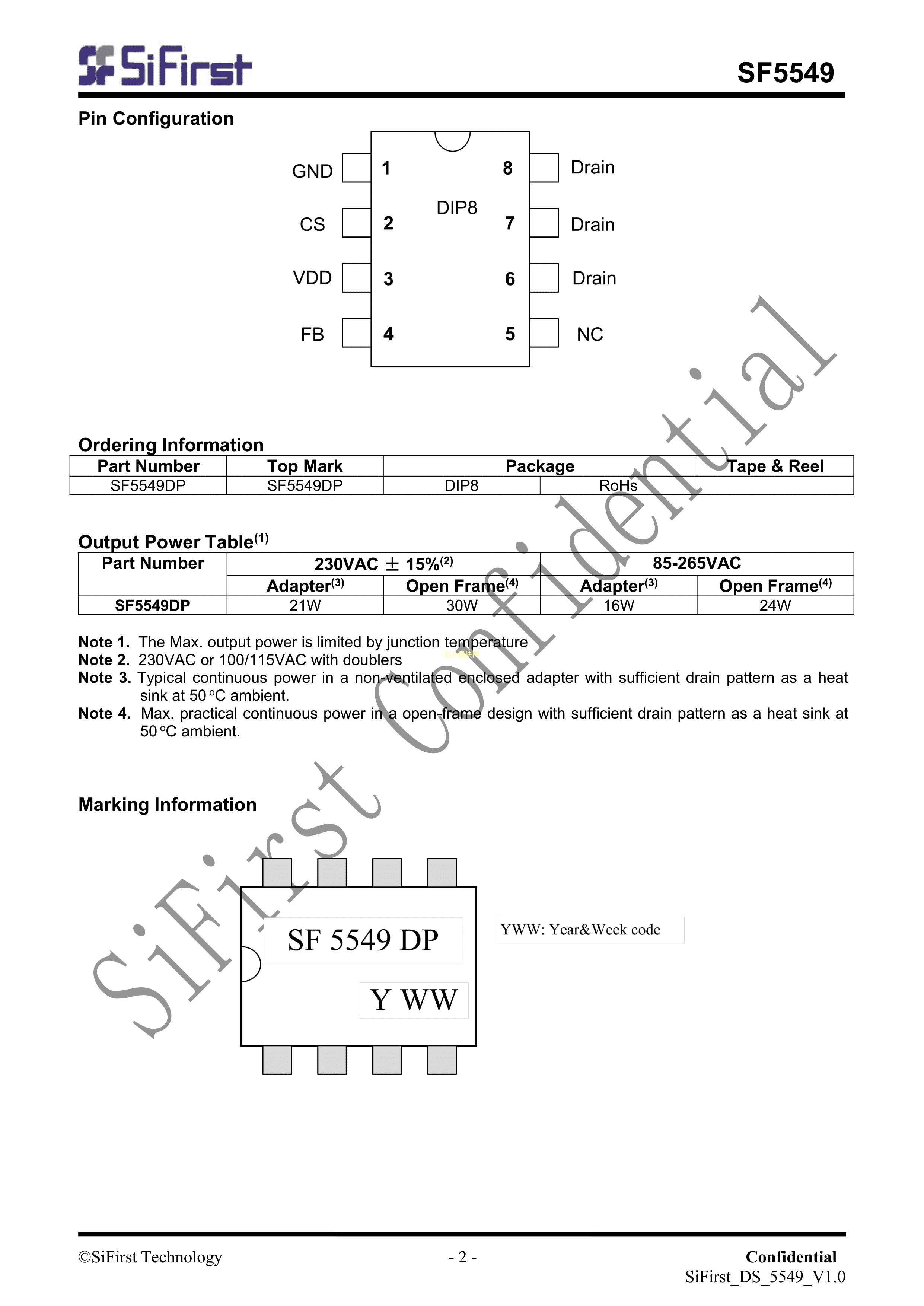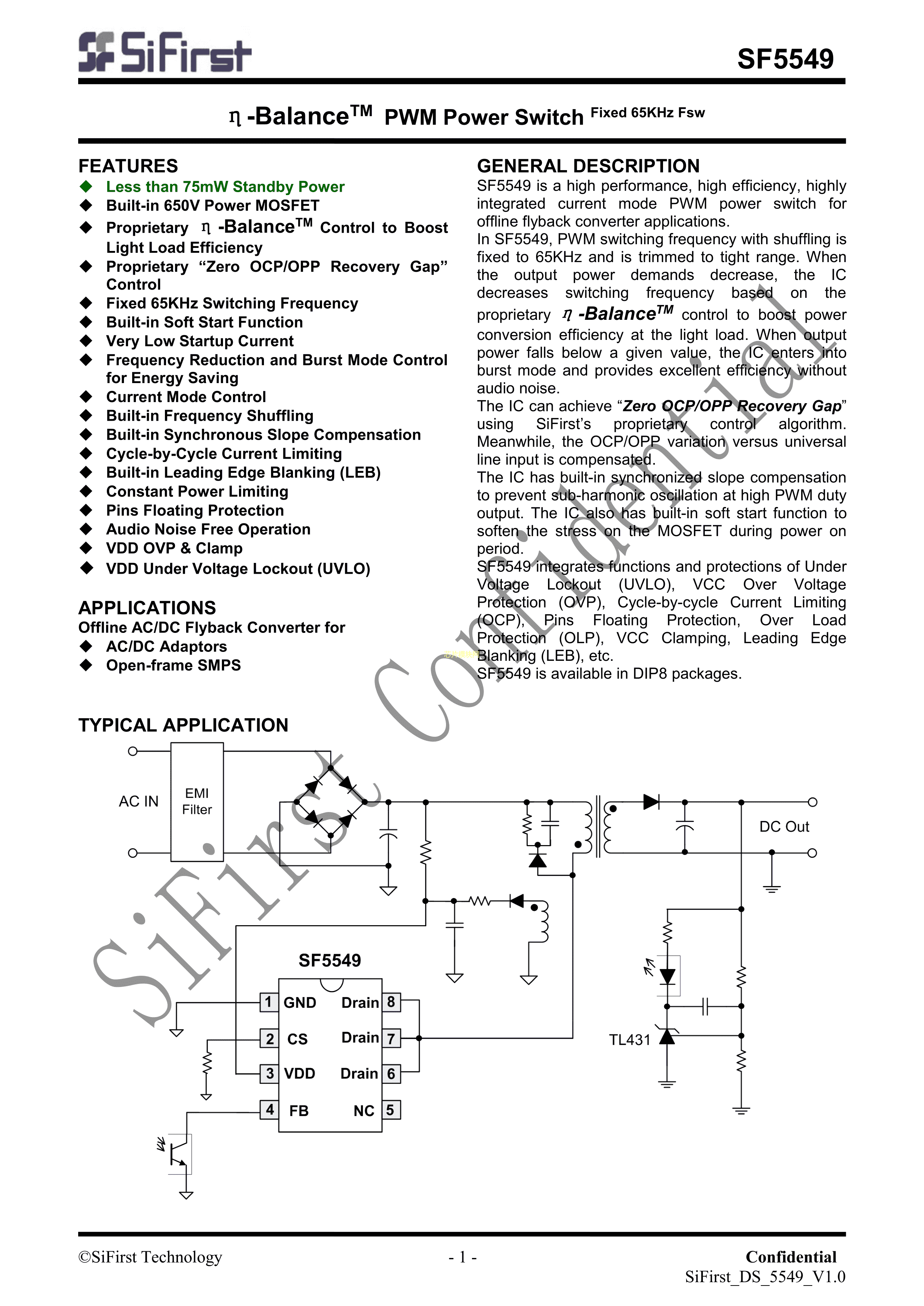 SF5549DP数据手册DIP-8封装Sifirst(赛威科技)PDF规格书,中英文下载