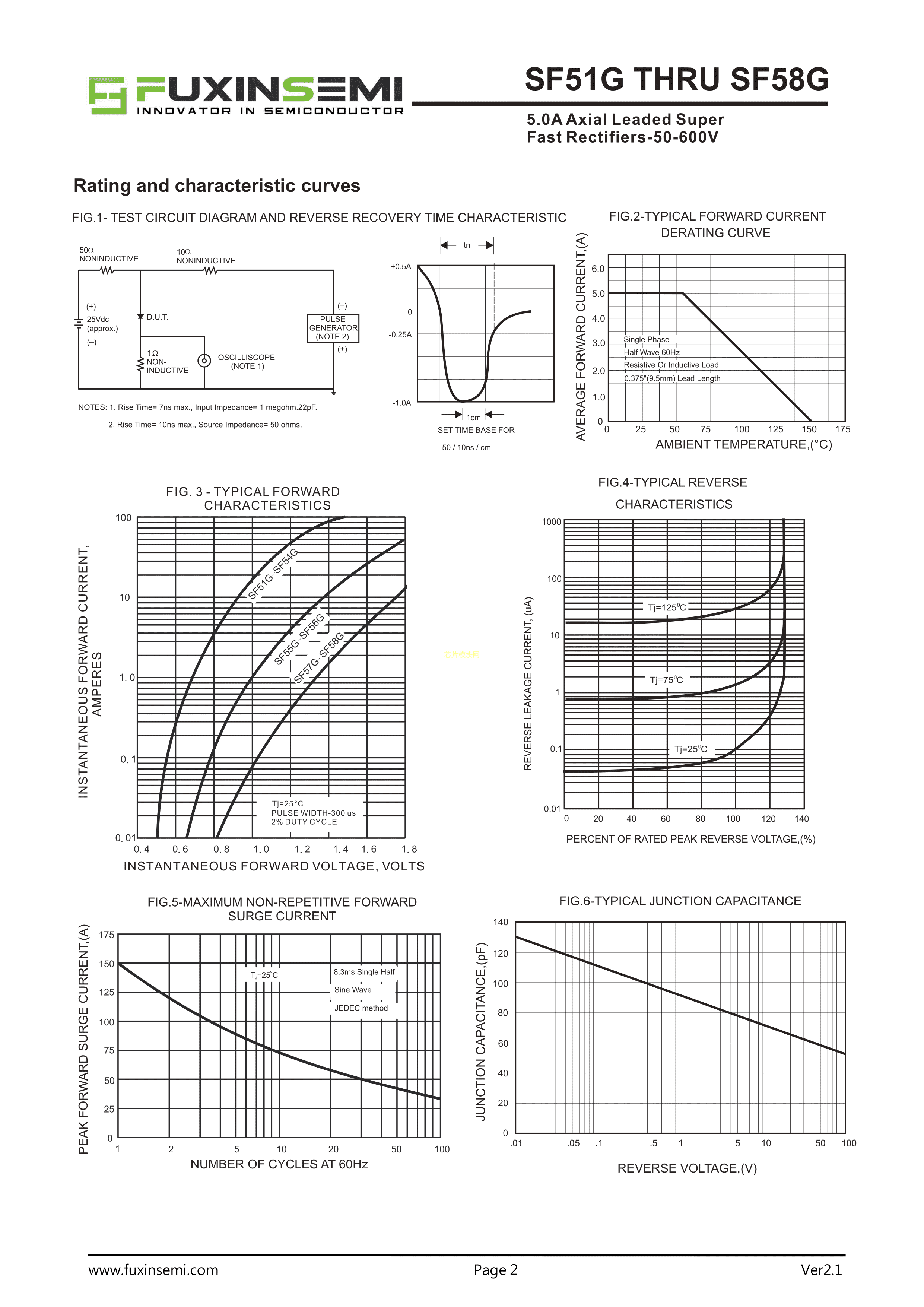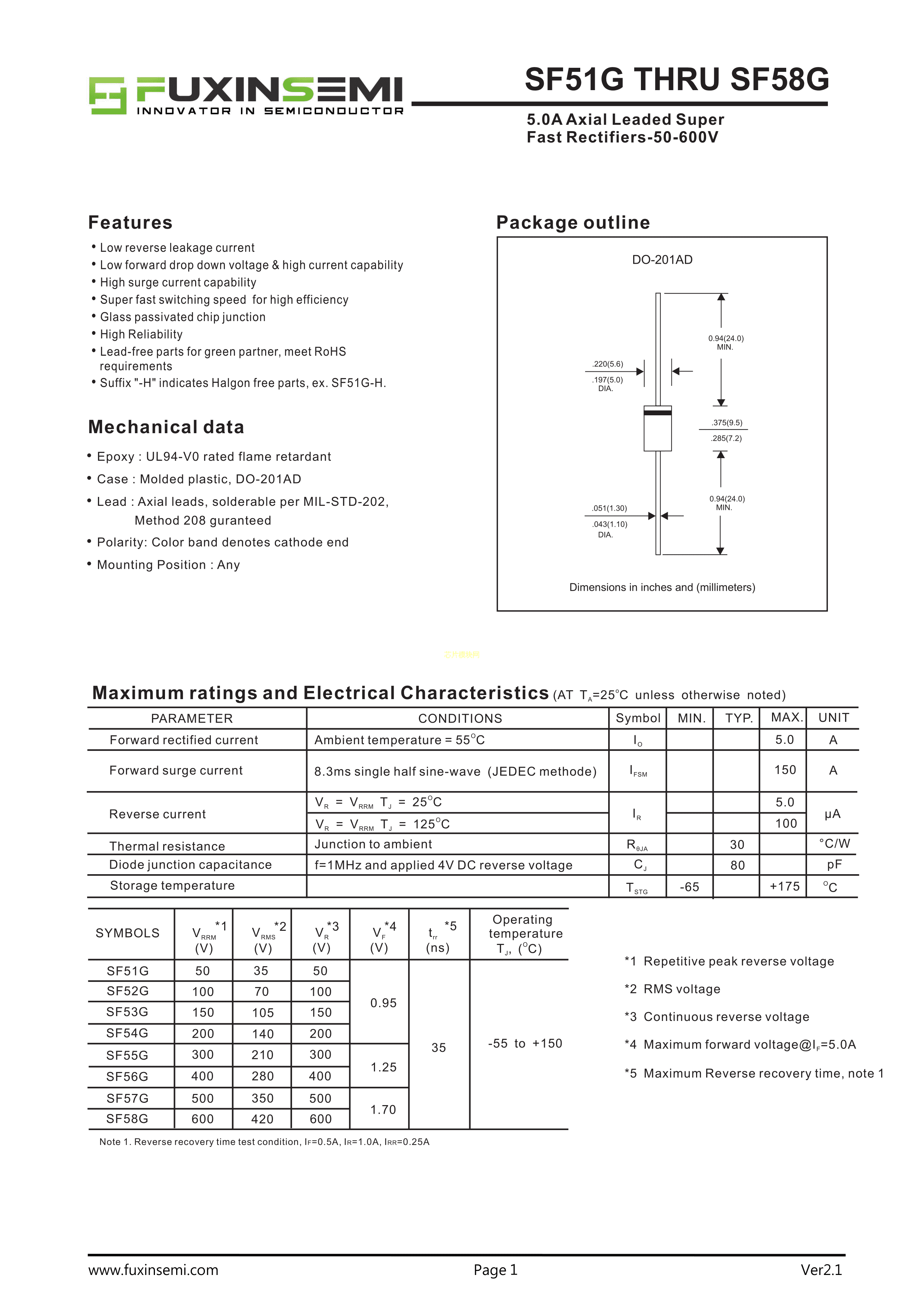 SF56G数据手册DO-201AD封装FUXINSEMI(富芯森美)PDF规格书,中英文下载