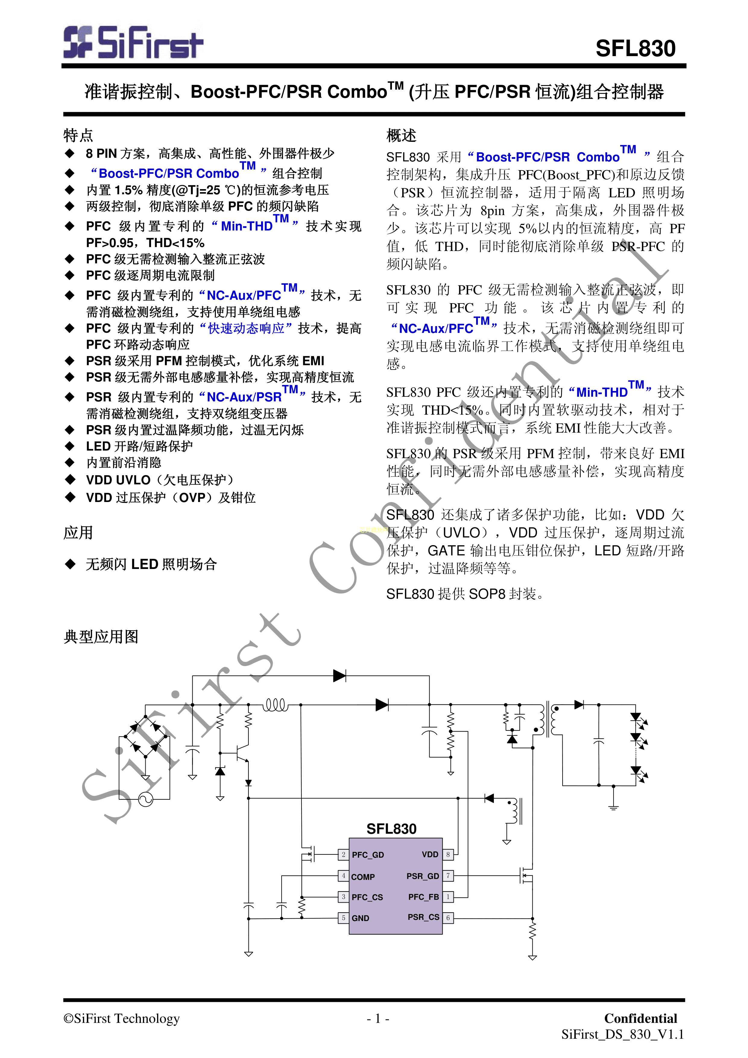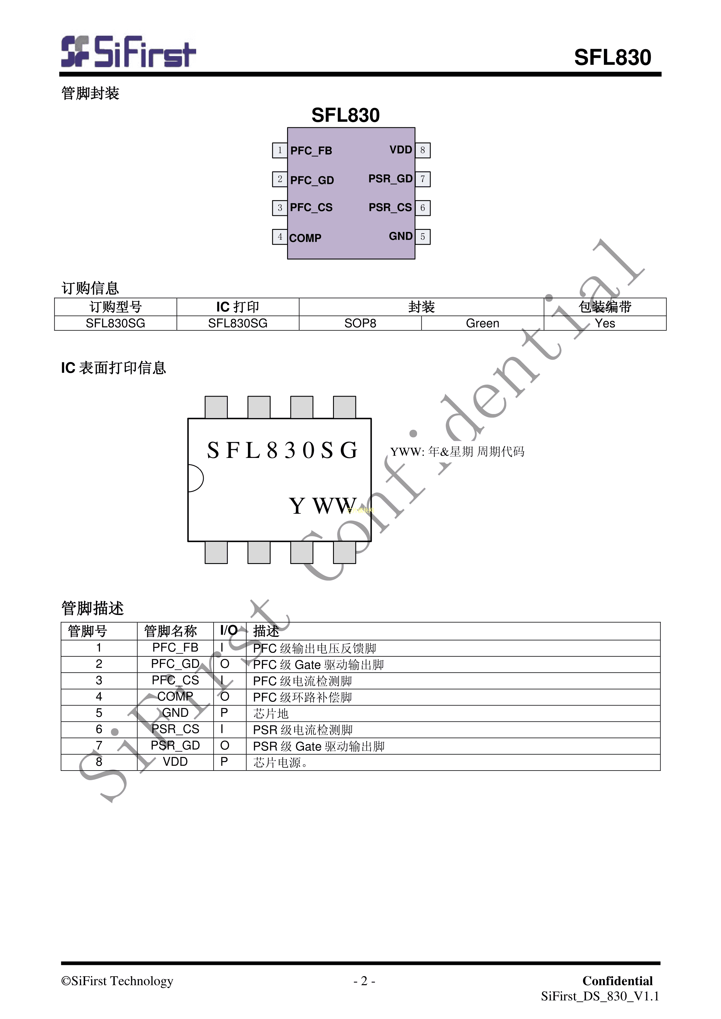 SFL830SGT数据手册SOP-8封装Sifirst(赛威科技)PDF规格书,中英文下载