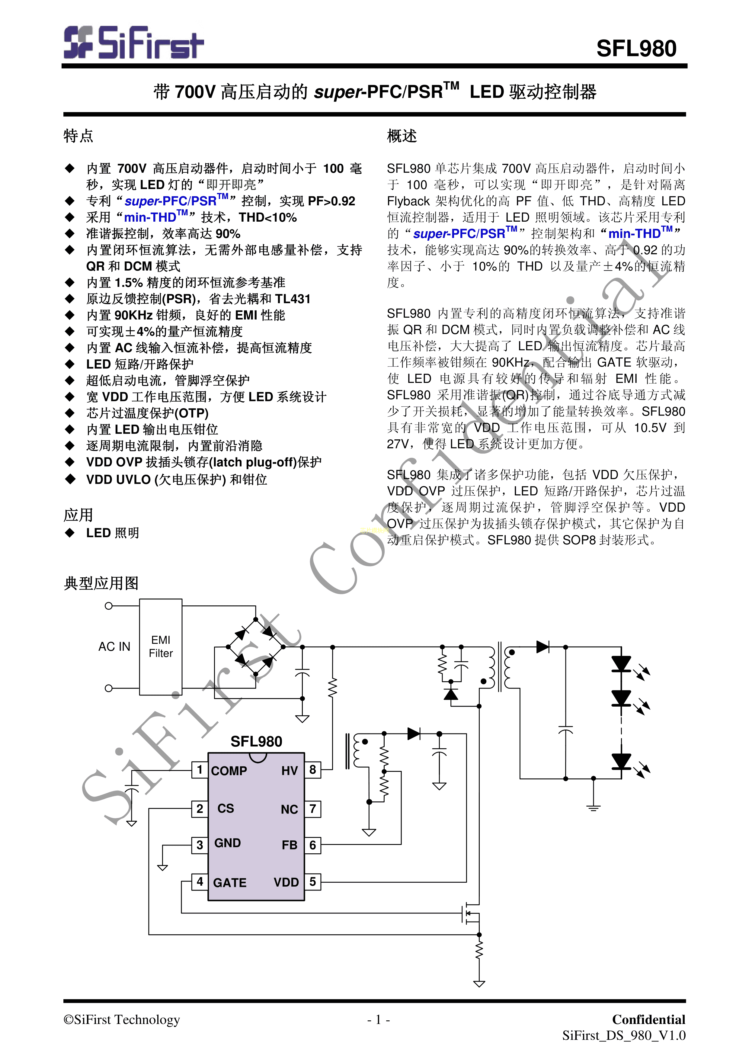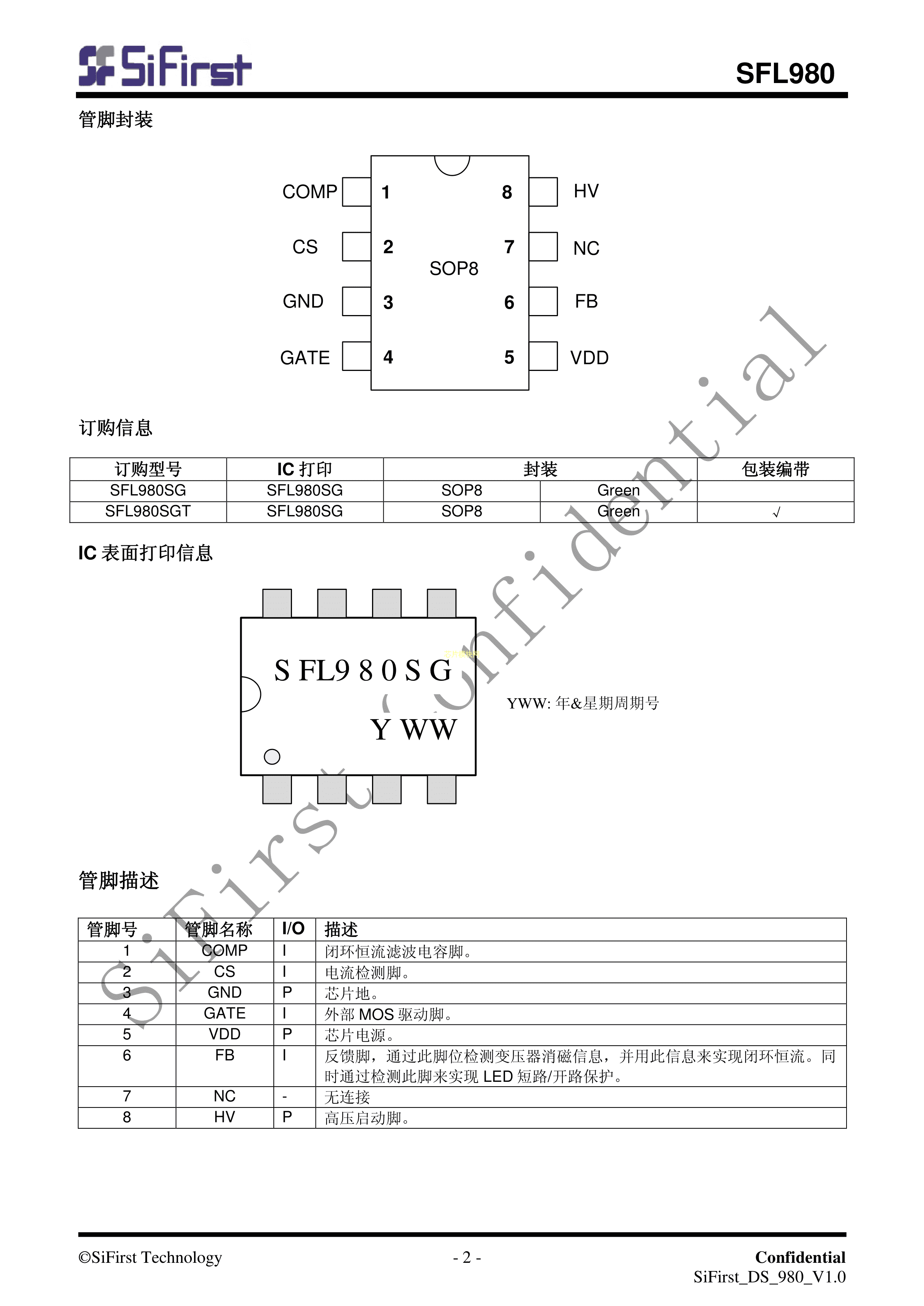 SFL980SG数据手册SOP-8封装Sifirst(赛威科技)PDF规格书,中英文下载