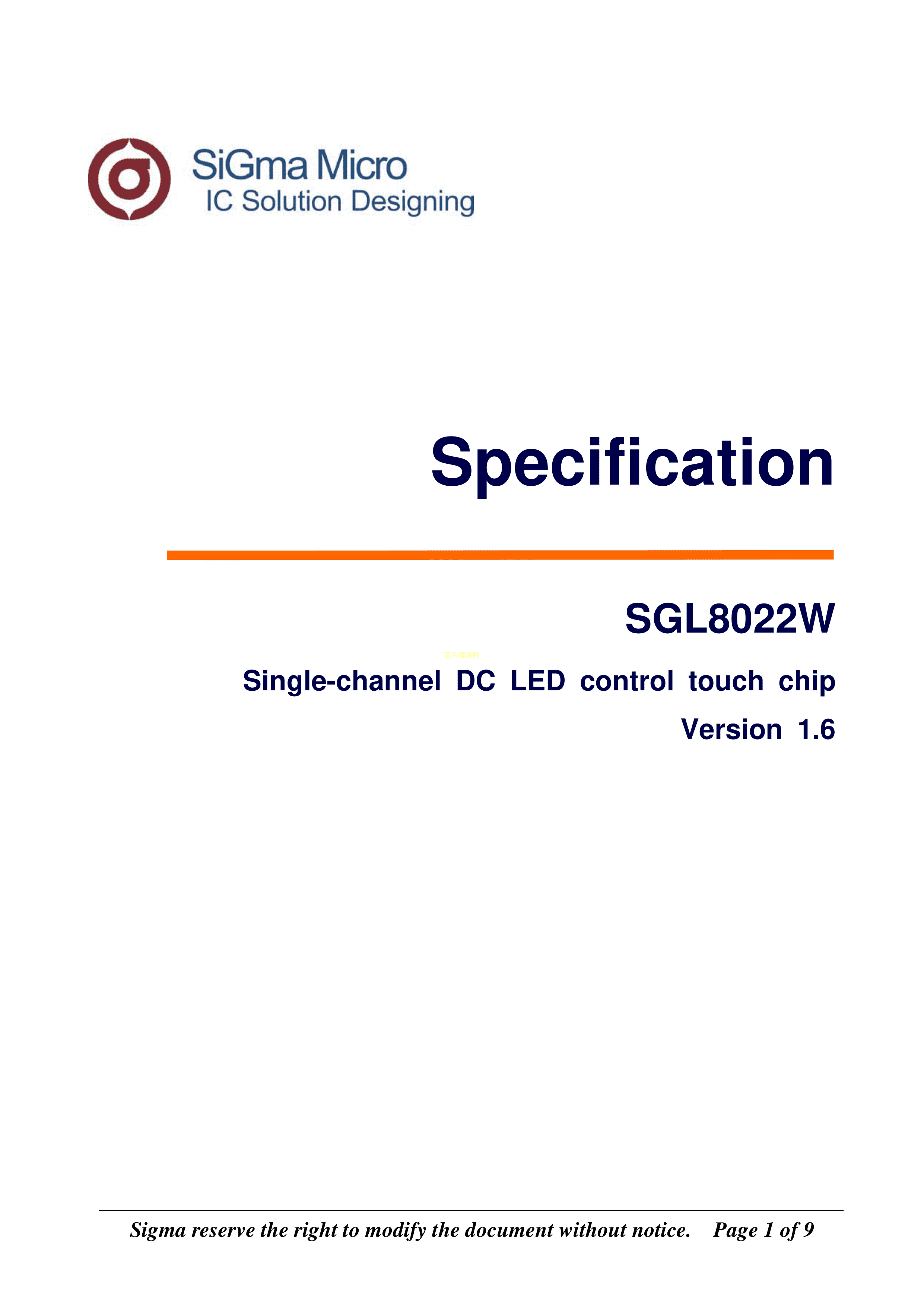 SGL8022W数据手册SOP-8_150mil封装SIGMA(希格玛)PDF规格书,中英文下载