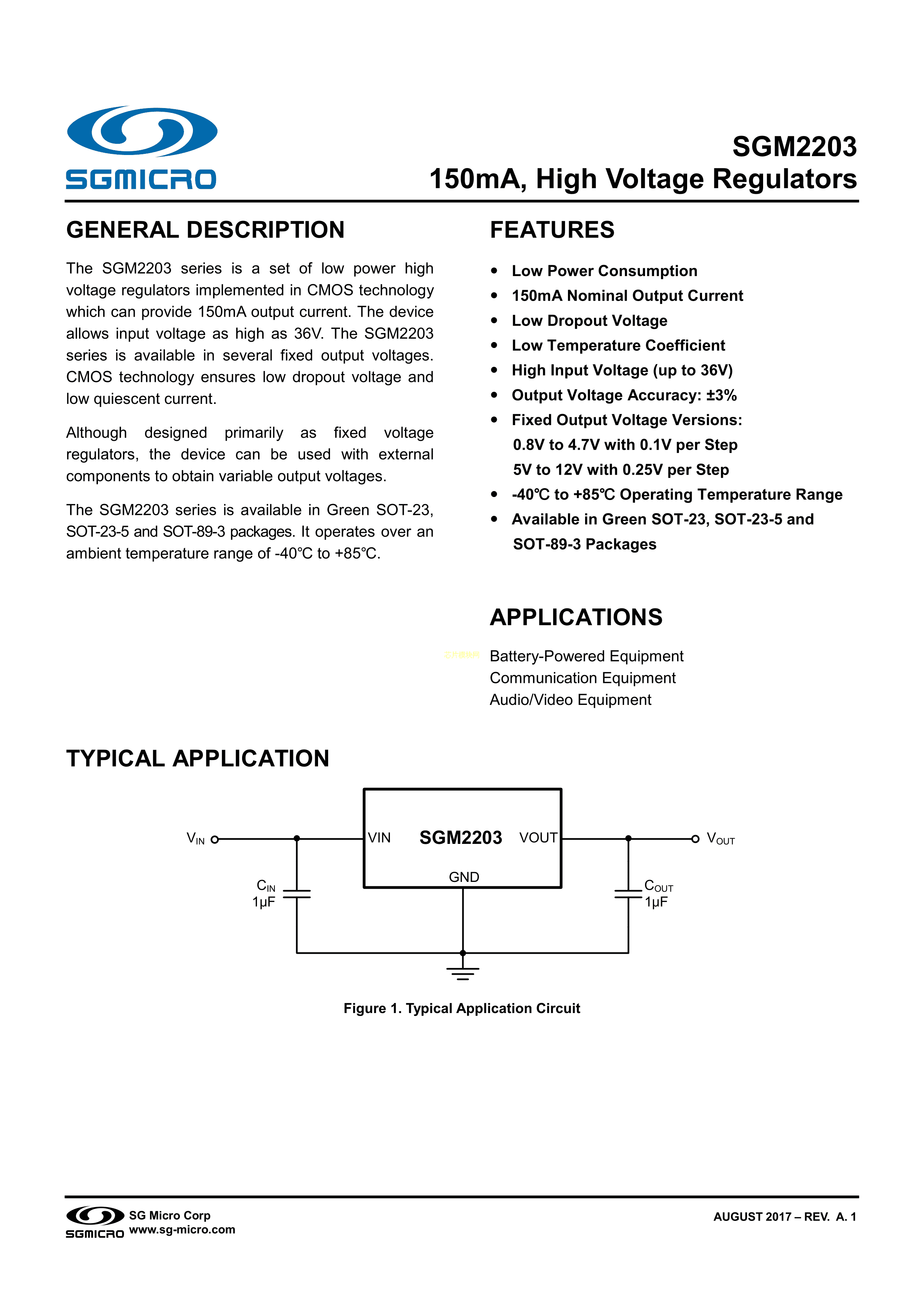 SGM2203-3.3YK3G-TR数据手册SOT-89(SOT-89-3)封装SGMICRO(圣邦