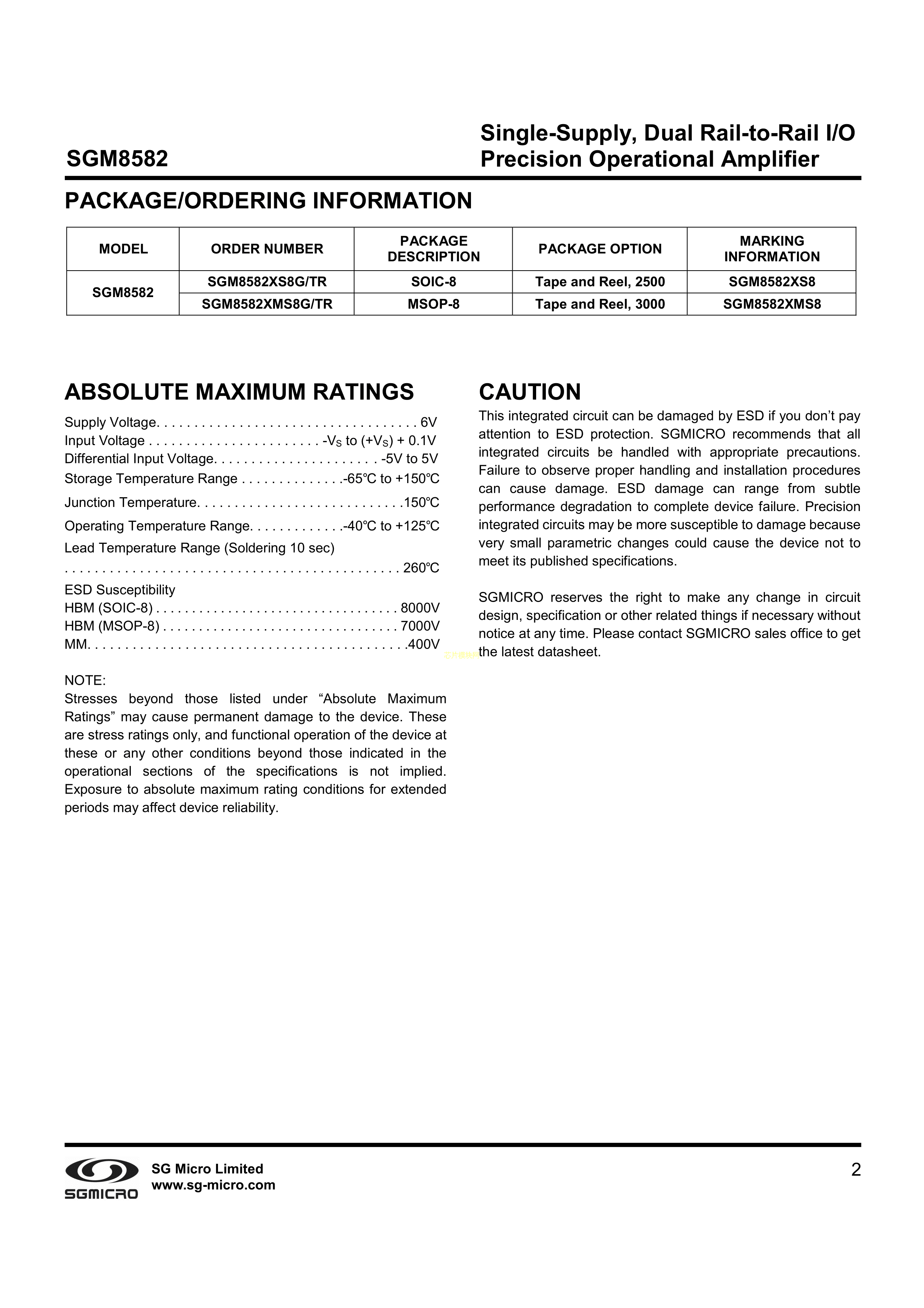 SGM8582PDF规格书,中英文下载
