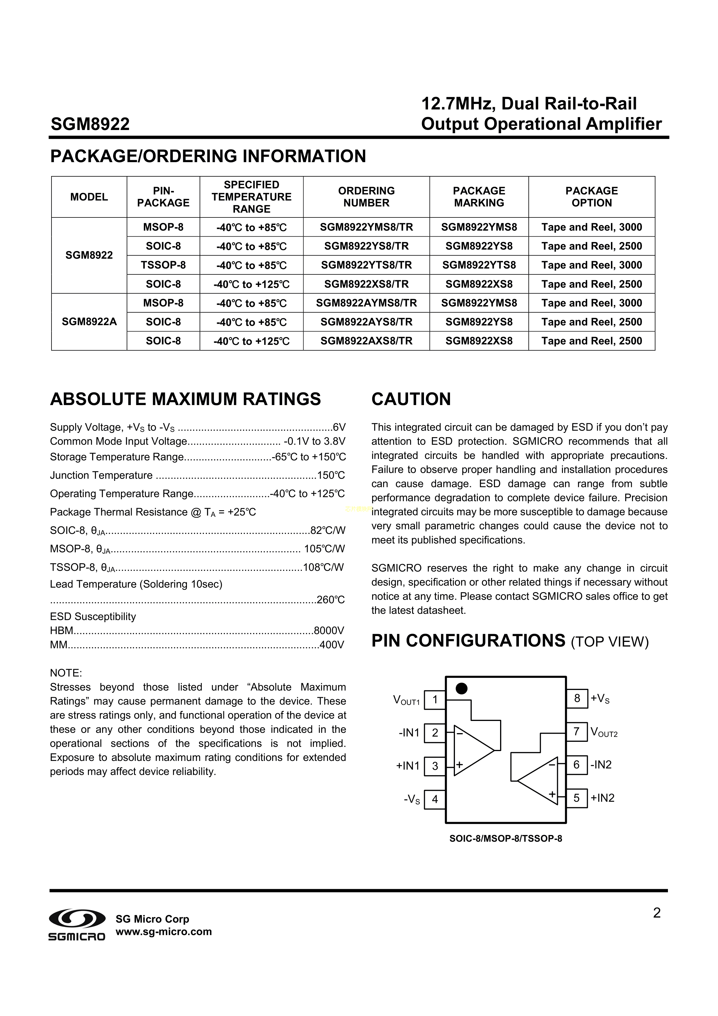 SGM8922PDF规格书,中英文下载