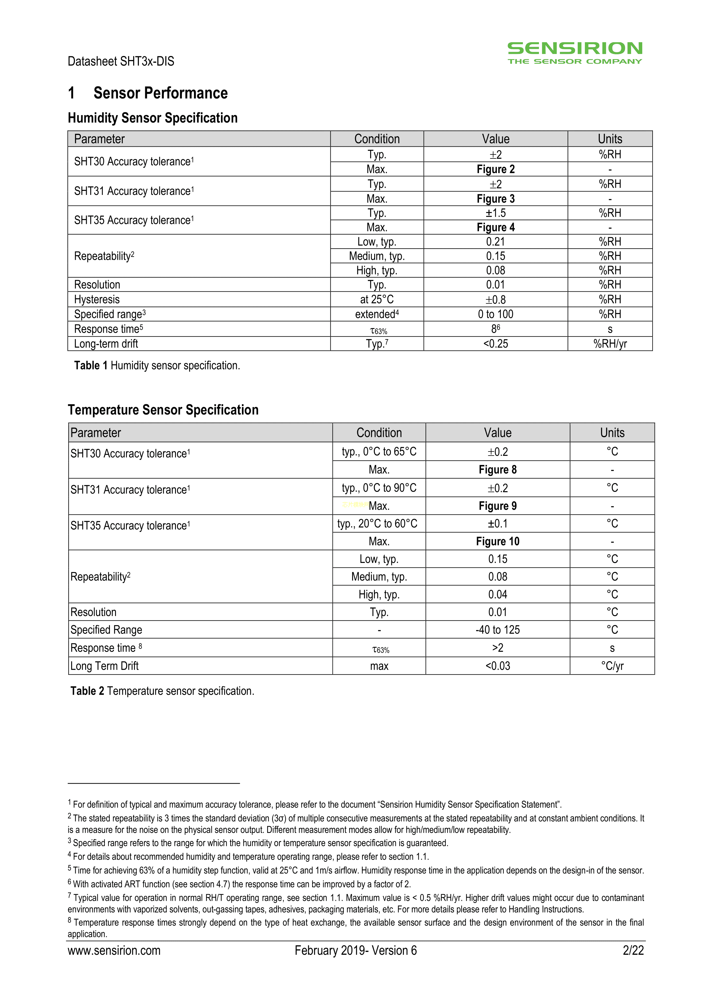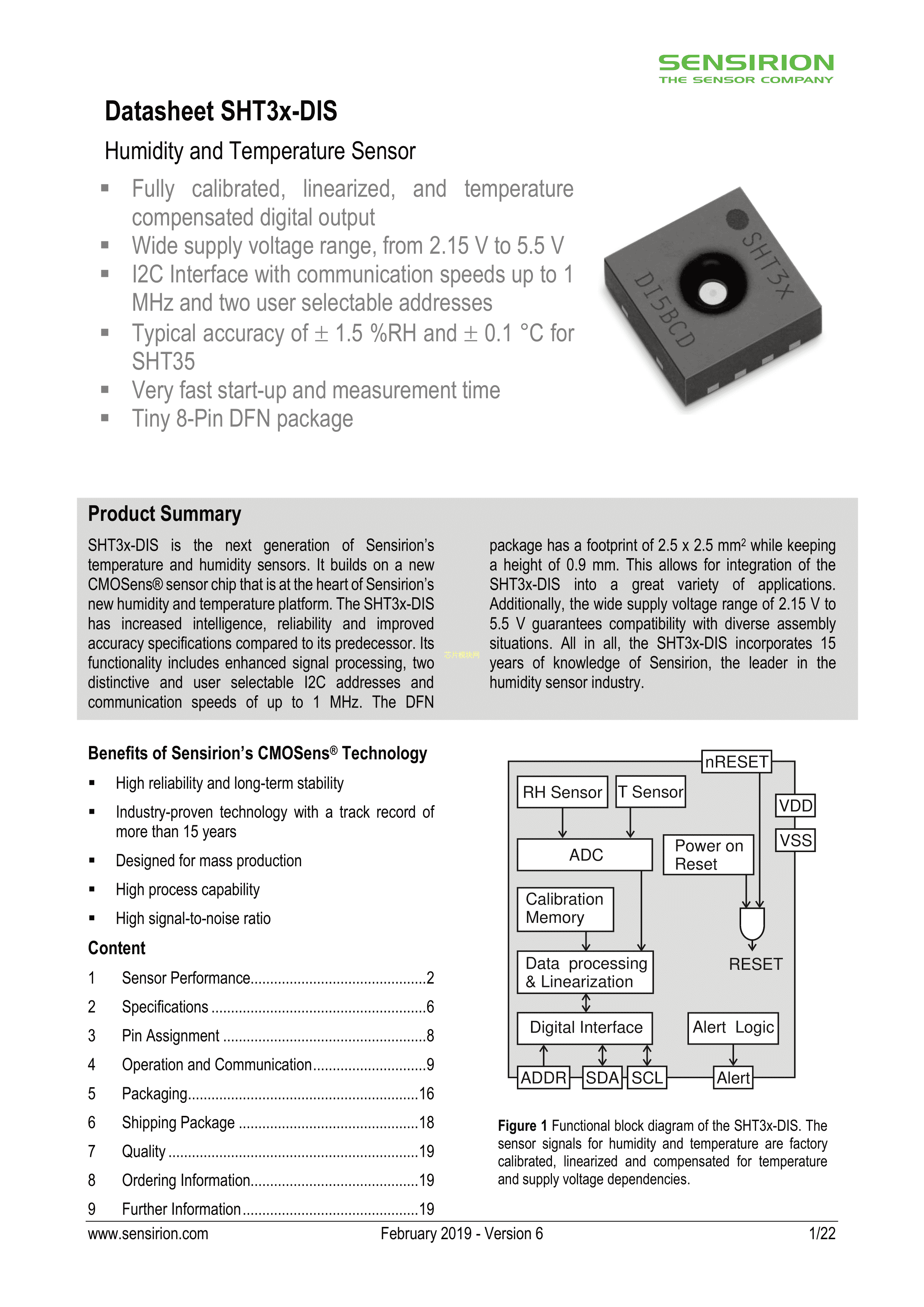 SHT30-DIS-B2.5KS数据手册DFN-8封装Sensirion(瑞士盛思锐)PDF规格书,中英文下载