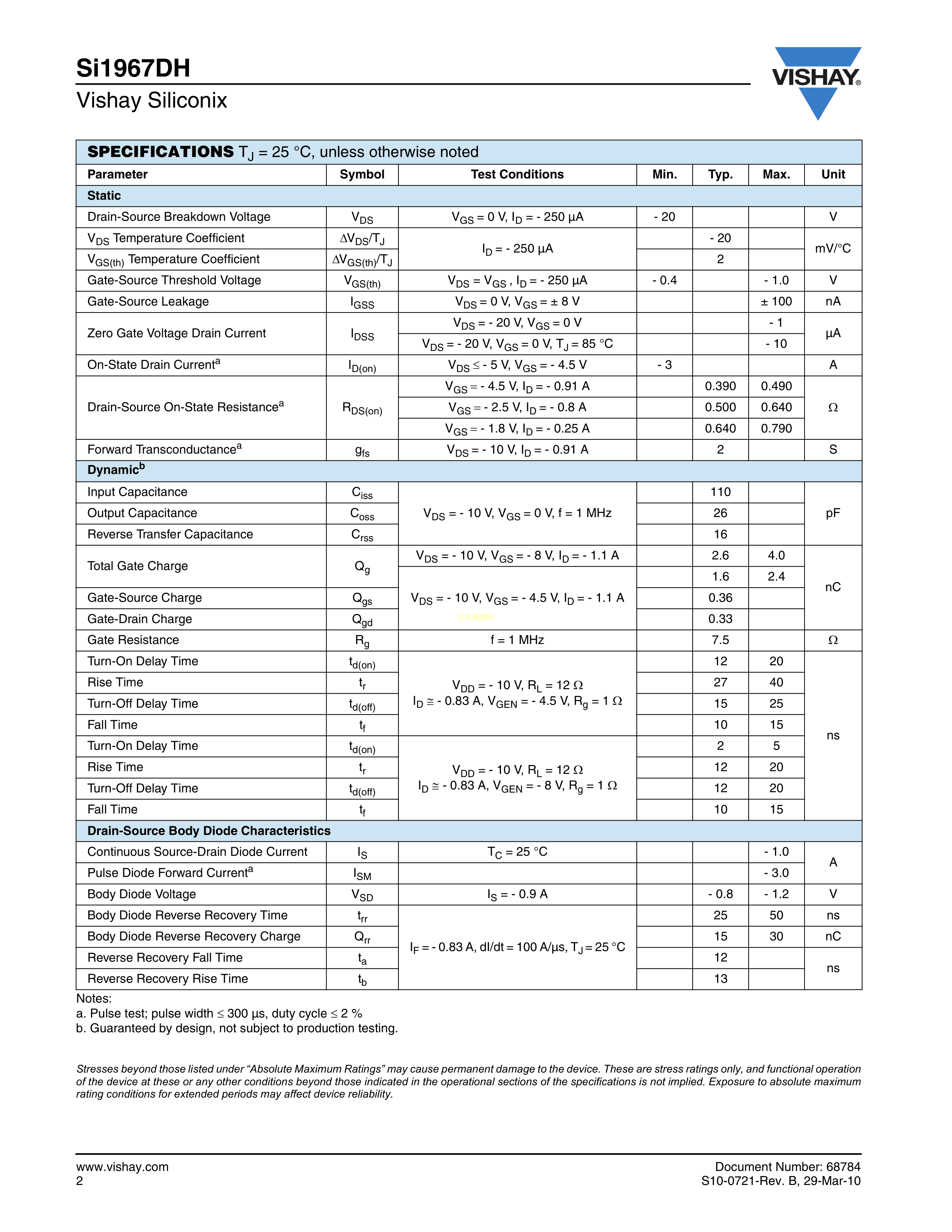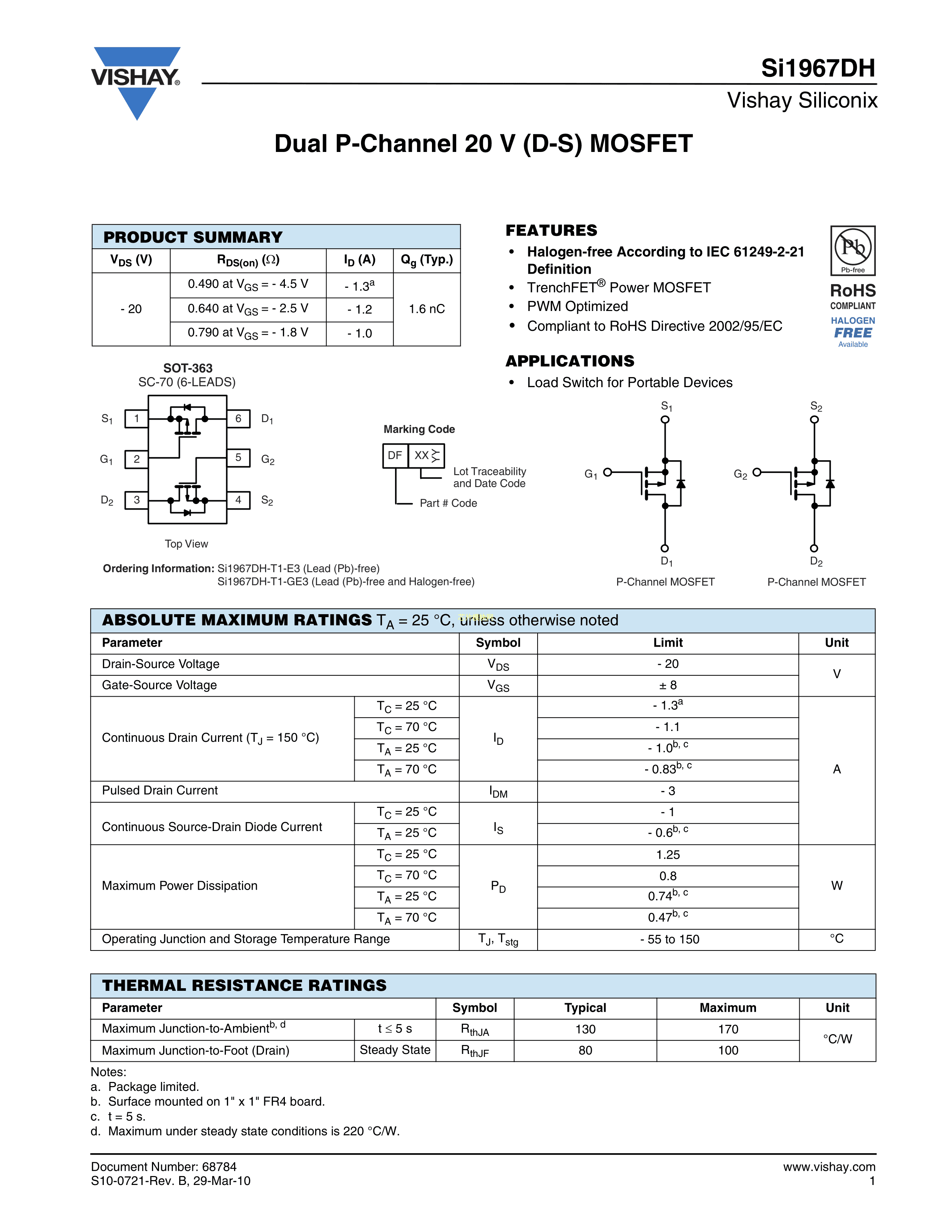 SI1967DH-T1-GE3数据手册SOT-363-6封装VISHAY(威世)PDF规格书,中英文下载
