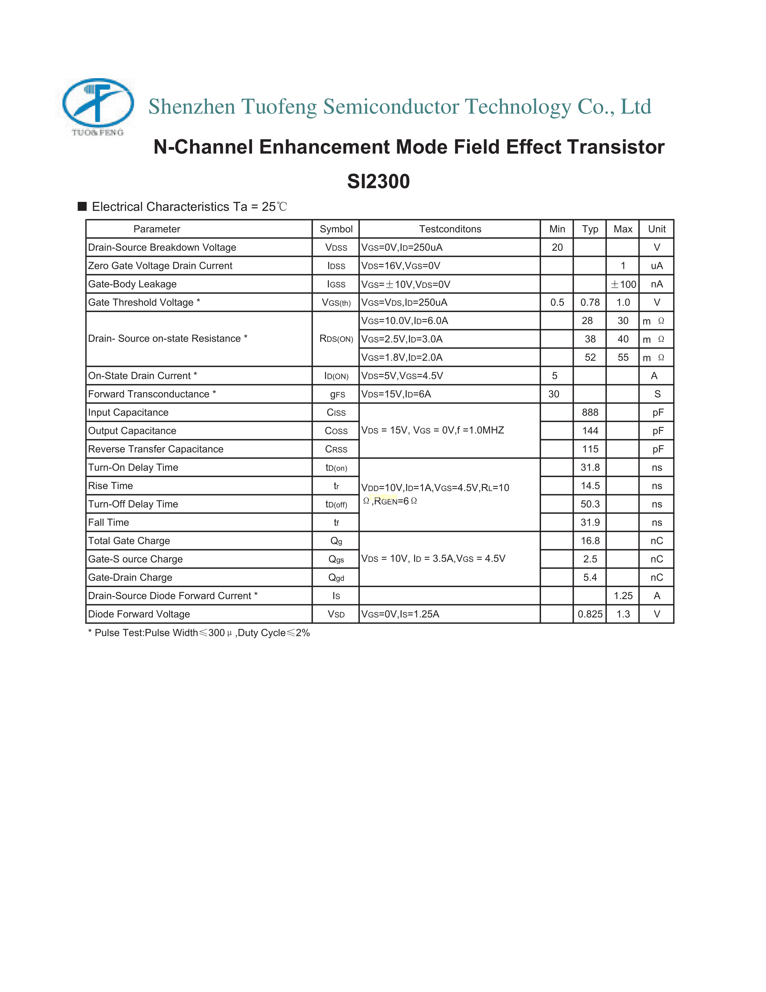 SI2300数据手册SOT-23封装TF(拓锋)PDF规格书,中英文下载