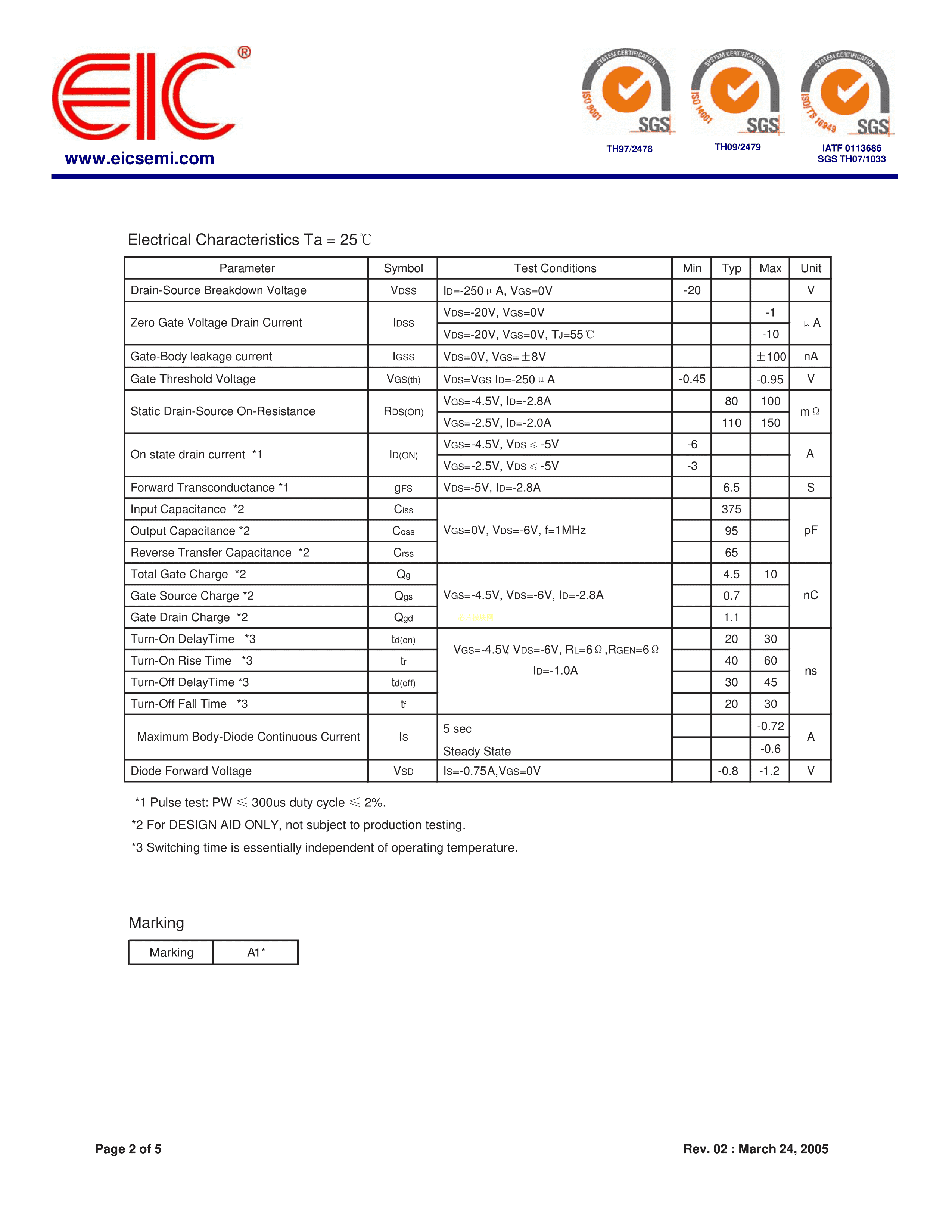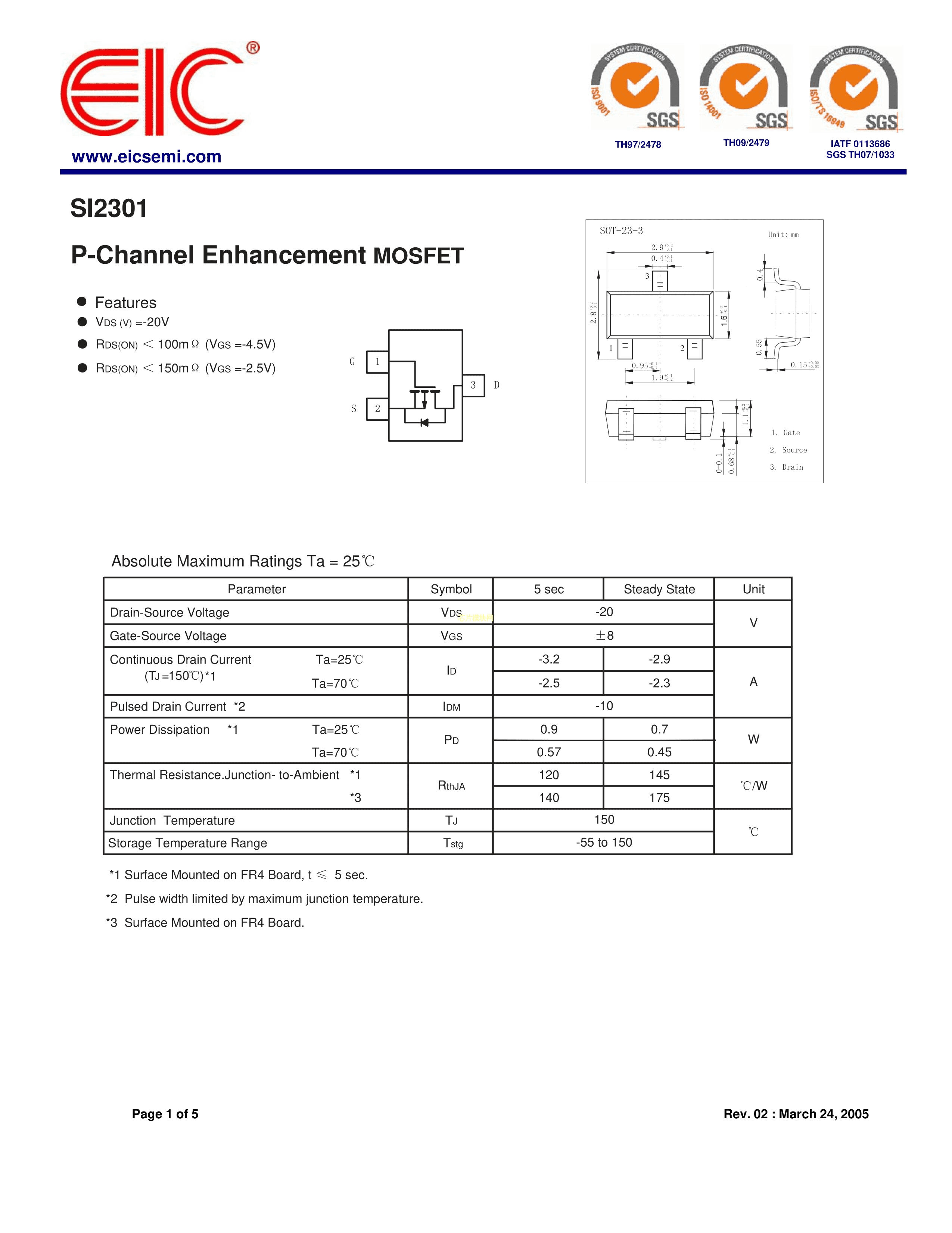 SI2301数据手册SOT-23封装EIC.pdf