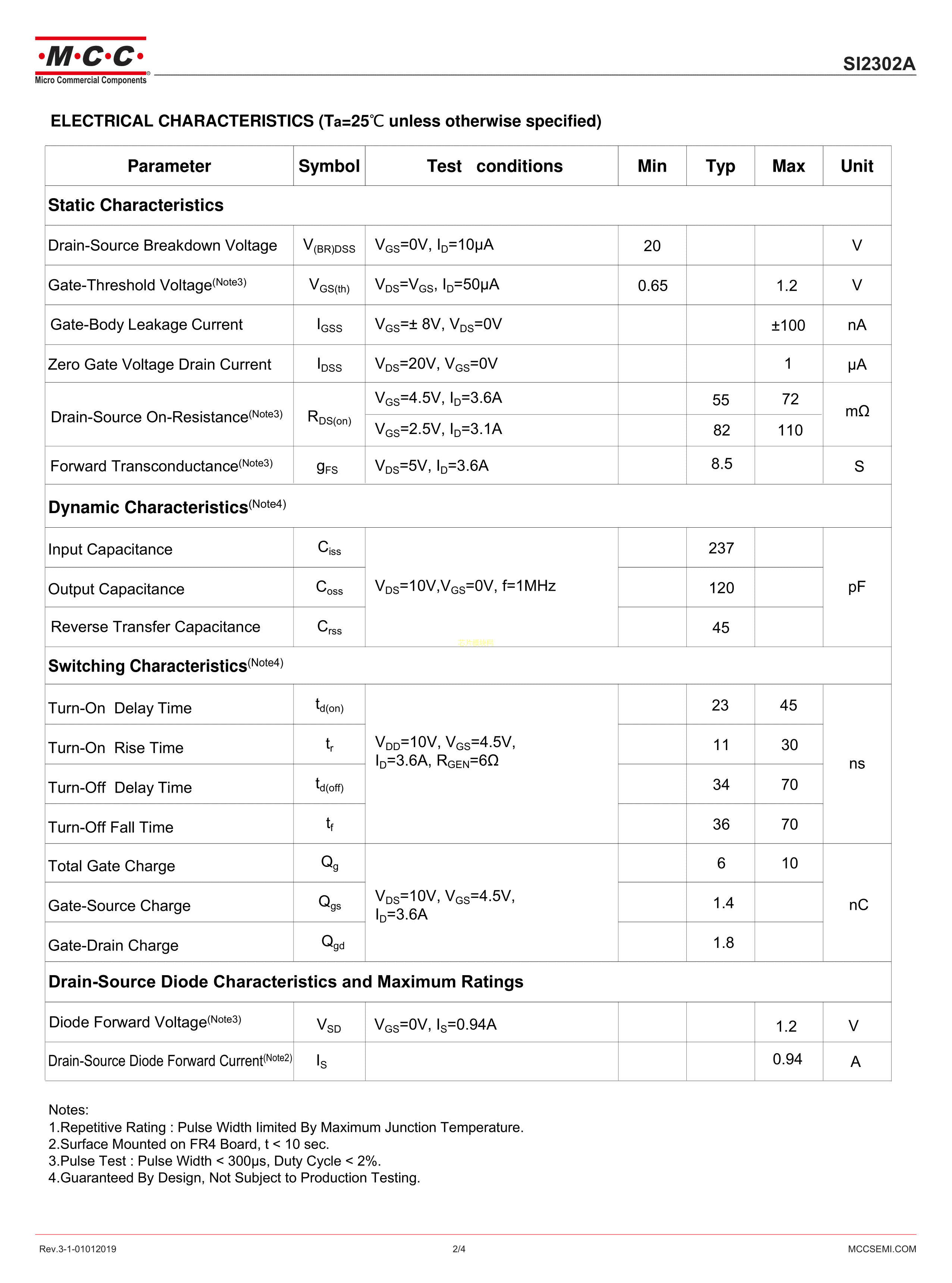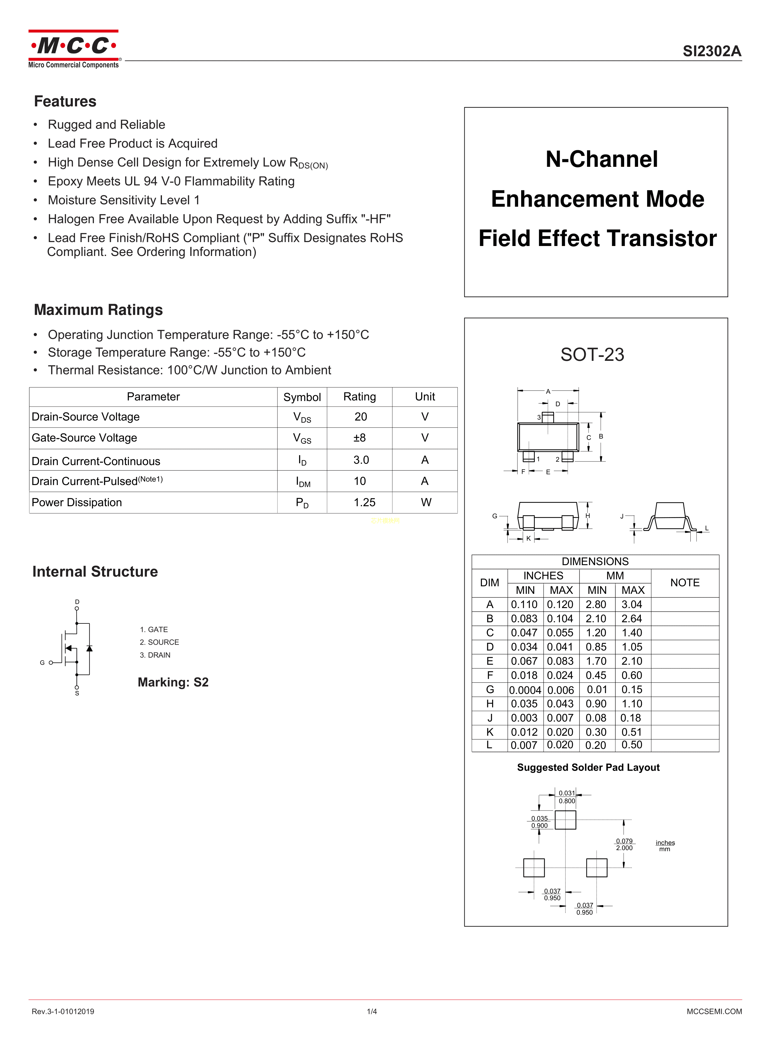 SI2302A-TP数据手册SOT-23封装MCC(美微科)PDF规格书,中英文下载