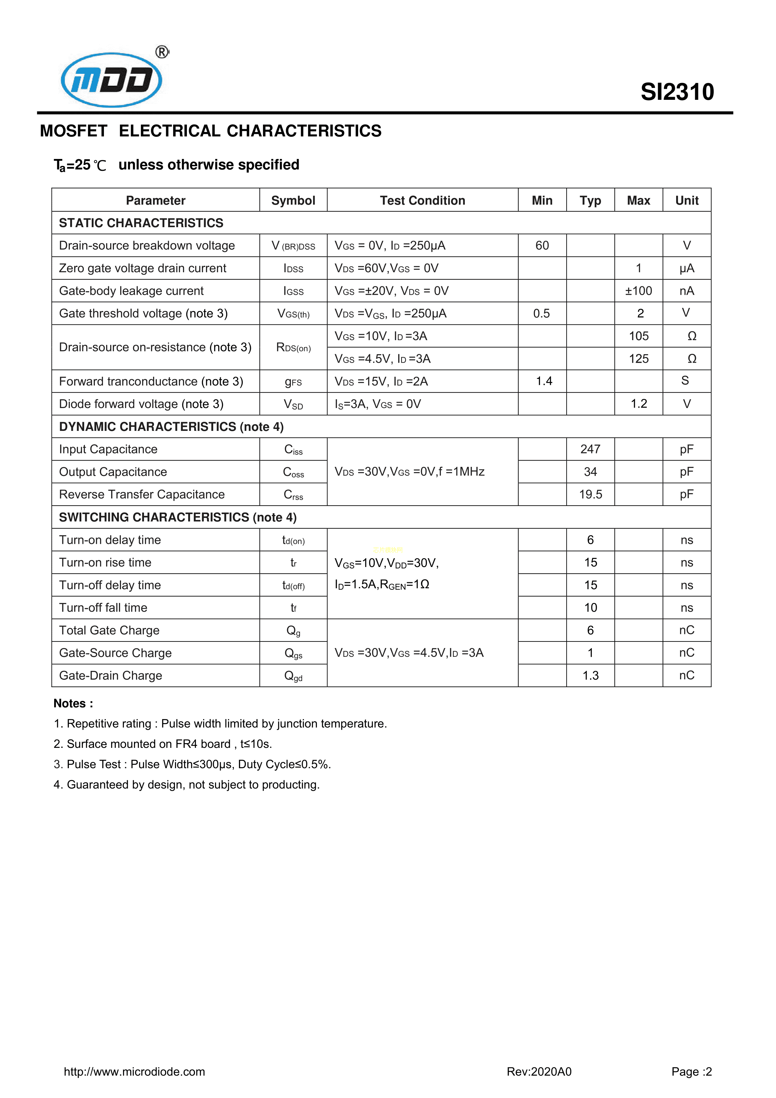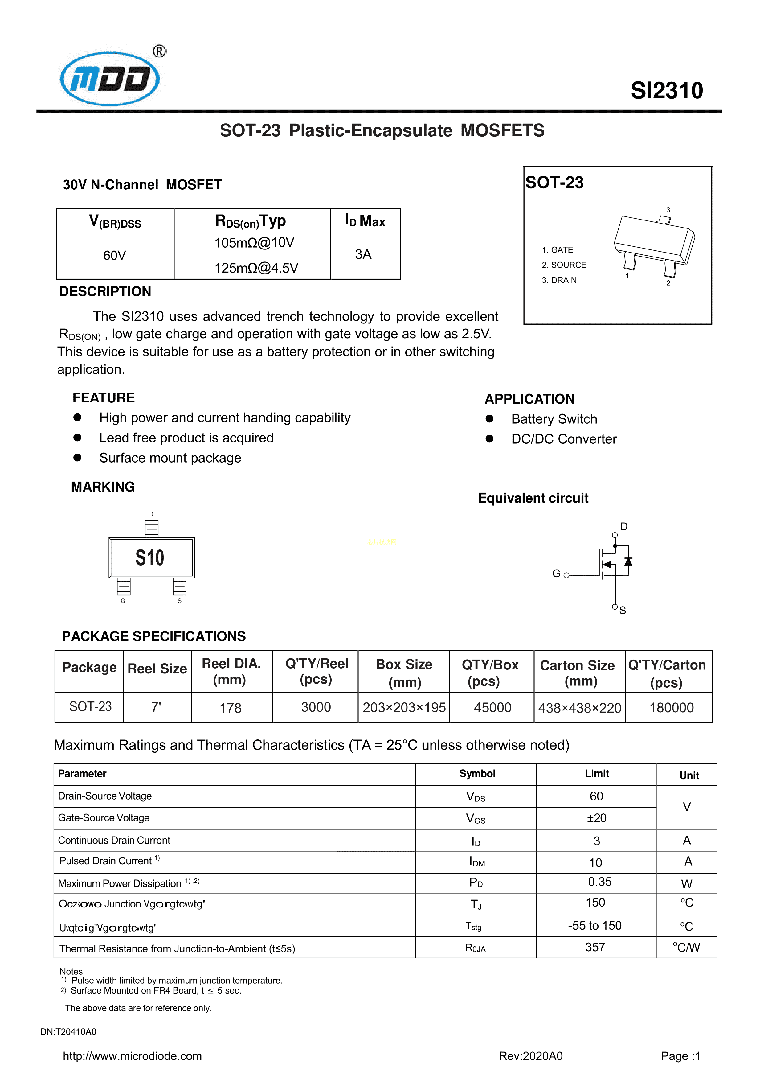 SI2310数据手册SOT-23封装MDDPDF规格书,中英文下载