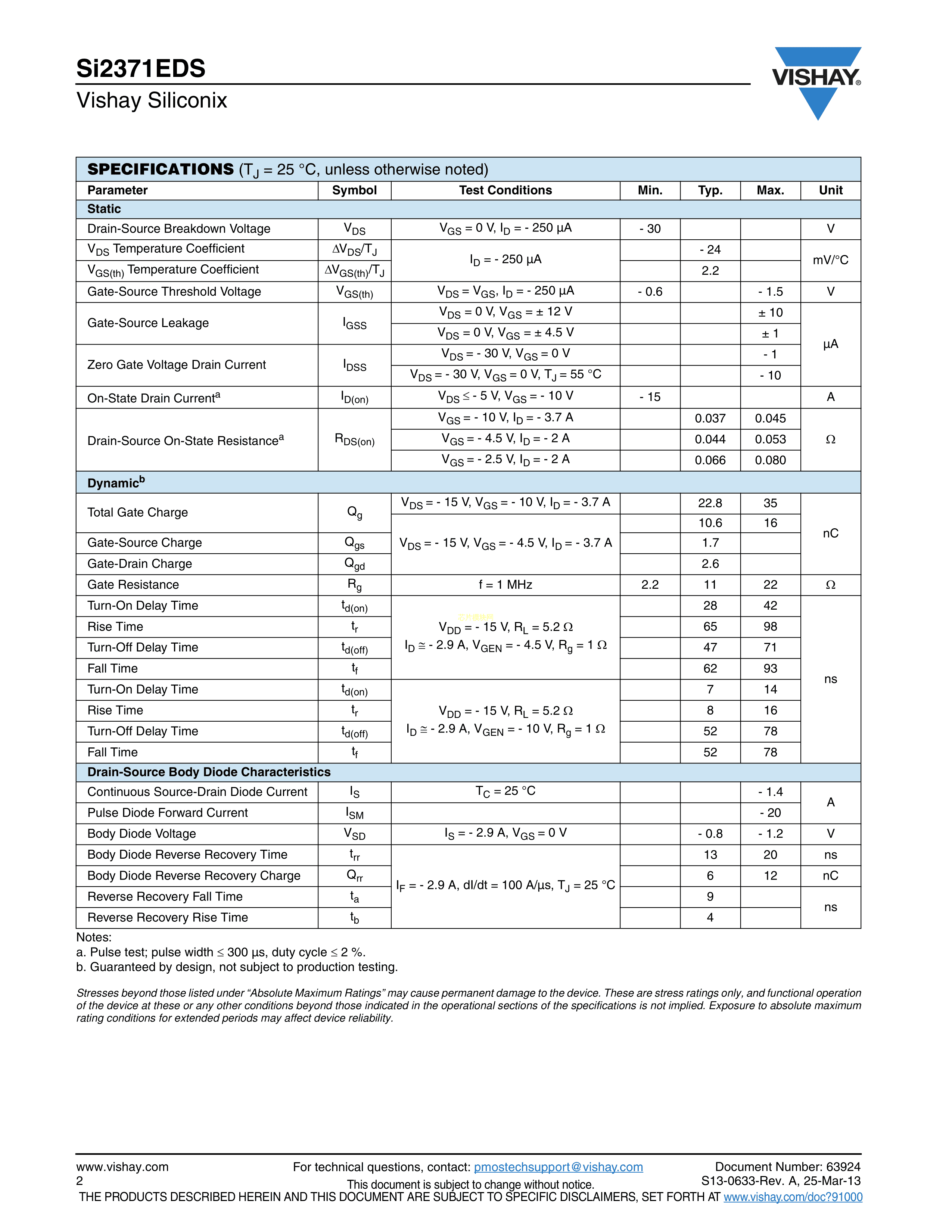 SI2371EDS-T1-GE3数据手册SOT-23封装VISHAY(威世)PDF规格书,中英文下载
