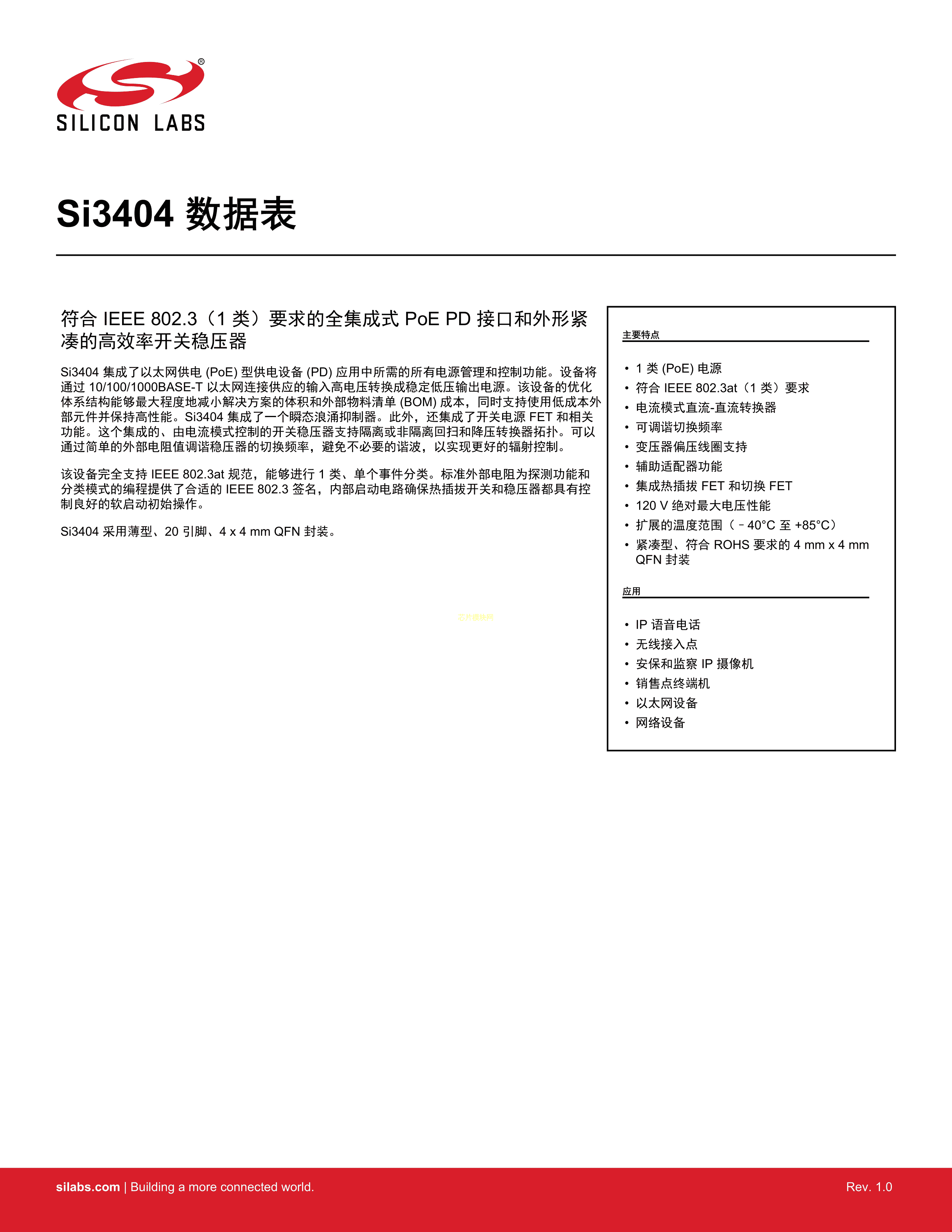 SI3404-A-GM数据手册QFN-20封装SILICON LABS(芯科)PDF规格书,中英文下