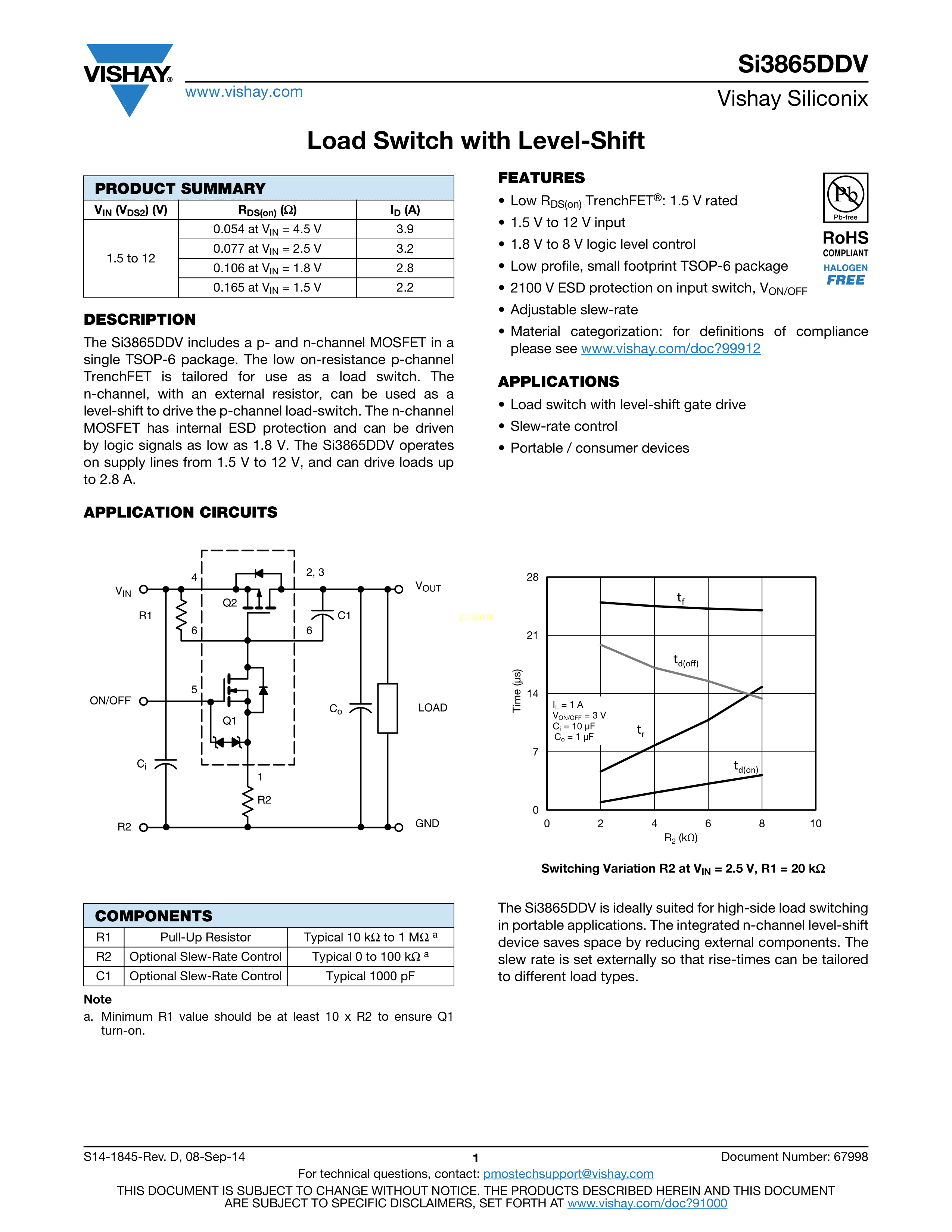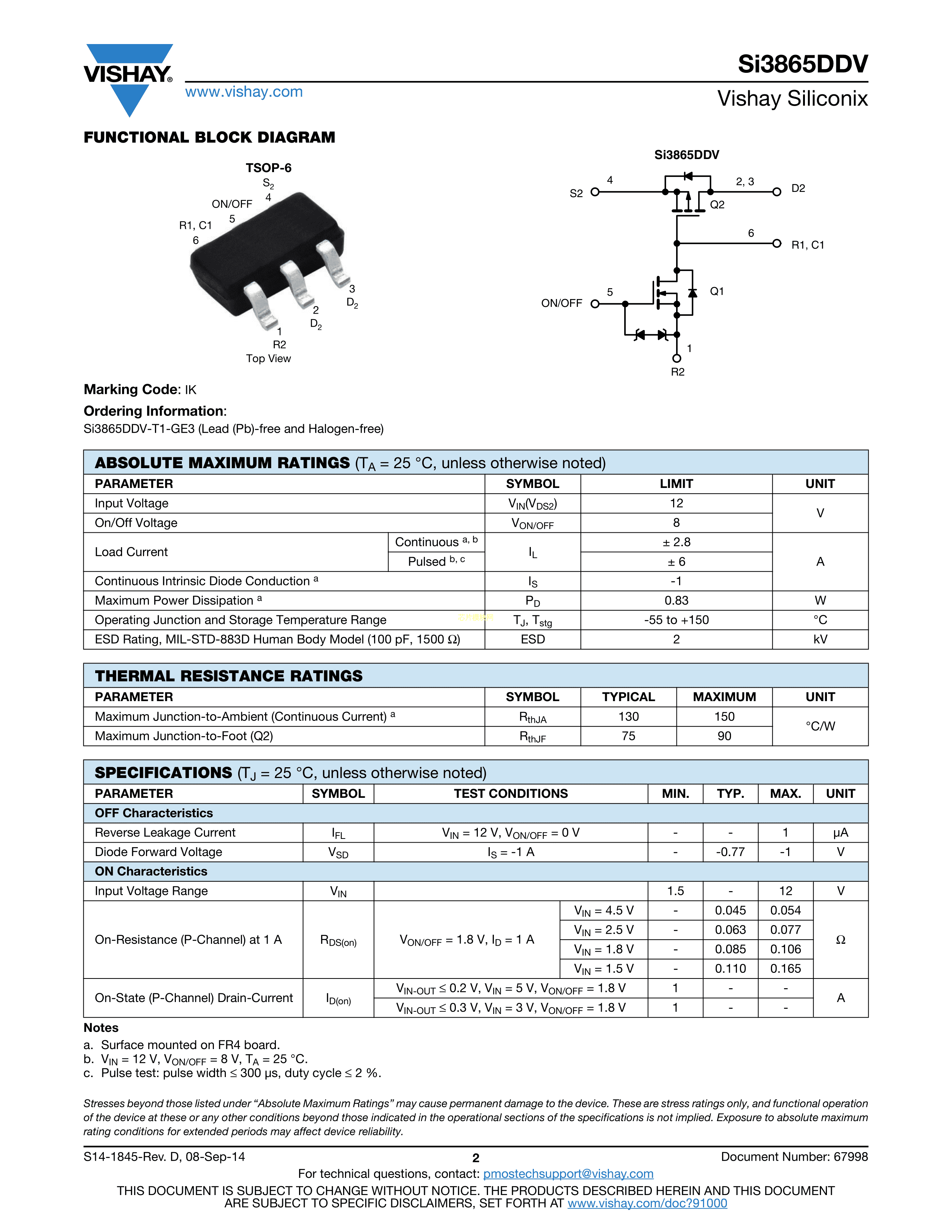 SI3865DDV-T1-GE3数据手册TSOP-6封装VISHAY(威世)PDF规格书,中英文下载