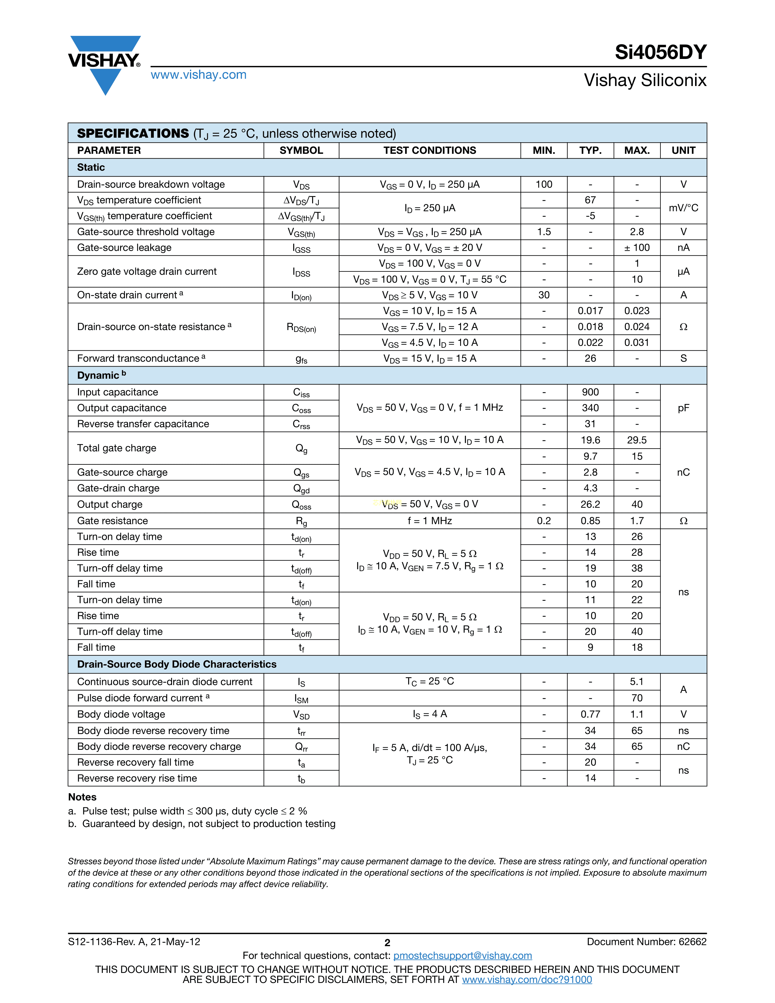 SI4056DY-T1-GE3数据手册SO-8封装VISHAY(威世)PDF规格书,中英文下载