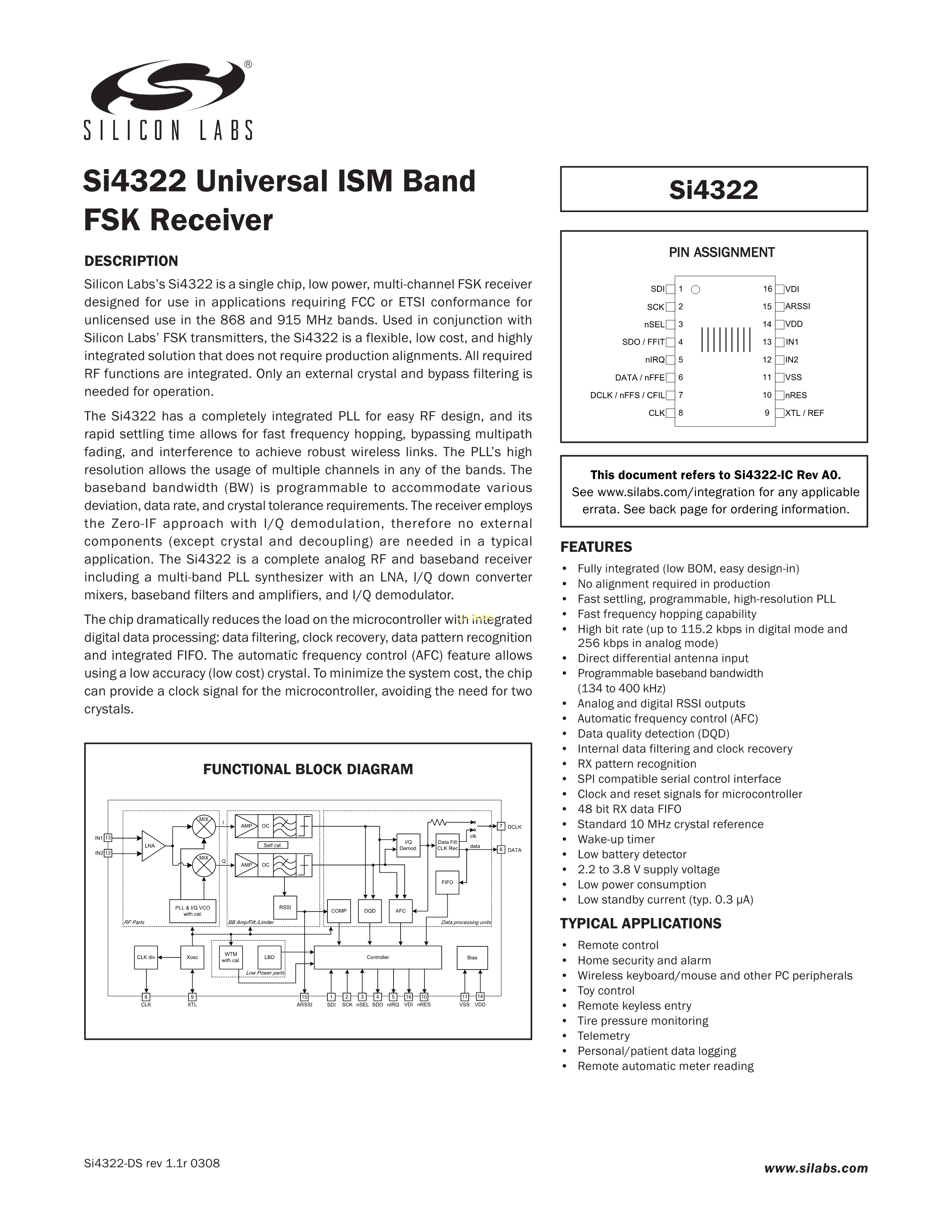 SI4322-A0-FTR数据手册TSSOP-16封装SILICON-LABS(芯科)PDF规格书,