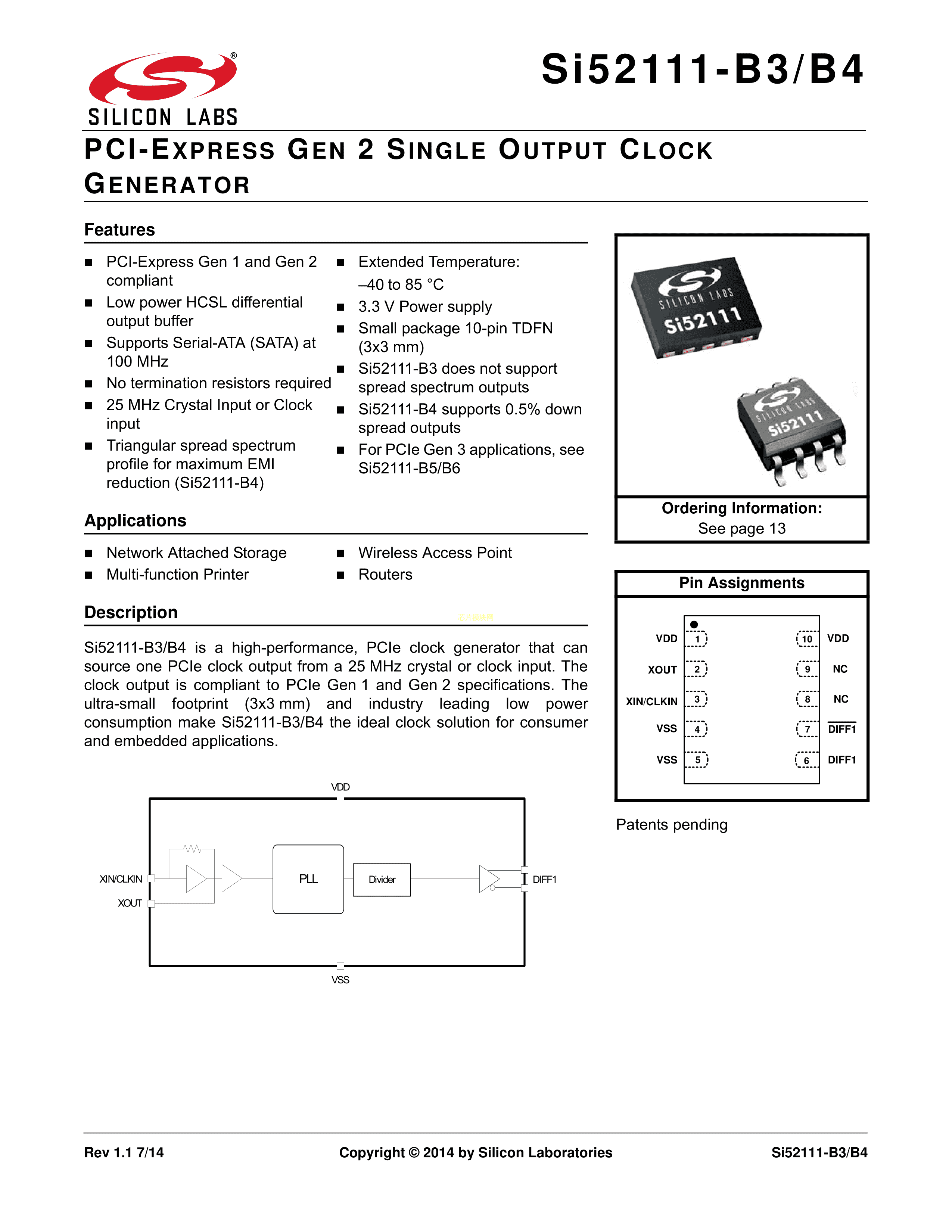 SI52111-B4-GT数据手册TSSOP-8封装SILICONLABS(芯科)PDF规格书,中英文下载
