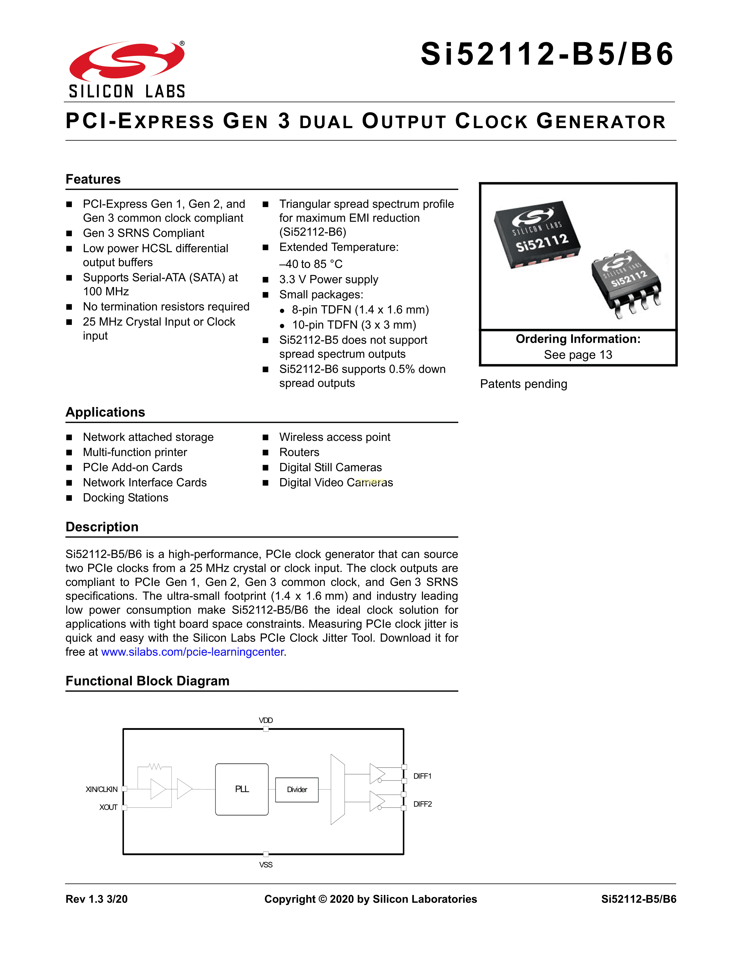 SI52112-B5-GM2R数据手册TDFN-10(3x3)封装SILICONLABS(芯科)PDF规格书,中英文下载