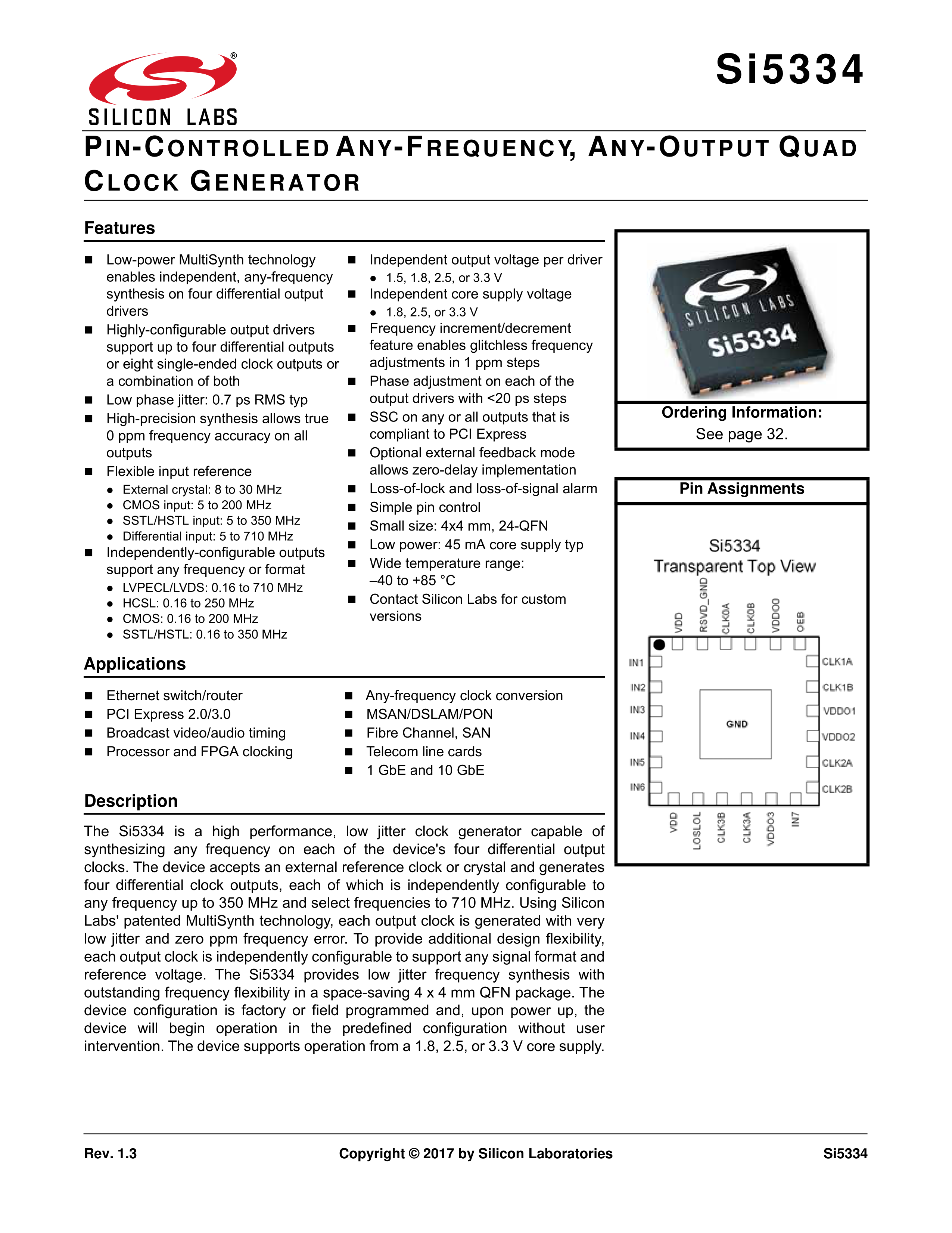 SI5334M-B03018-GM数据手册QFN-24(4x4)封装SILICON LABS(芯科)