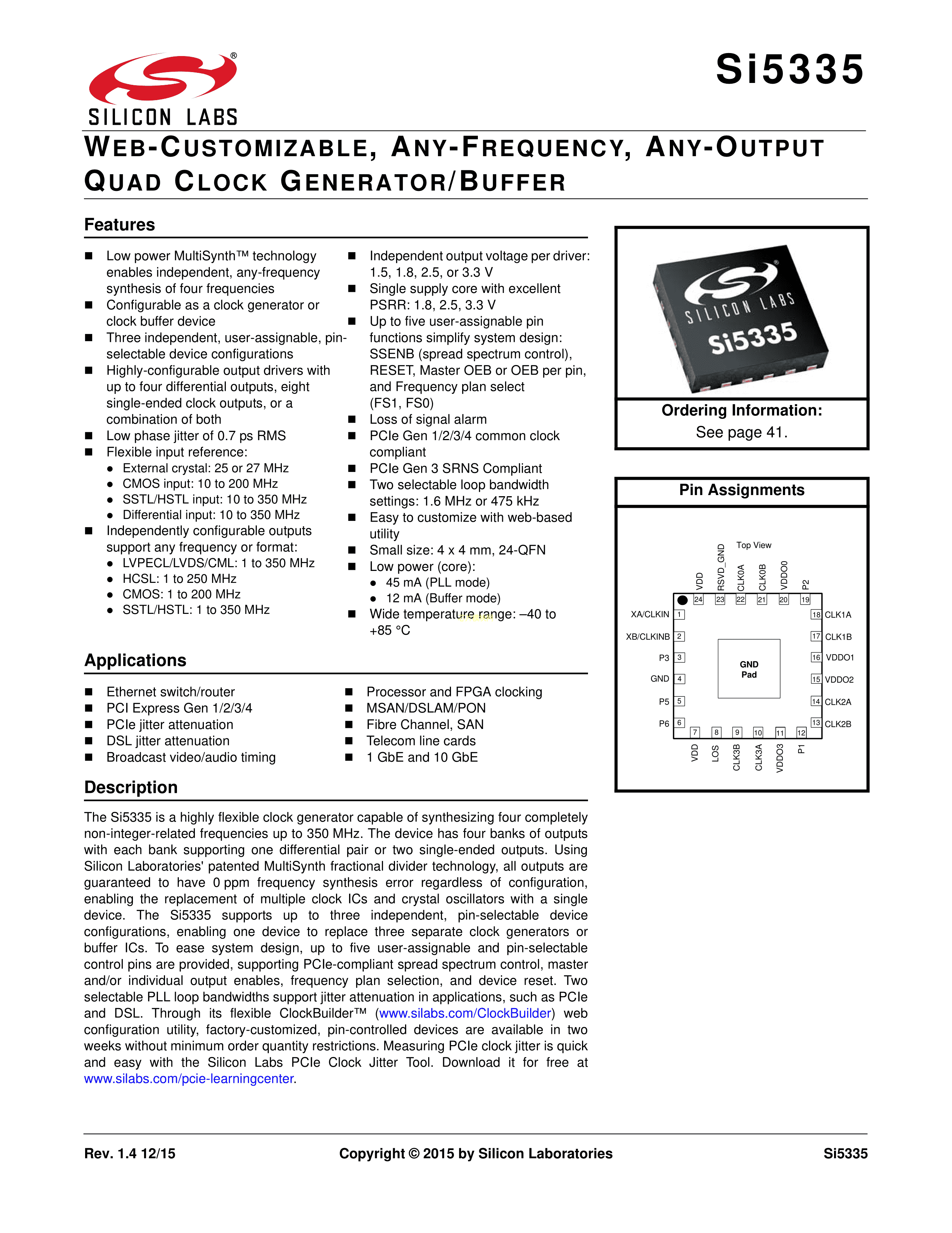 SI5335A-B04277-GMR数据手册QFN-24(4x4)封装SILICONLABS(芯科)PDF规格书,中英文下载