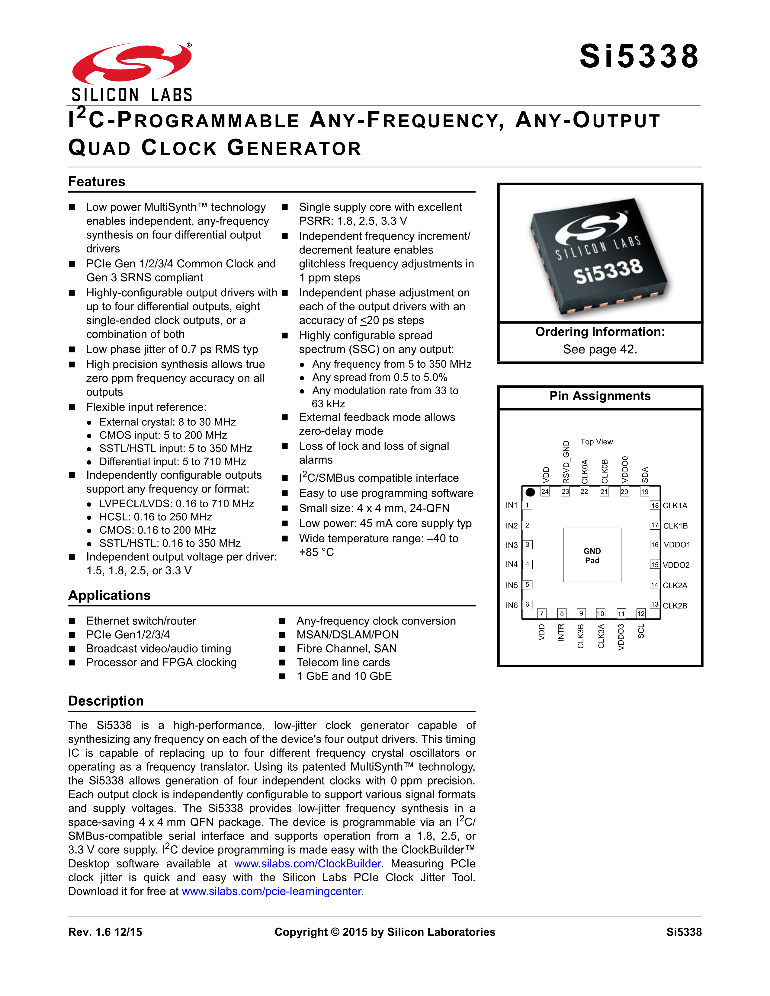 SI5338K-B03781-GMR数据手册QFN-24(4x4)封装SILICON LABS(芯科