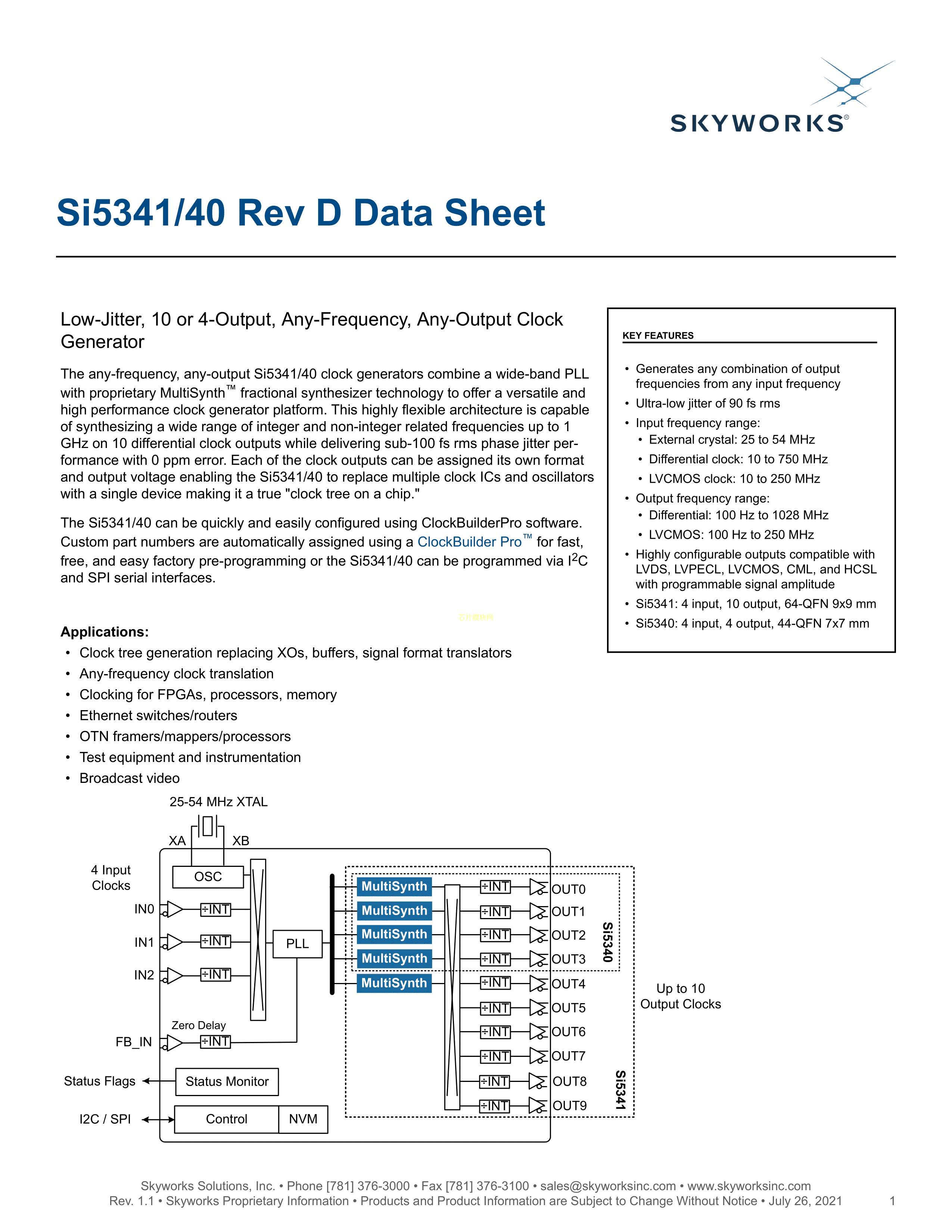 SI5341D-D10056-GMR数据手册-封装SILICONLABS(芯科)PDF规格书,中英文下载